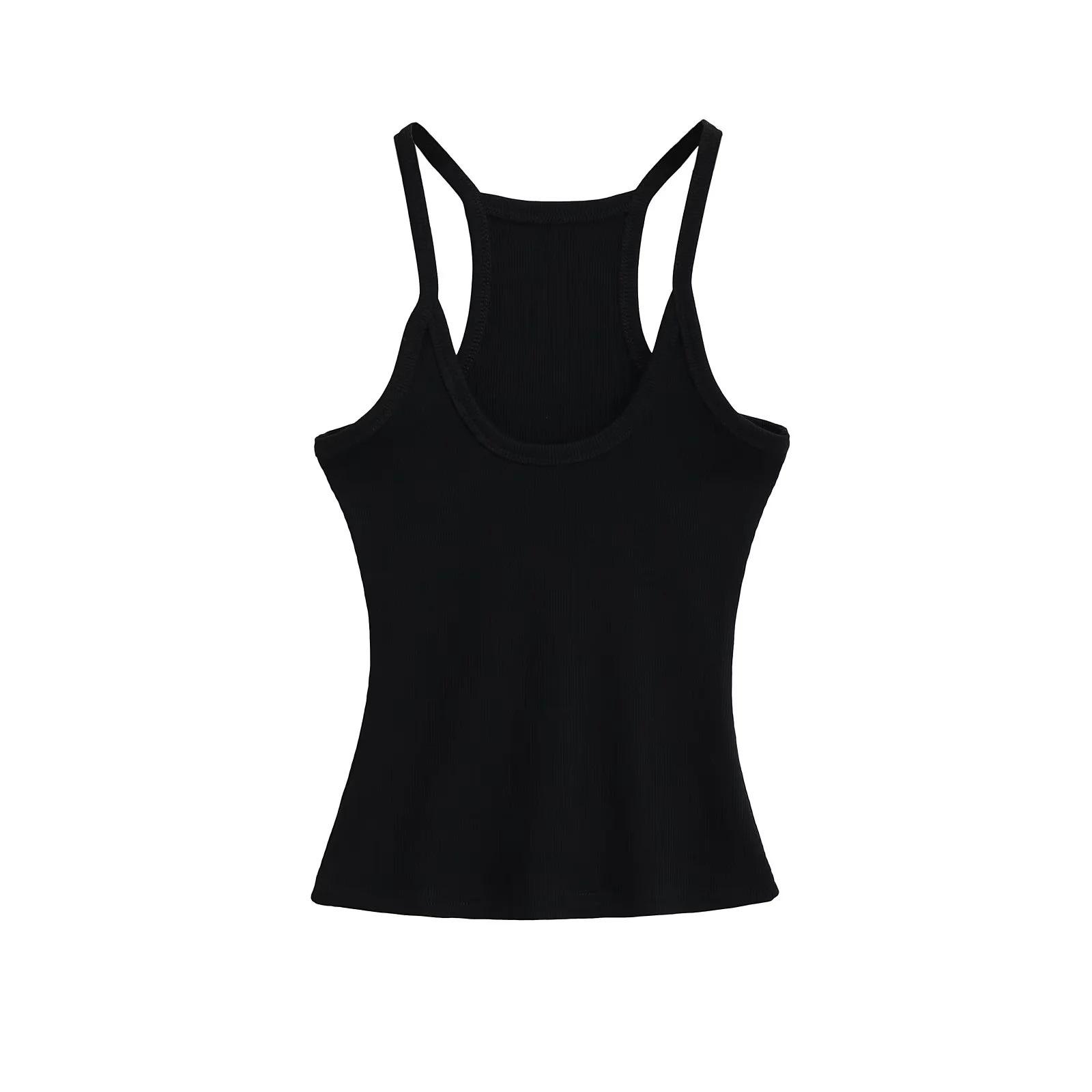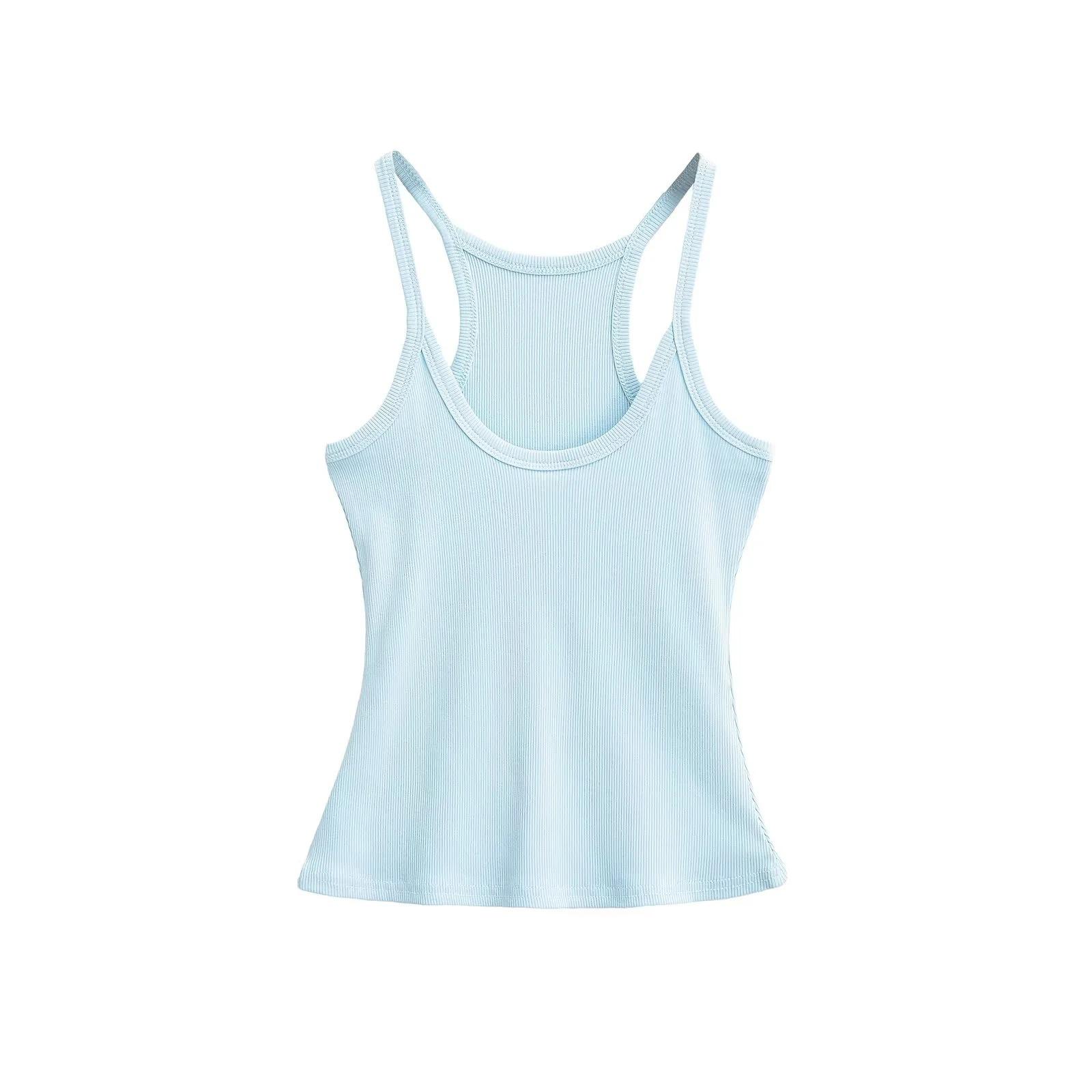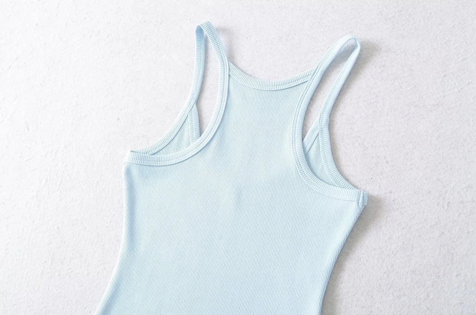 Camisola sexy con cuello en U y forma de I para mujer, de verano, ajustada, corta, sin mangas
