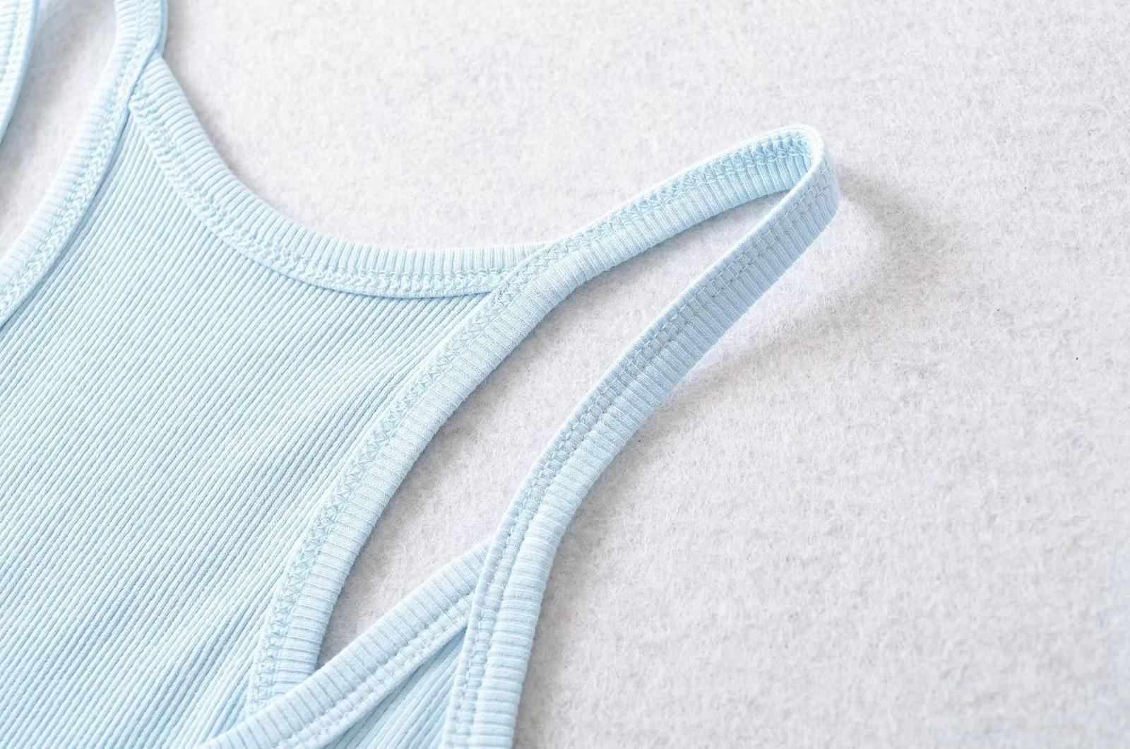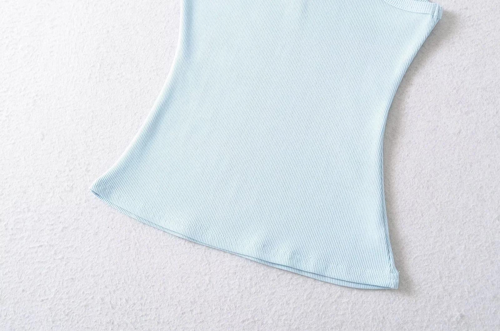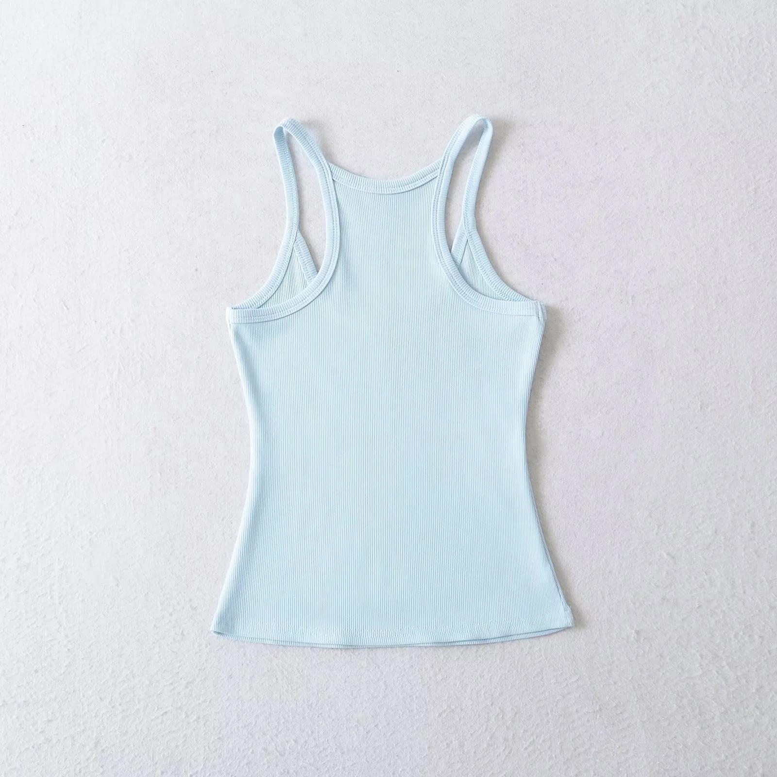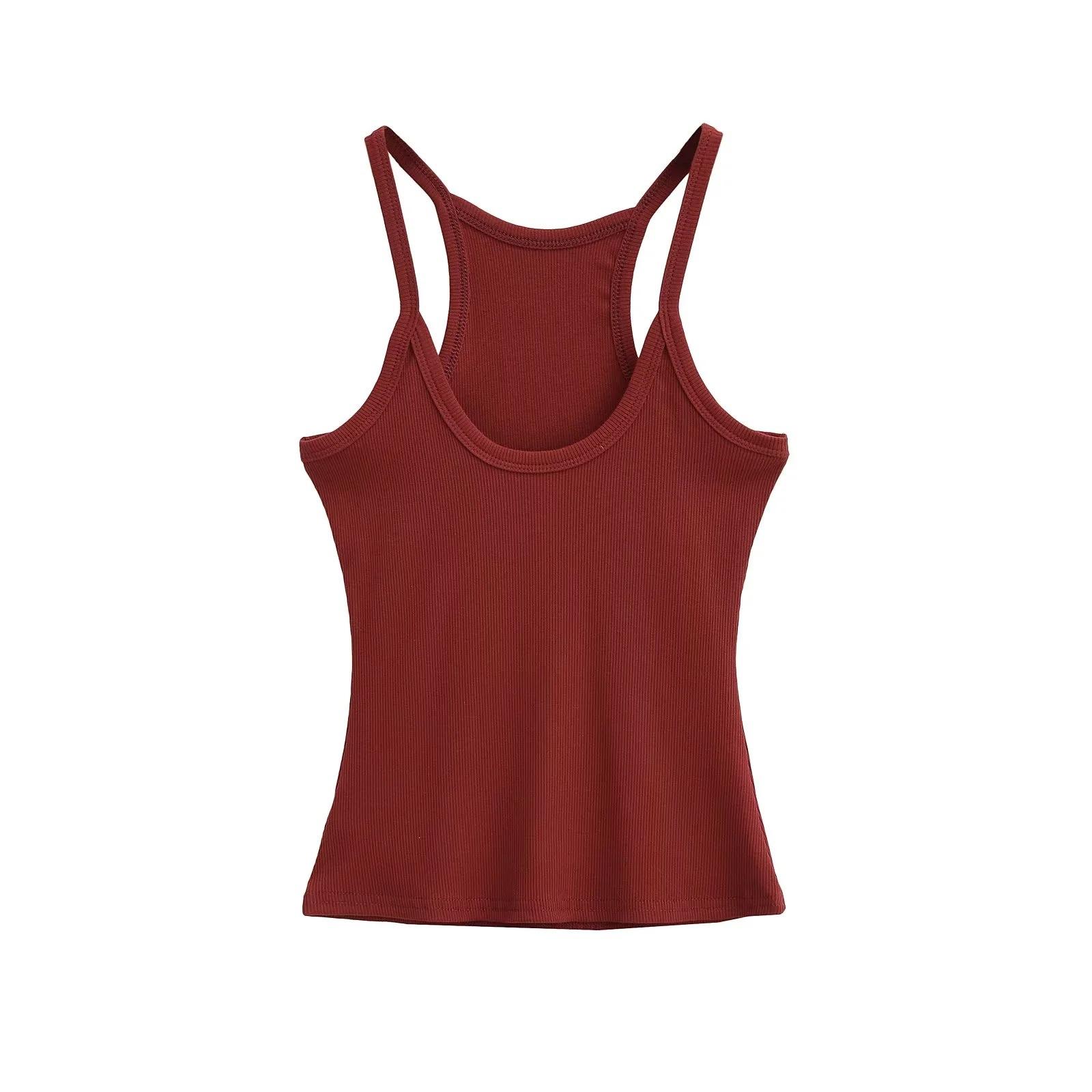 Camisola sexy con cuello en U y forma de I para mujer, de verano, ajustada, corta, sin mangas