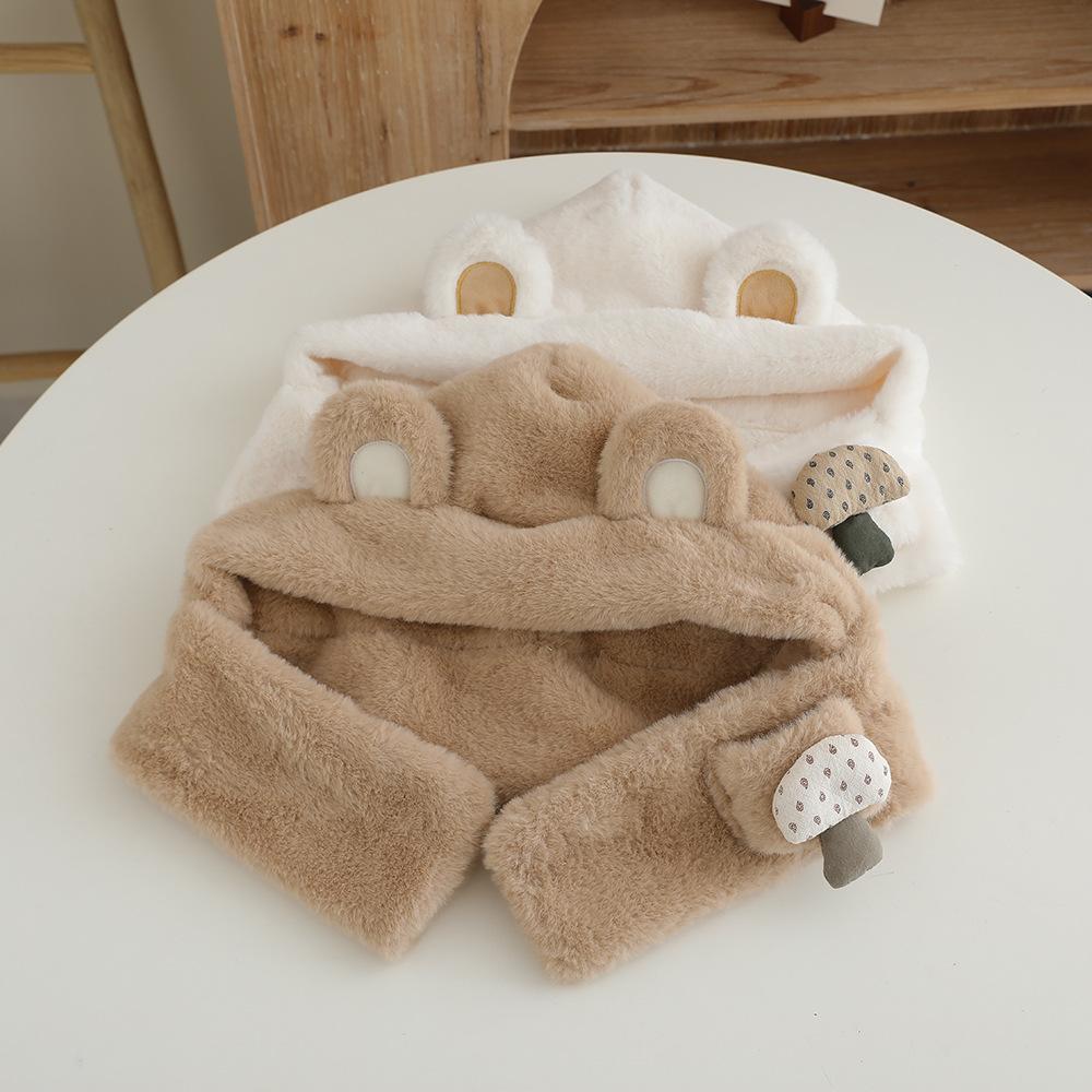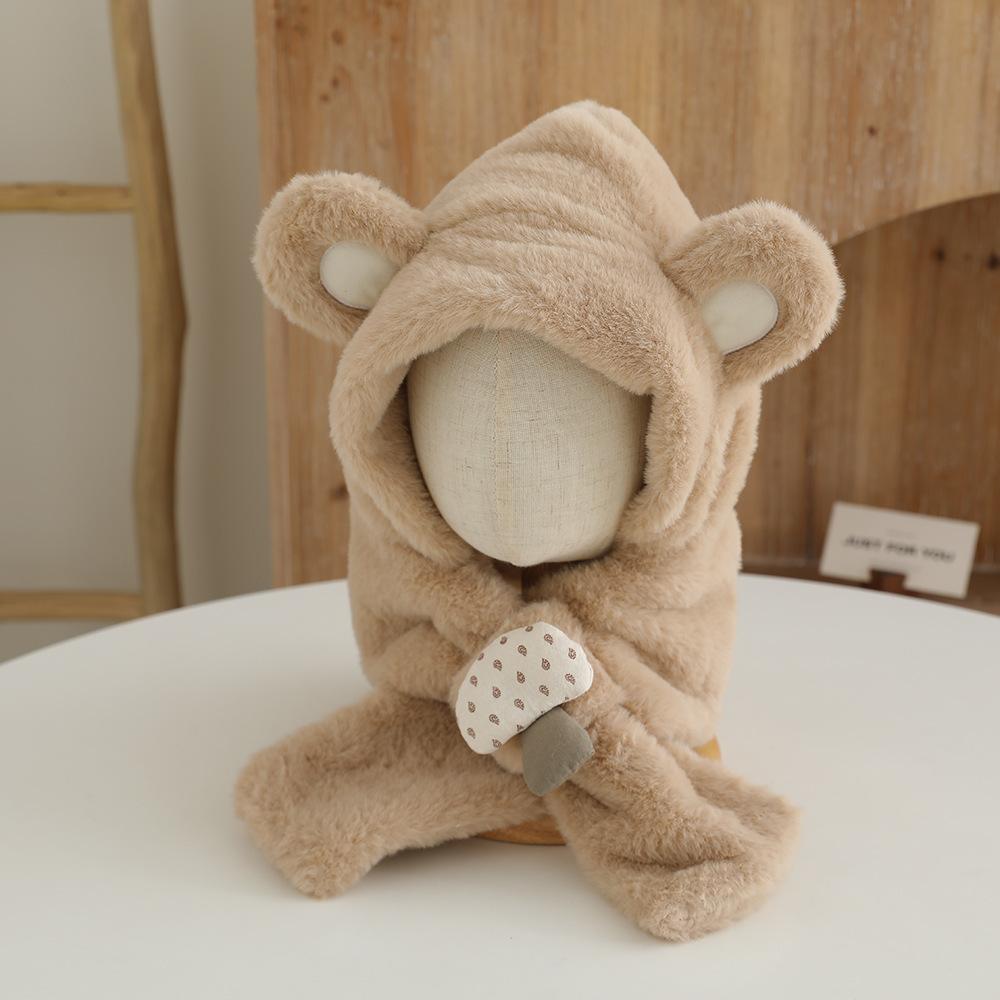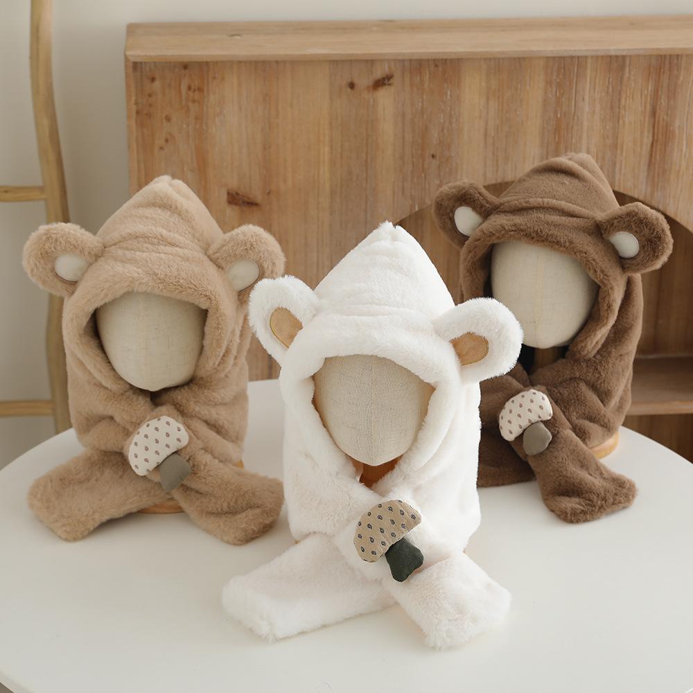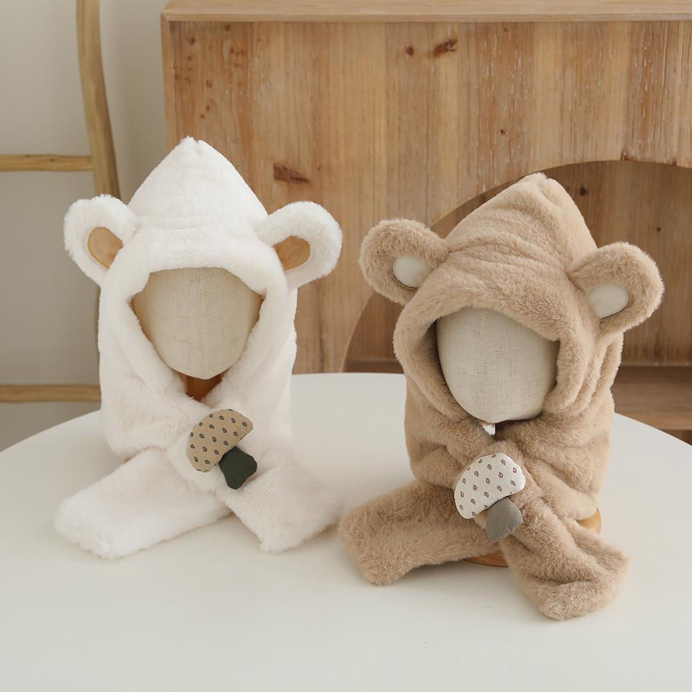 Gorro Infantil Invierno Gorro de Niño Bufanda de Una Pieza Gorro Infantil con Protección para las Orejas Gorro de Felpa de Hongo para Niña Gorro Cálido de Moda