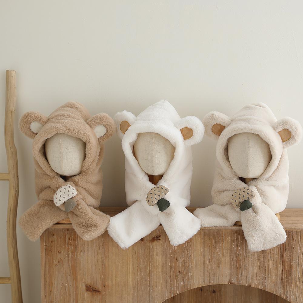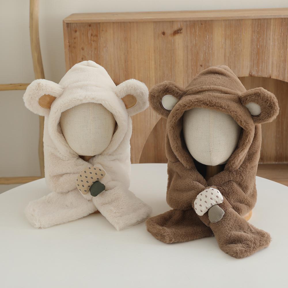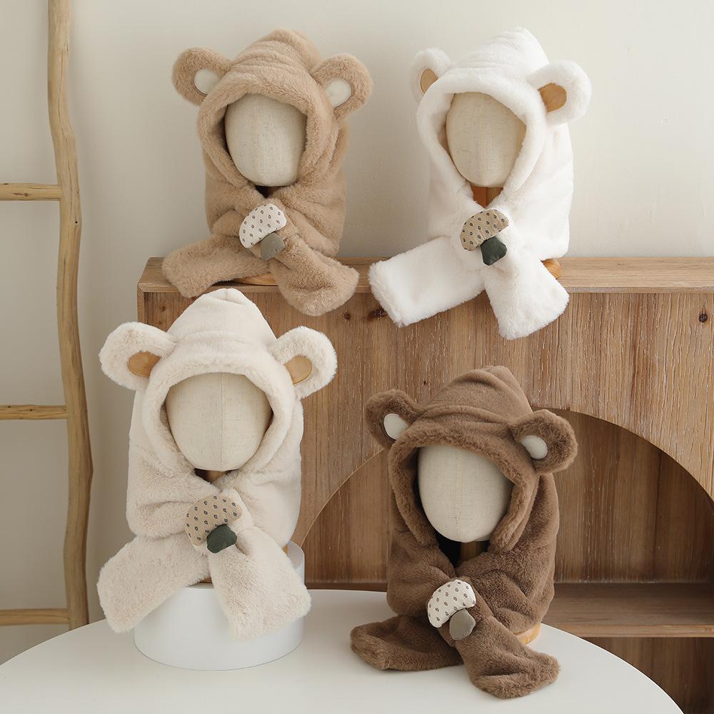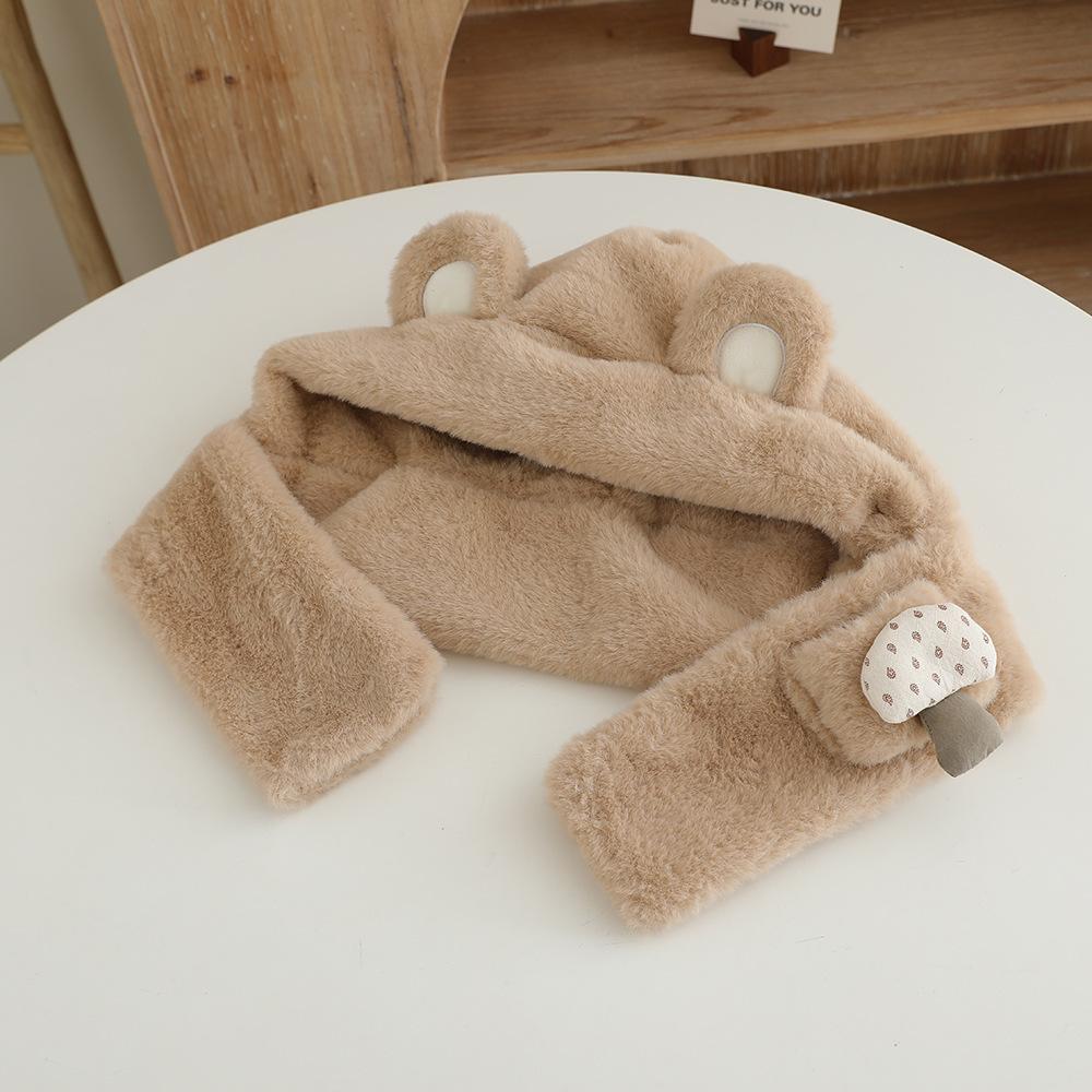 Gorro Infantil Invierno Gorro de Niño Bufanda de Una Pieza Gorro Infantil con Protección para las Orejas Gorro de Felpa de Hongo para Niña Gorro Cálido de Moda