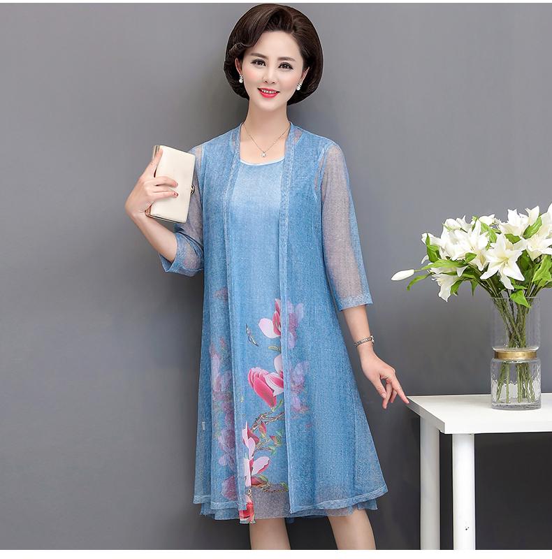 Ropa de verano para mujeres de mediana edad y mayores, traje real de dos piezas, vestido ancho para madre, primavera y otoño, nuevo abrigo noble de estilo occidental.