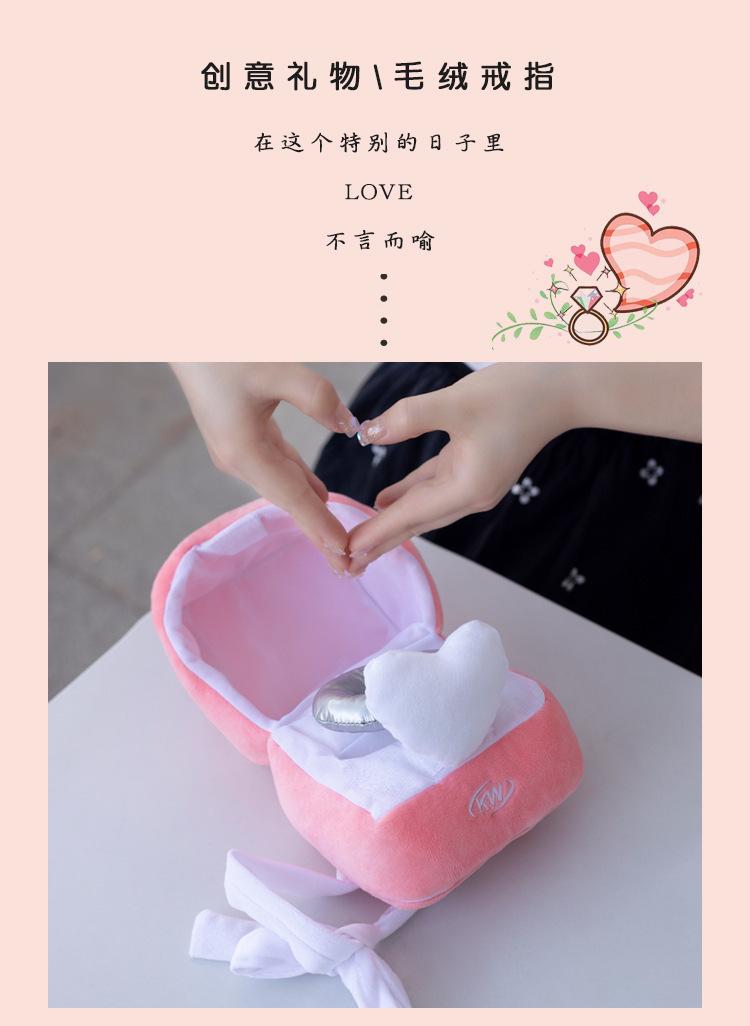 Anillo de confesión de pareja de famosos en línea, anillo de amor con diamantes grandes, muñeca, regalo de San Valentín para niñas, caja de anillo de peluche