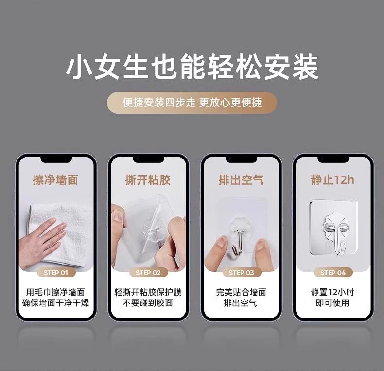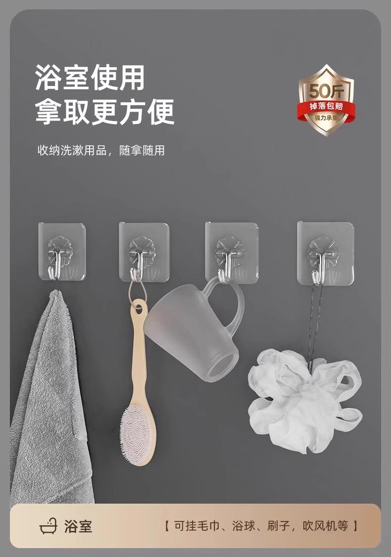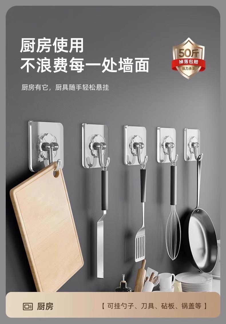 Gancho adhesivo fuerte para colgar en la pared, transparente, sin costuras, para cocina, sin perforaciones