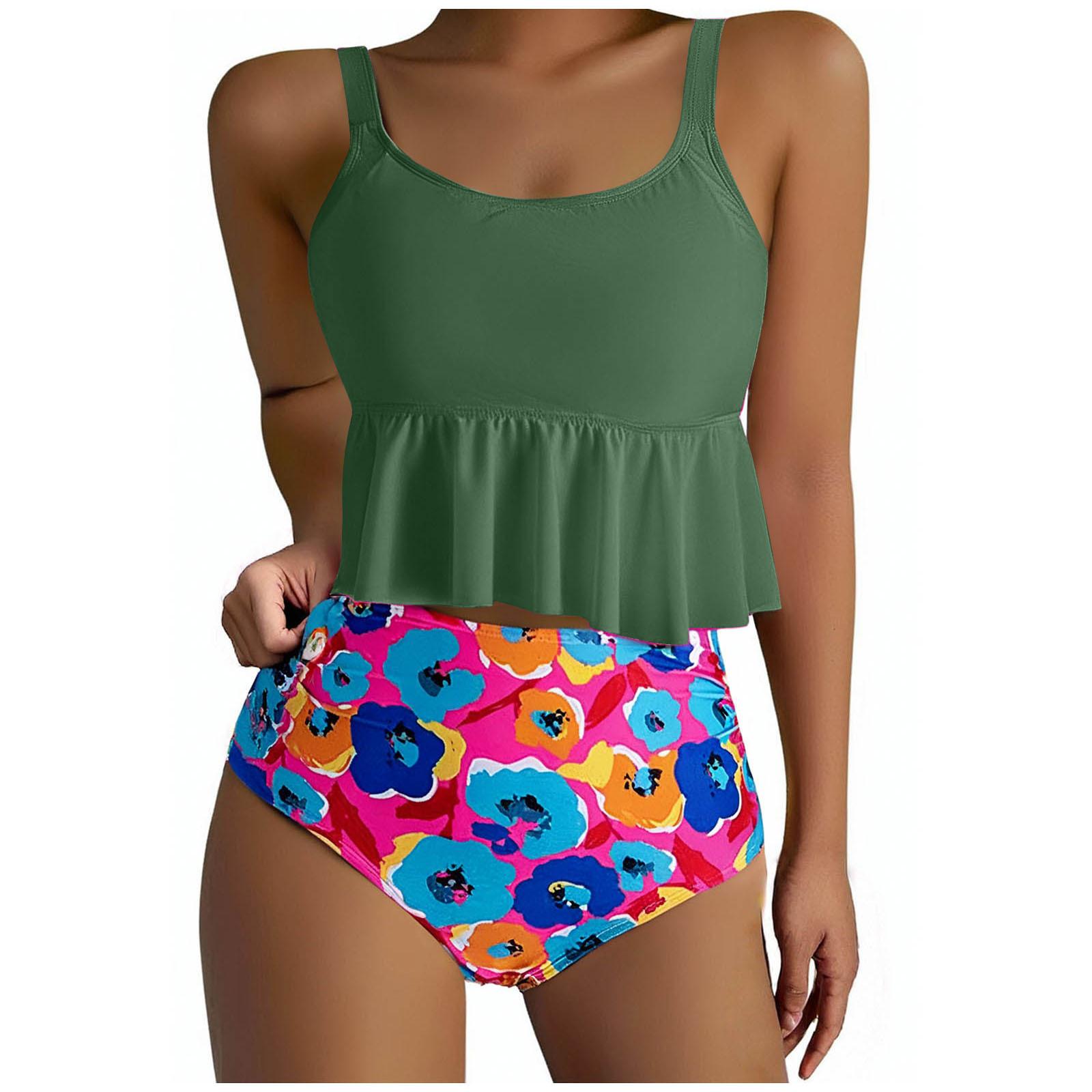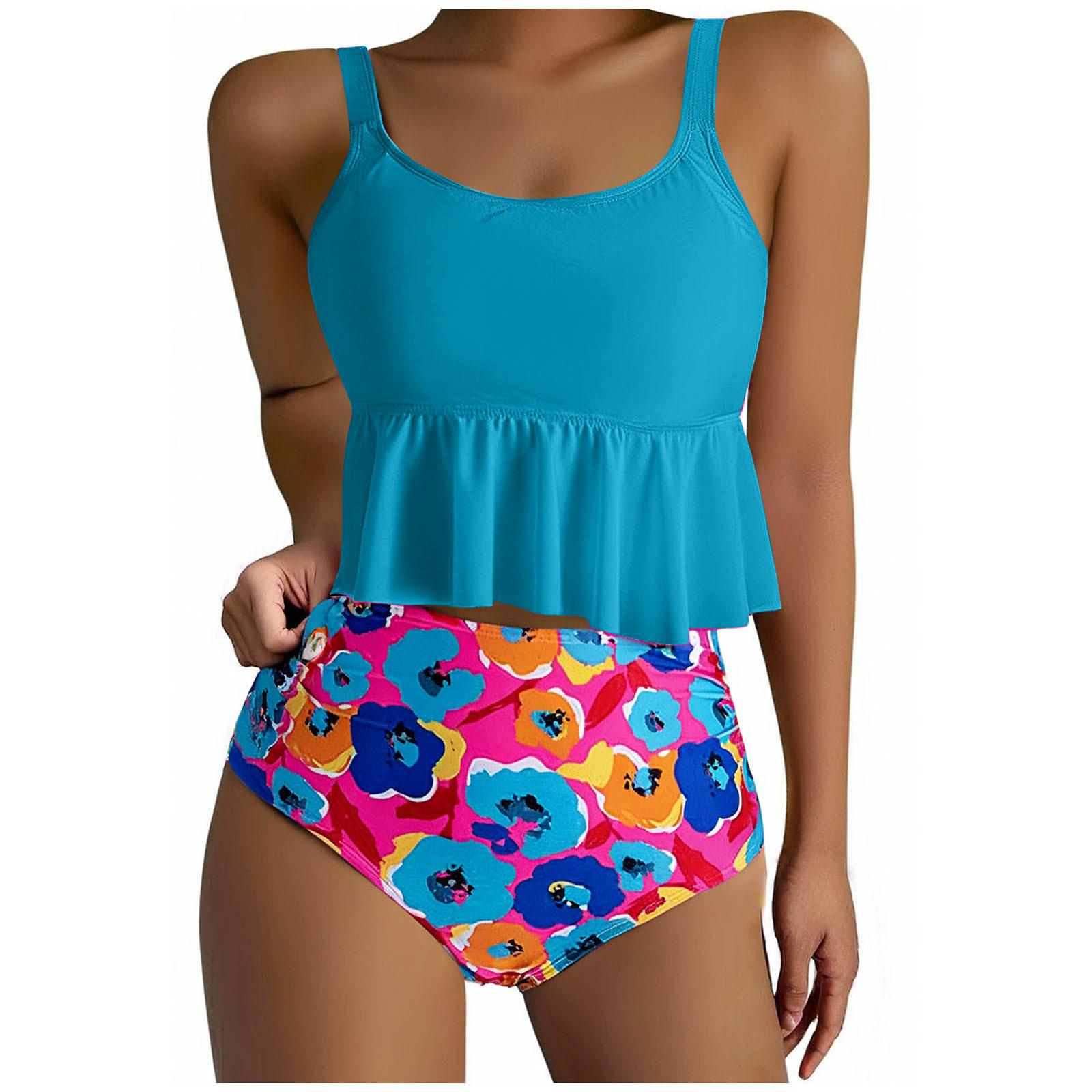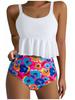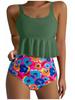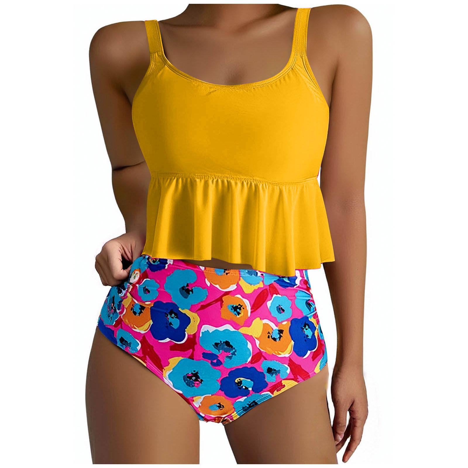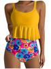 Nuevo traje de baño de comercio exterior europeo y americano dividido, bikini ajustado con volantes de color.