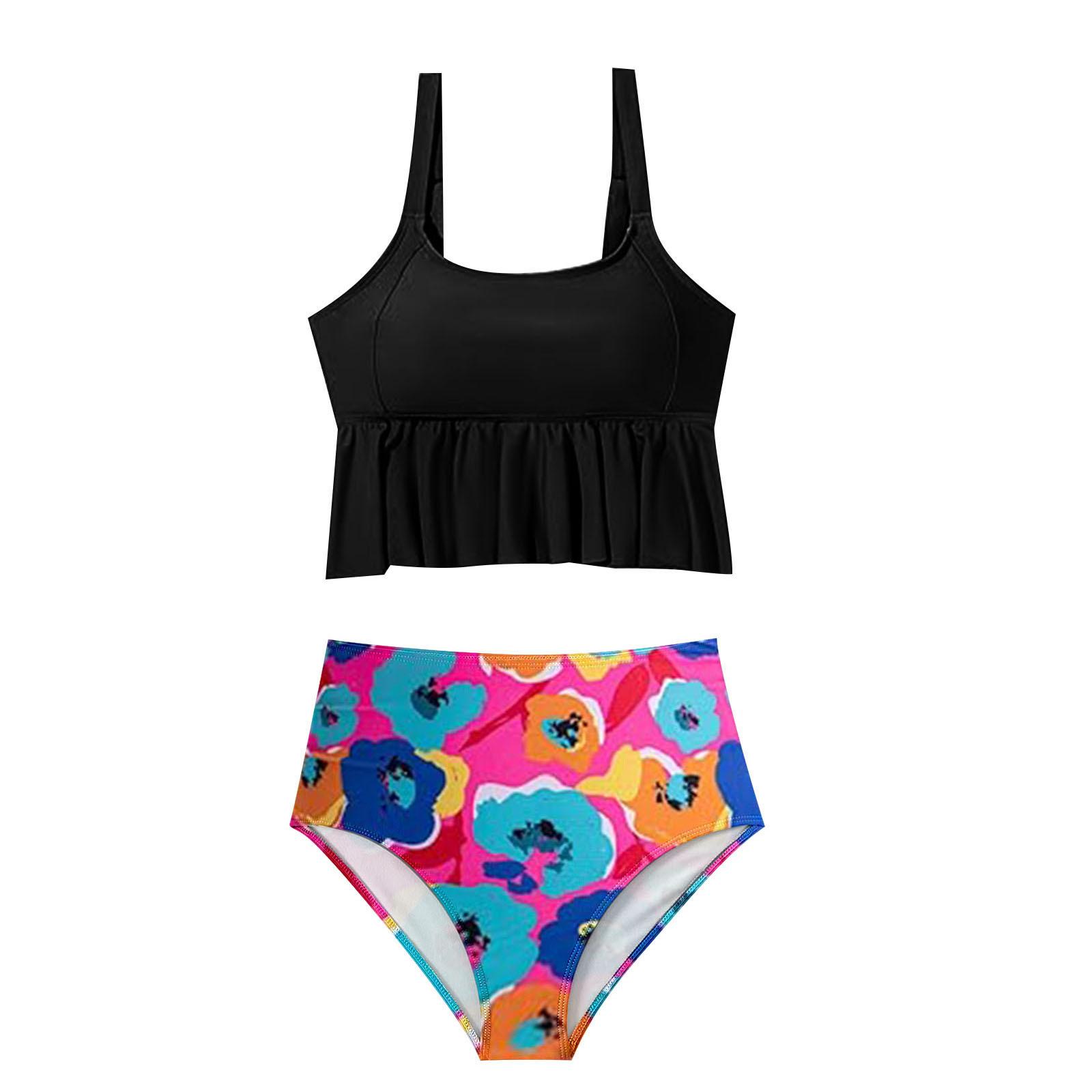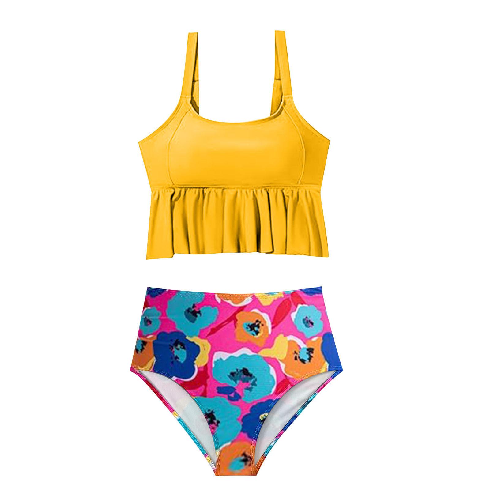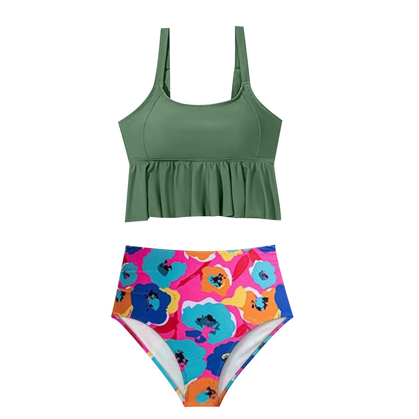 Nuevo traje de baño de comercio exterior europeo y americano dividido, bikini ajustado con volantes de color.