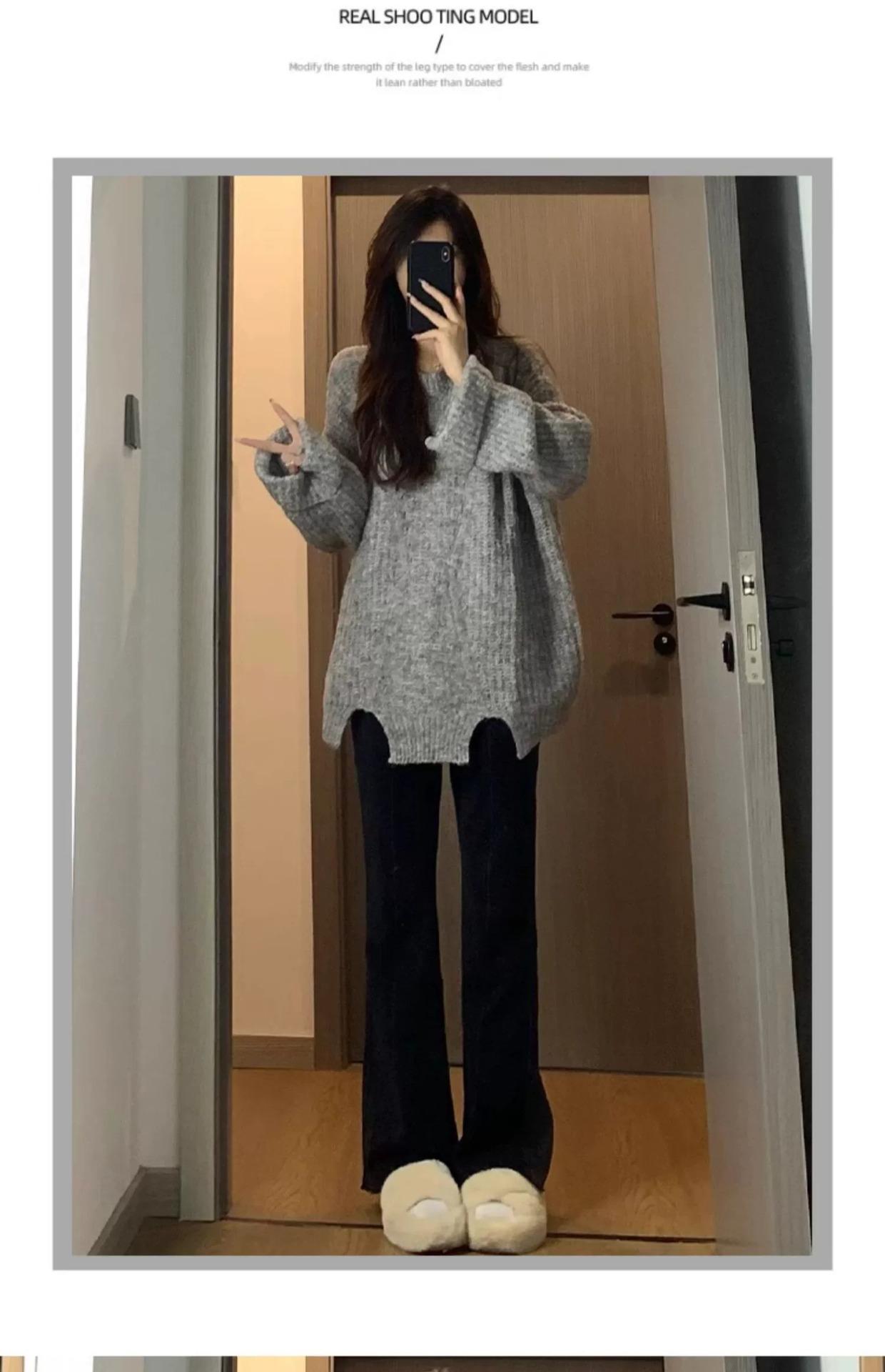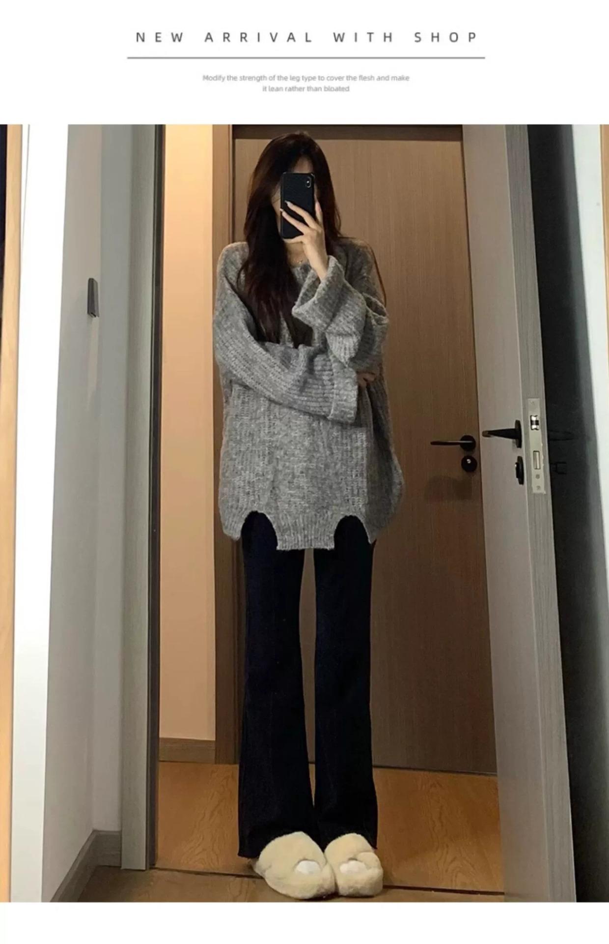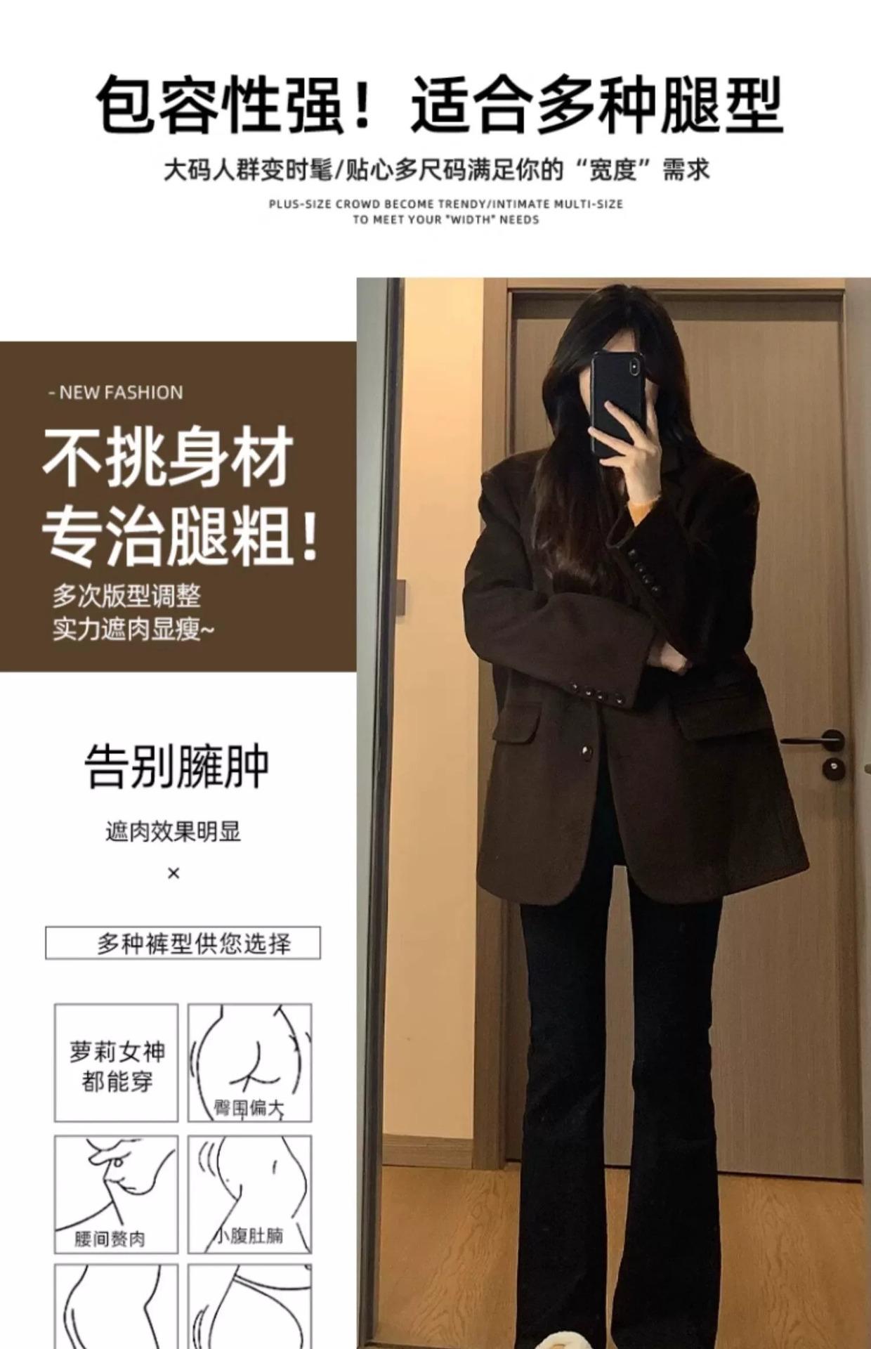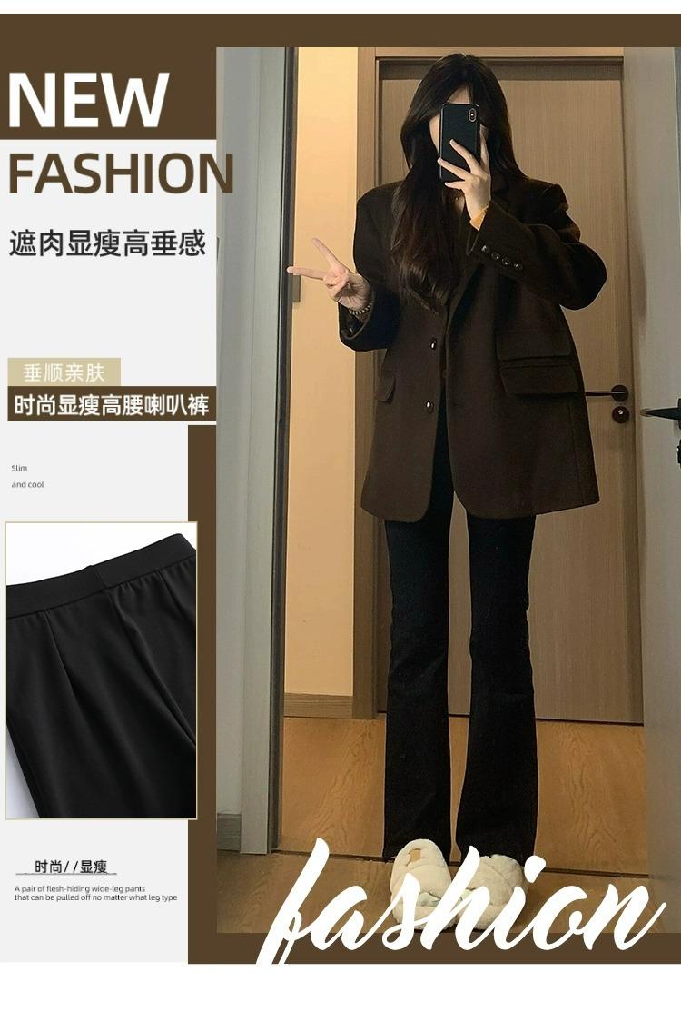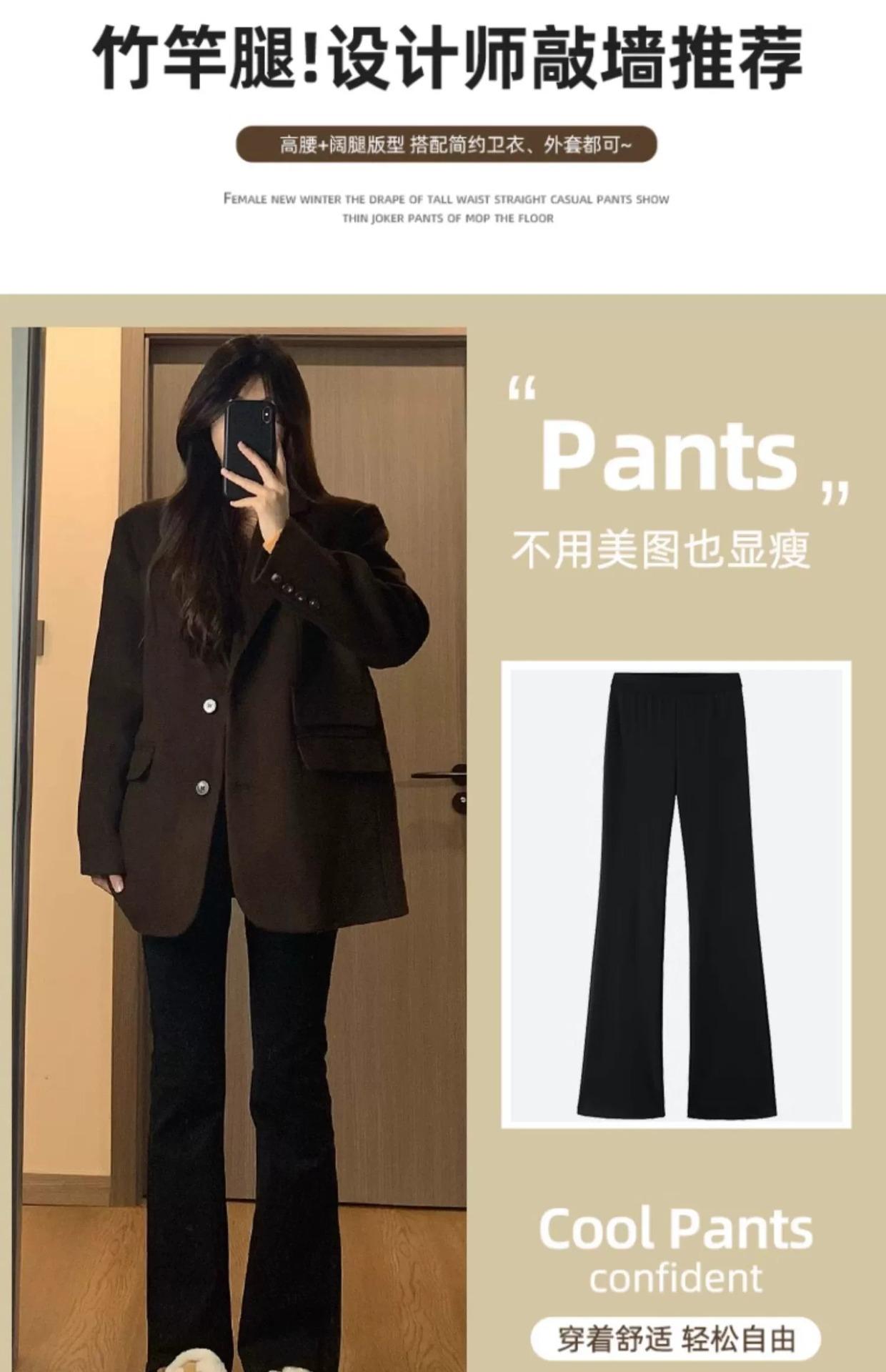 Pantalones negros acampanados vintage de 150 cm, de primavera y otoño, de 145 cm, de talle alto, elásticos, ajustados, rectos y adelgazantes.