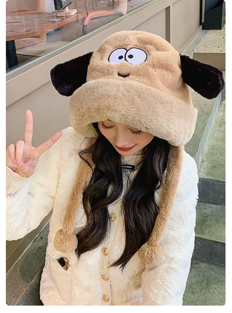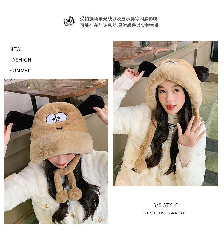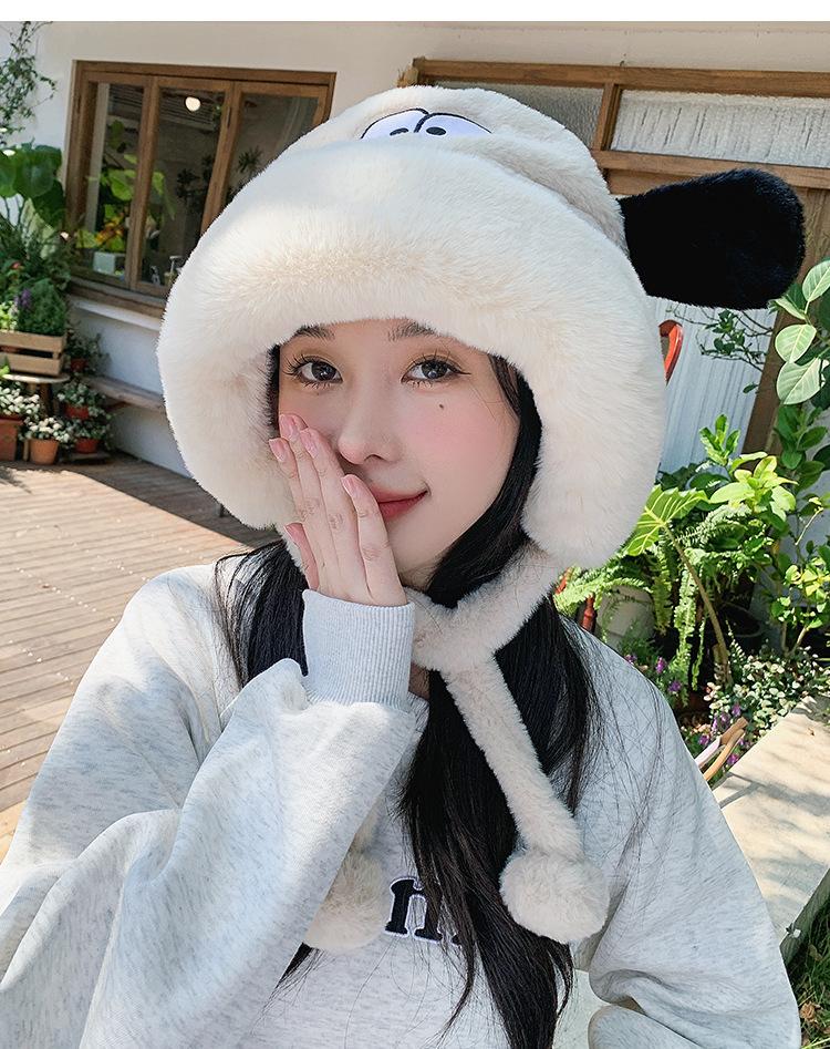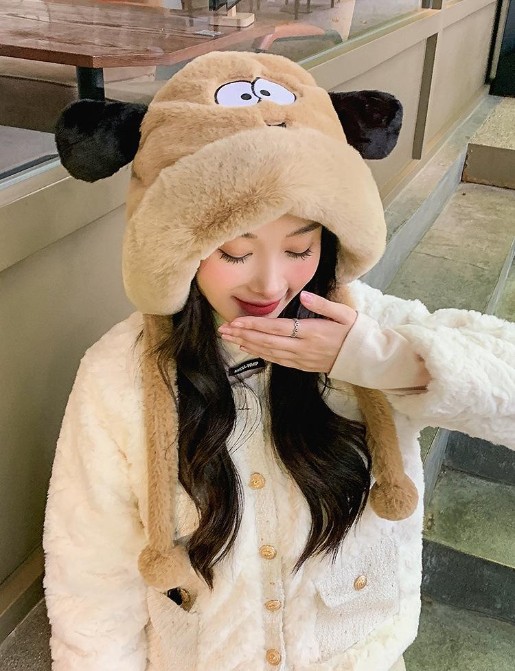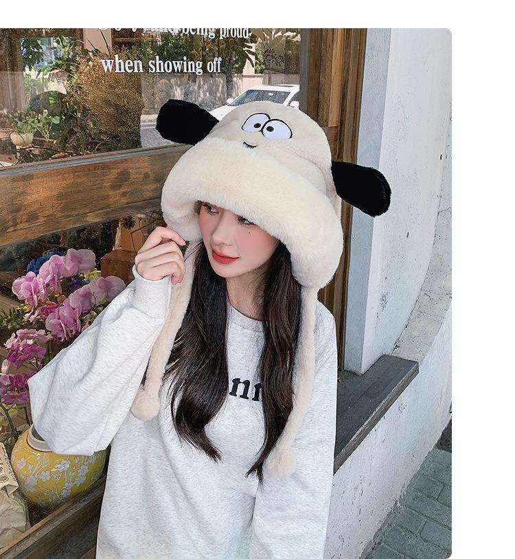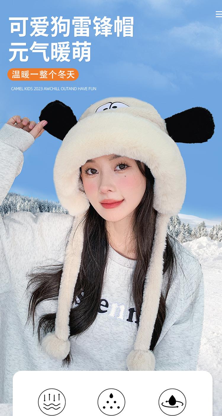 Gorro de peluche para mujer, de invierno, con bonitos dibujos de cachorros, grueso, para ciclismo, versátil, para estudiantes, con protección para los oídos, cálido gorro Lei Feng para el cabello de la generación anterior.
