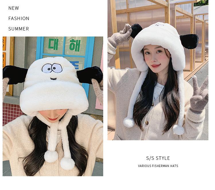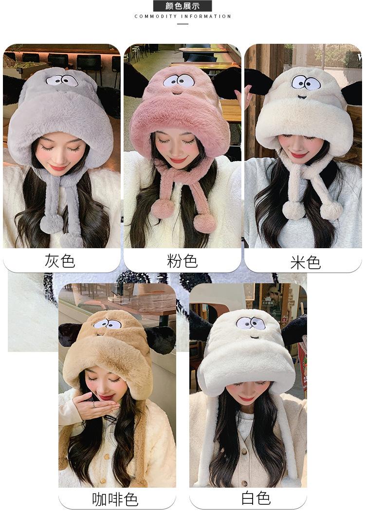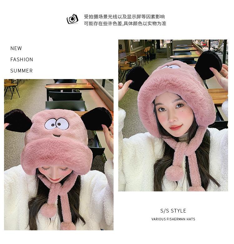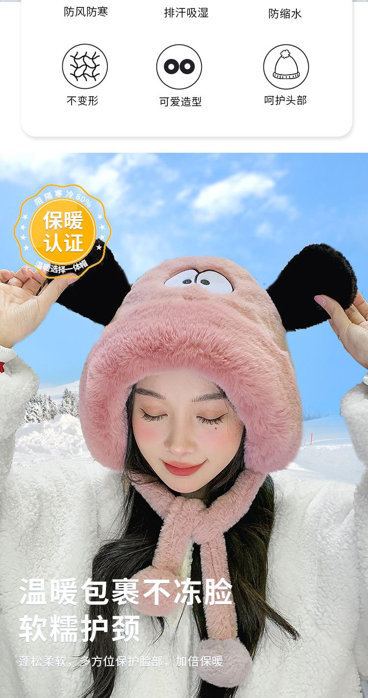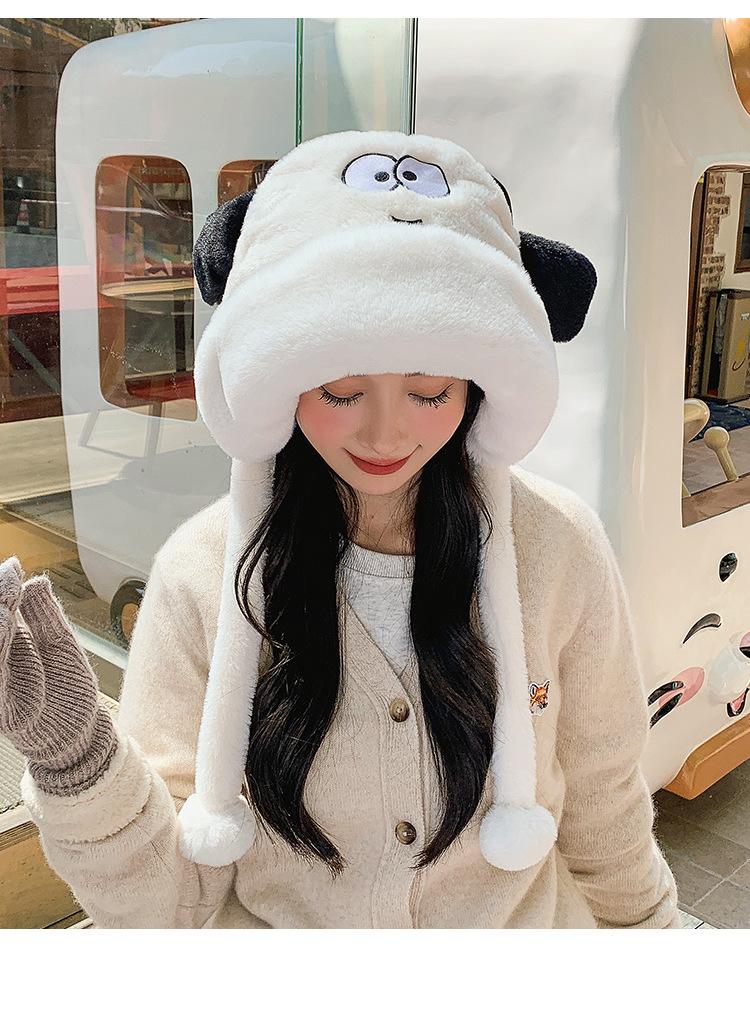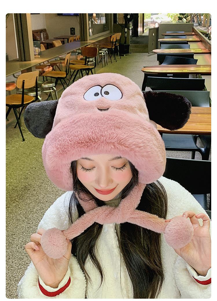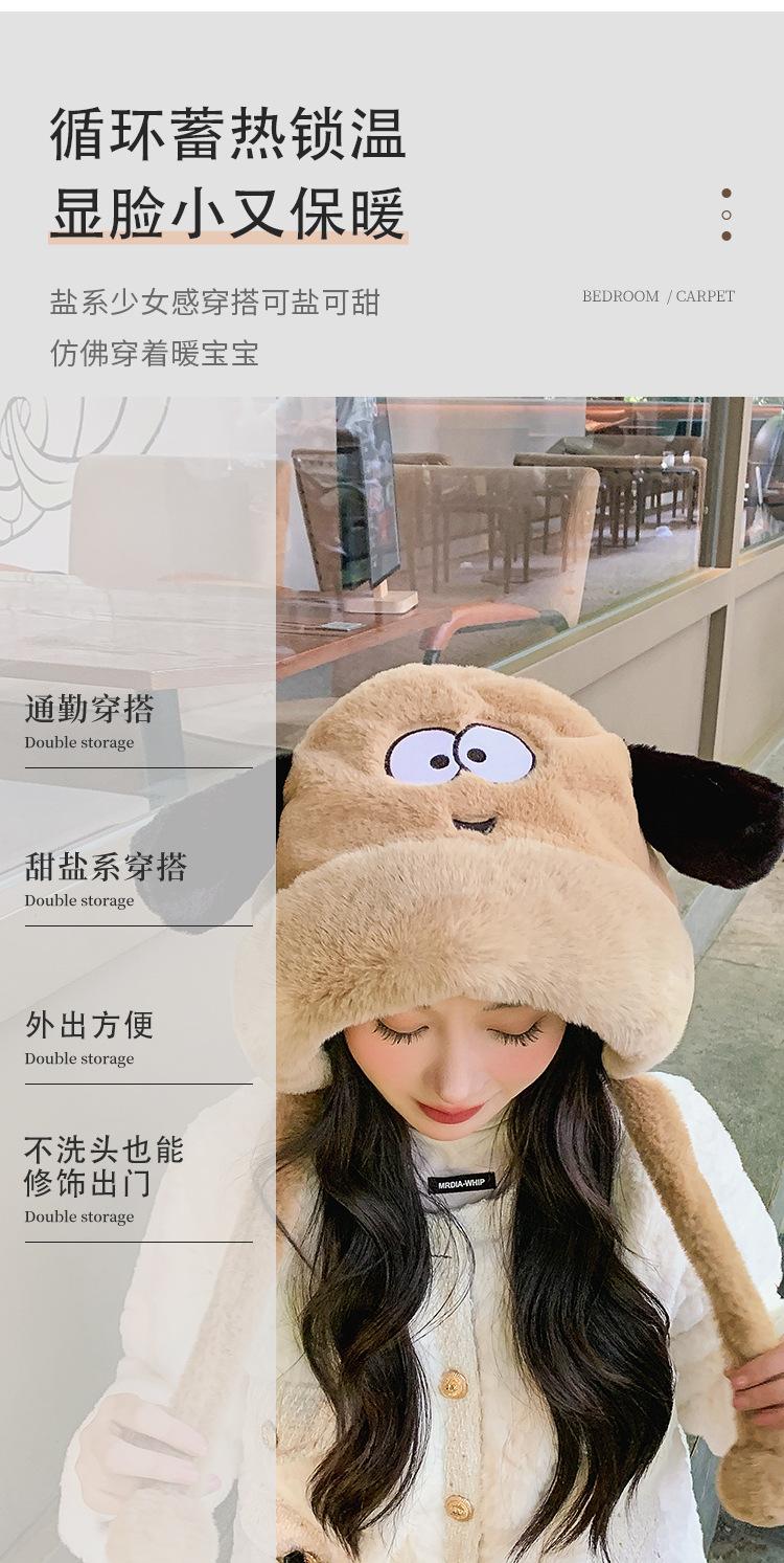 Gorro de peluche para mujer, de invierno, con bonitos dibujos de cachorros, grueso, para ciclismo, versátil, para estudiantes, con protección para los oídos, cálido gorro Lei Feng para el cabello de la generación anterior.