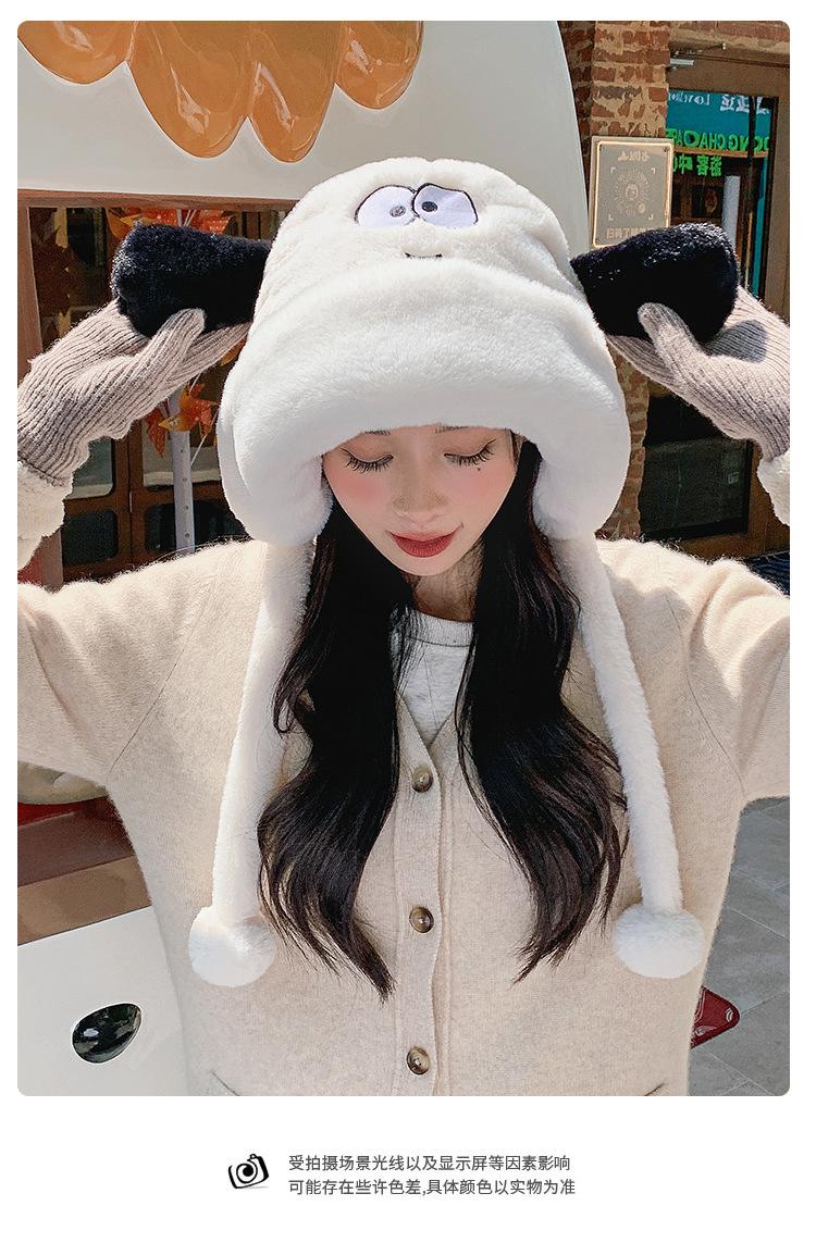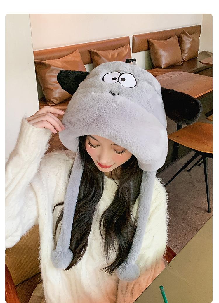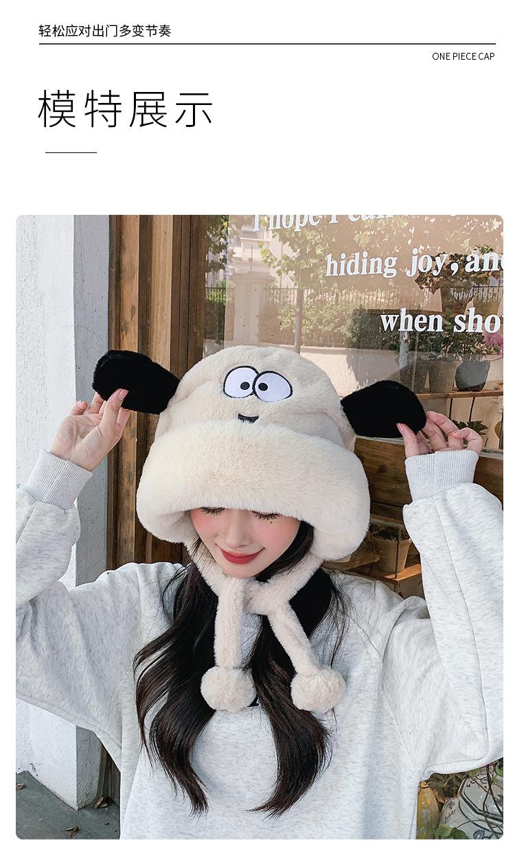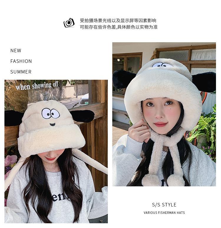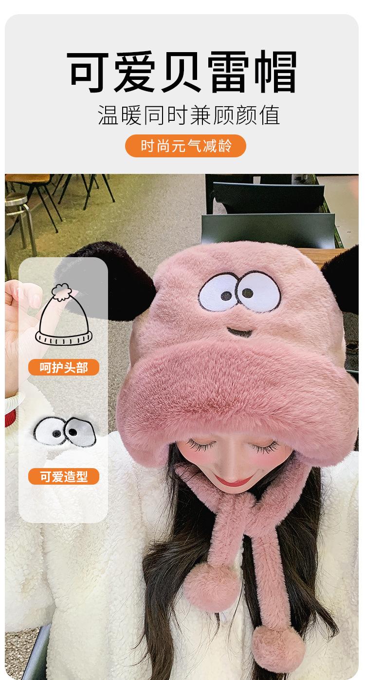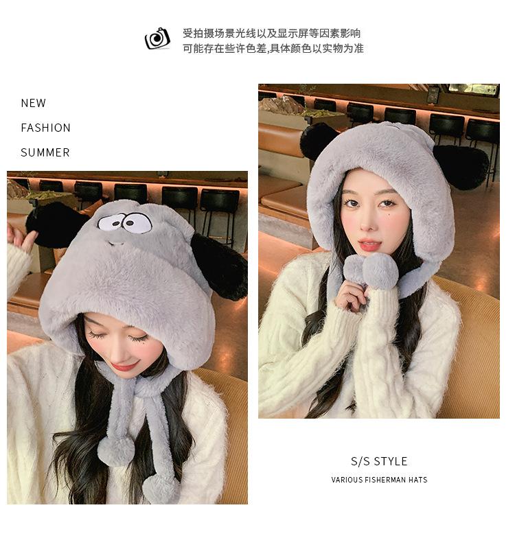 Gorro de peluche para mujer, de invierno, con bonitos dibujos de cachorros, grueso, para ciclismo, versátil, para estudiantes, con protección para los oídos, cálido gorro Lei Feng para el cabello de la generación anterior.