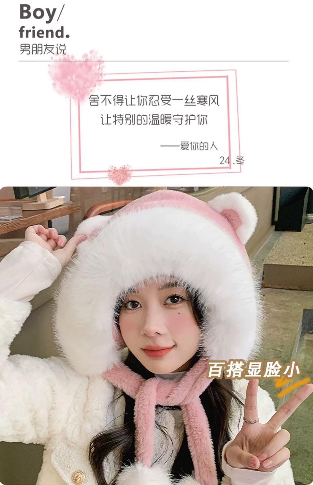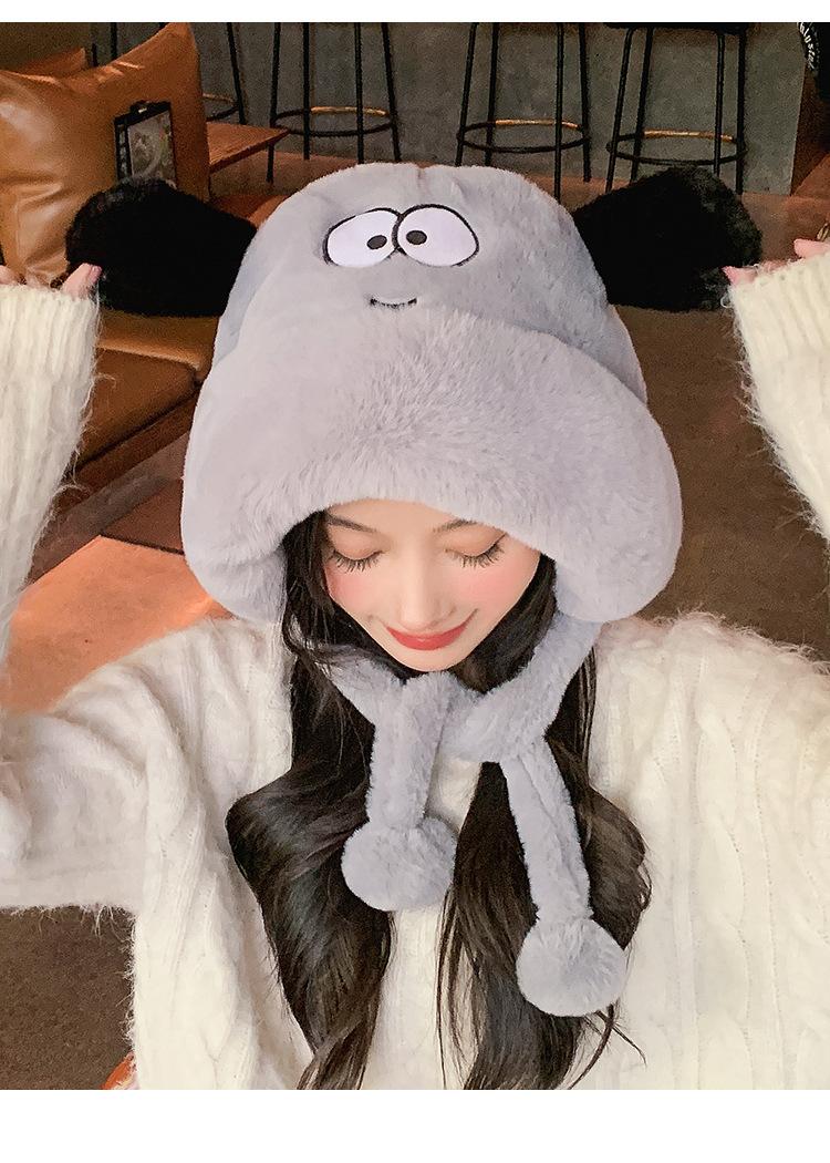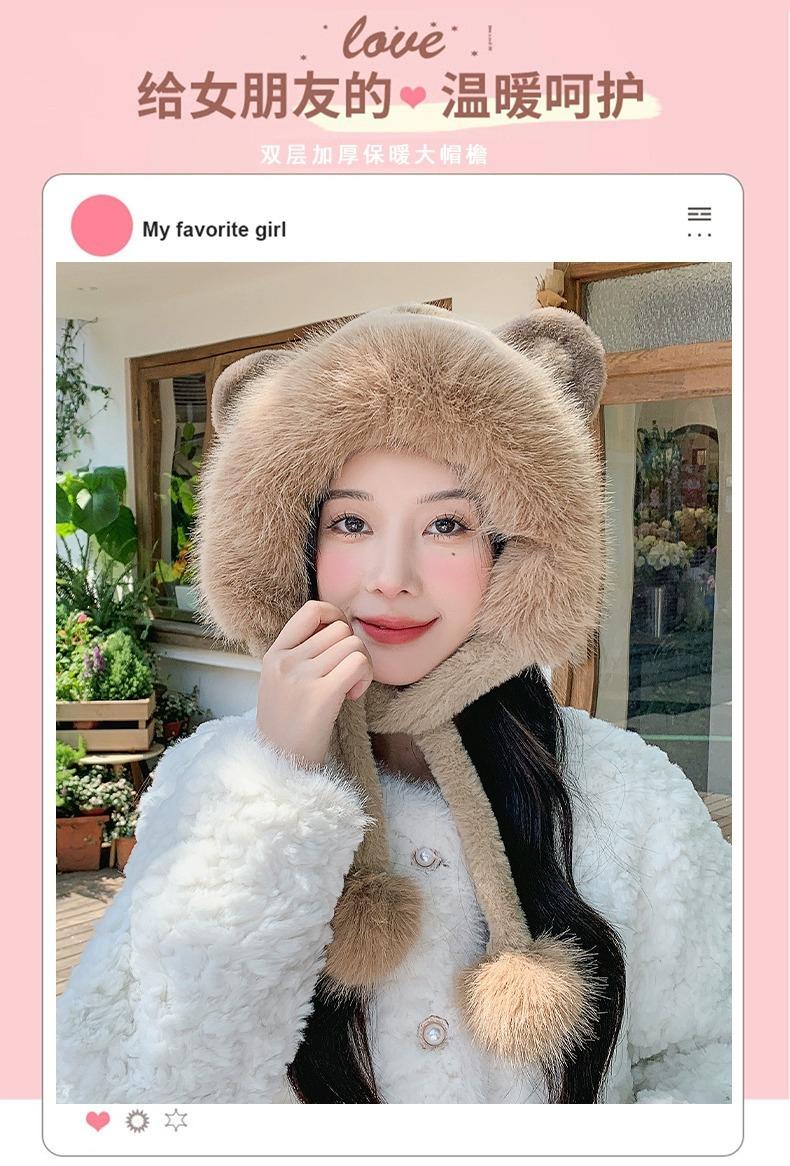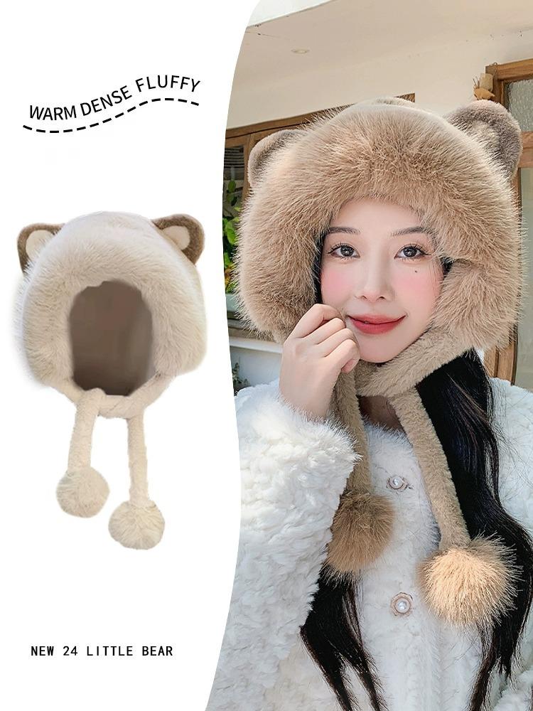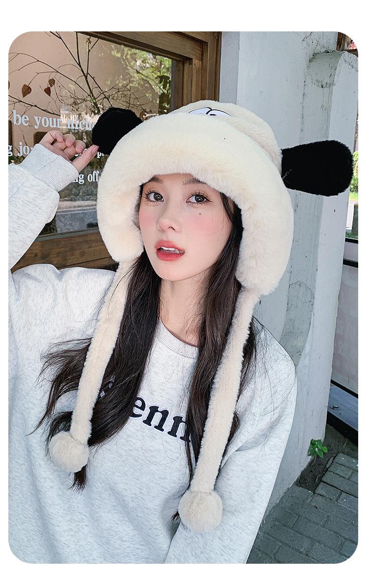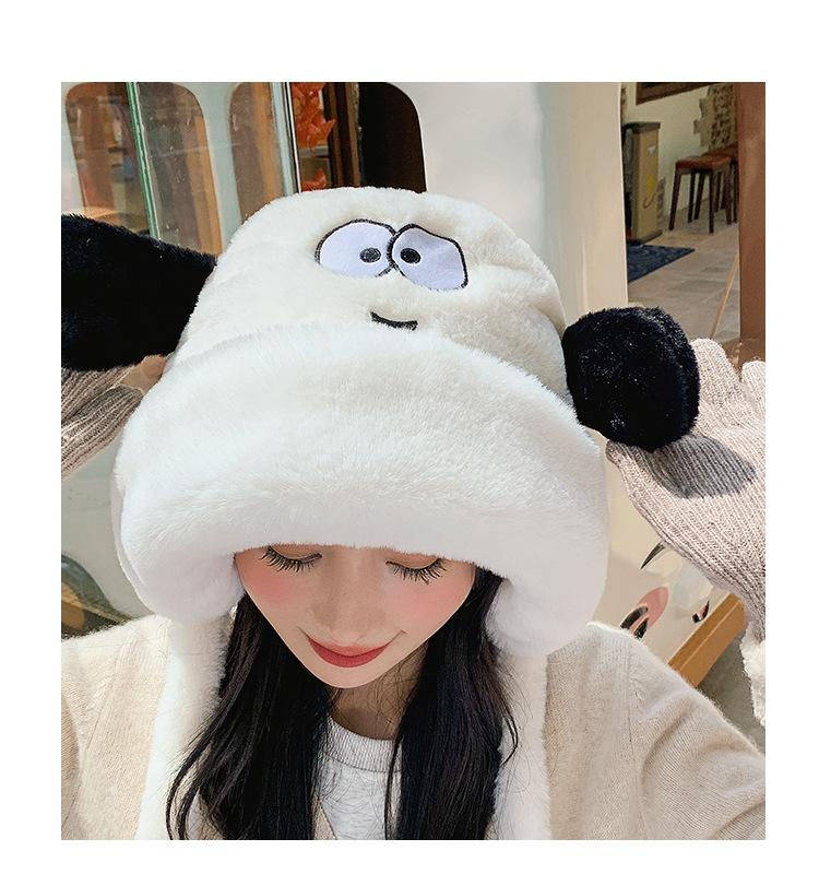 Gorro de peluche para mujer, de invierno, con bonitos dibujos de cachorros, grueso, para ciclismo, versátil, para estudiantes, con protección para los oídos, cálido gorro Lei Feng para el cabello de la generación anterior.