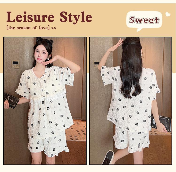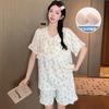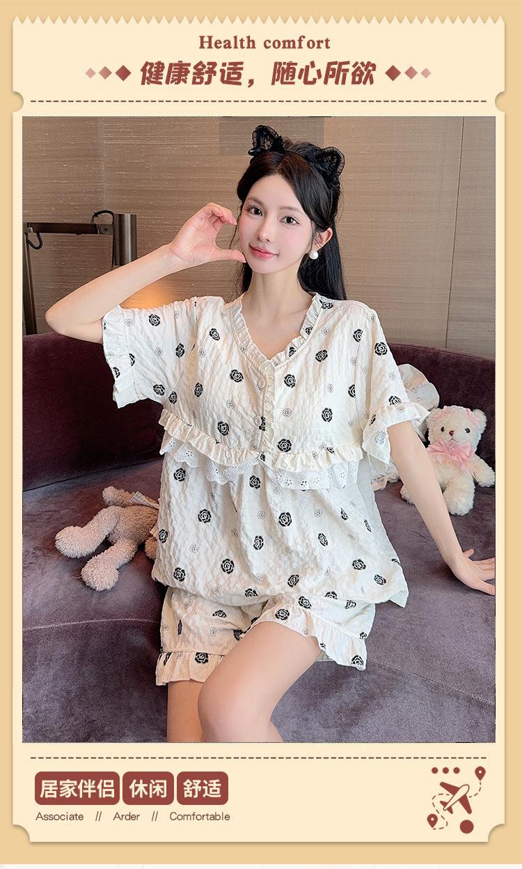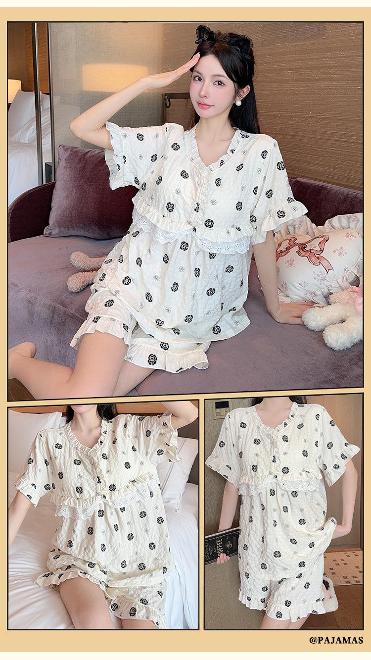 Pijama de algodón Cloud 2024 con almohadilla para el pecho para mujer, traje de verano con estampado de princesa dulce, ropa de casa al por mayor
