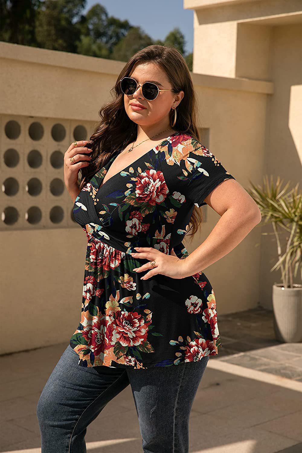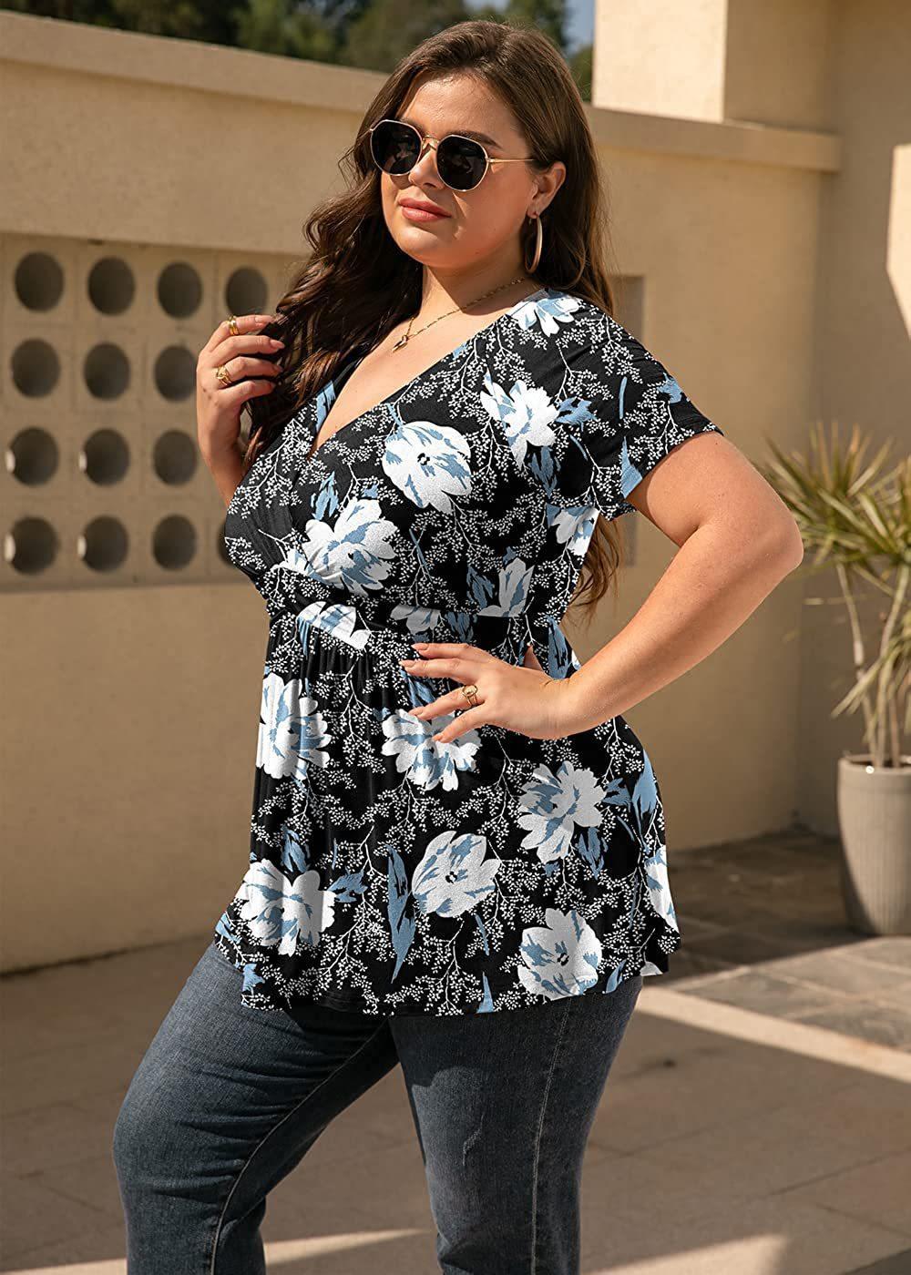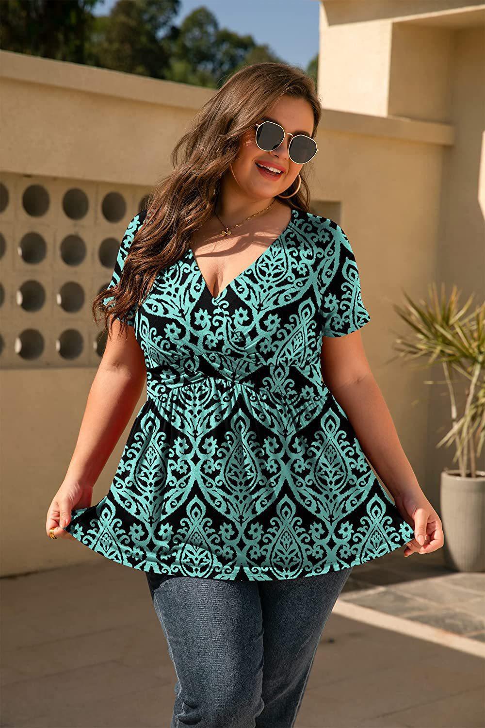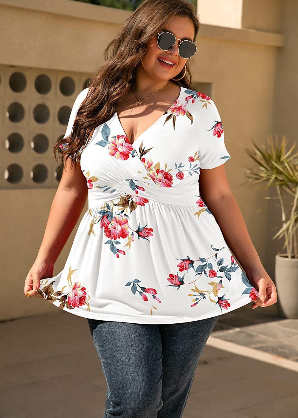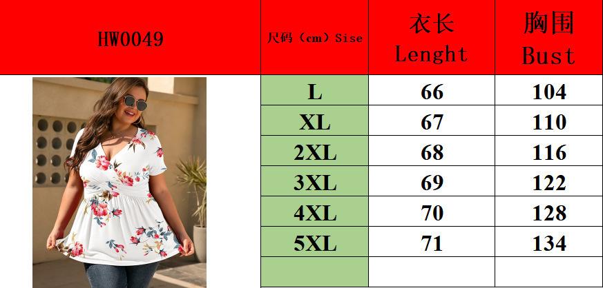 2024 Primavera y Verano Nuevo ExporT Transfronterizo Europeo y Americano Amazon Camiseta Estampada Tops de Mujer Talla Grande Ropa de Mujer