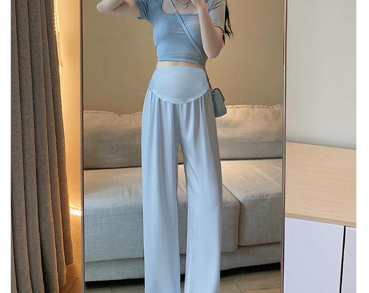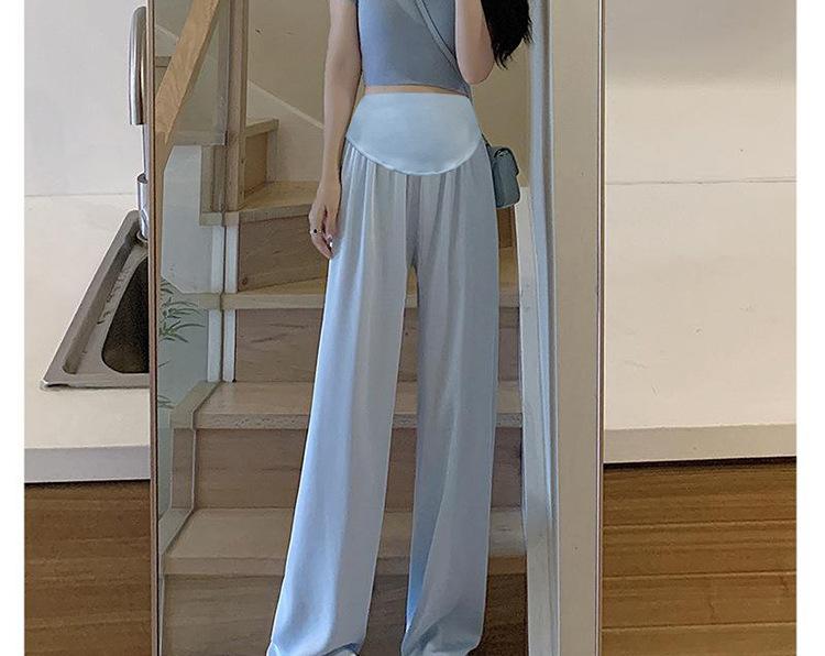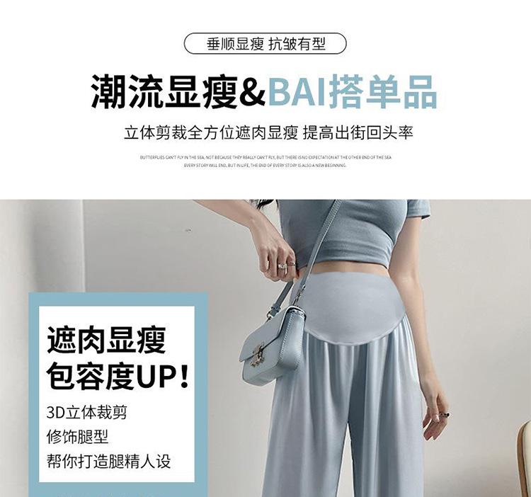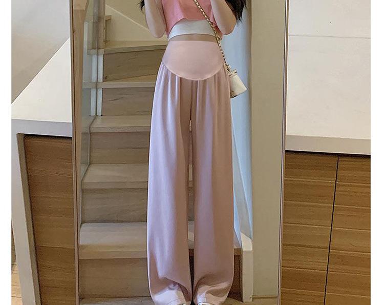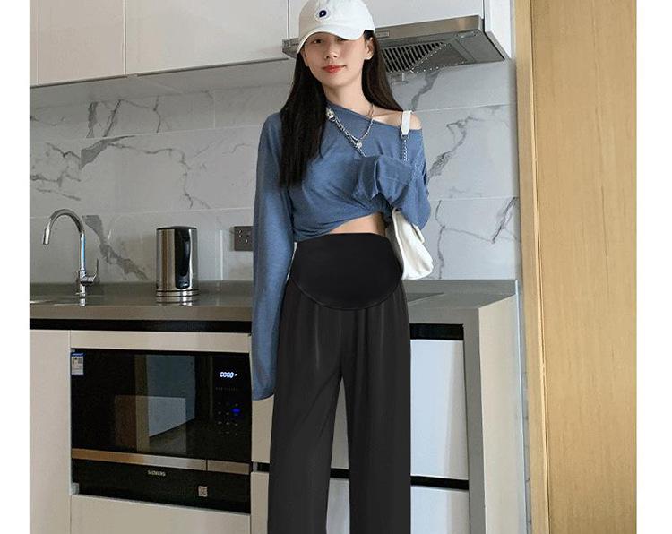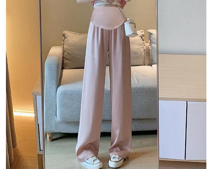 Pantalones de mujer embarazada, novedad de verano 2023, finos, de gasa, rectos, informales, de seda helada, con pierna ancha, para el vientre.