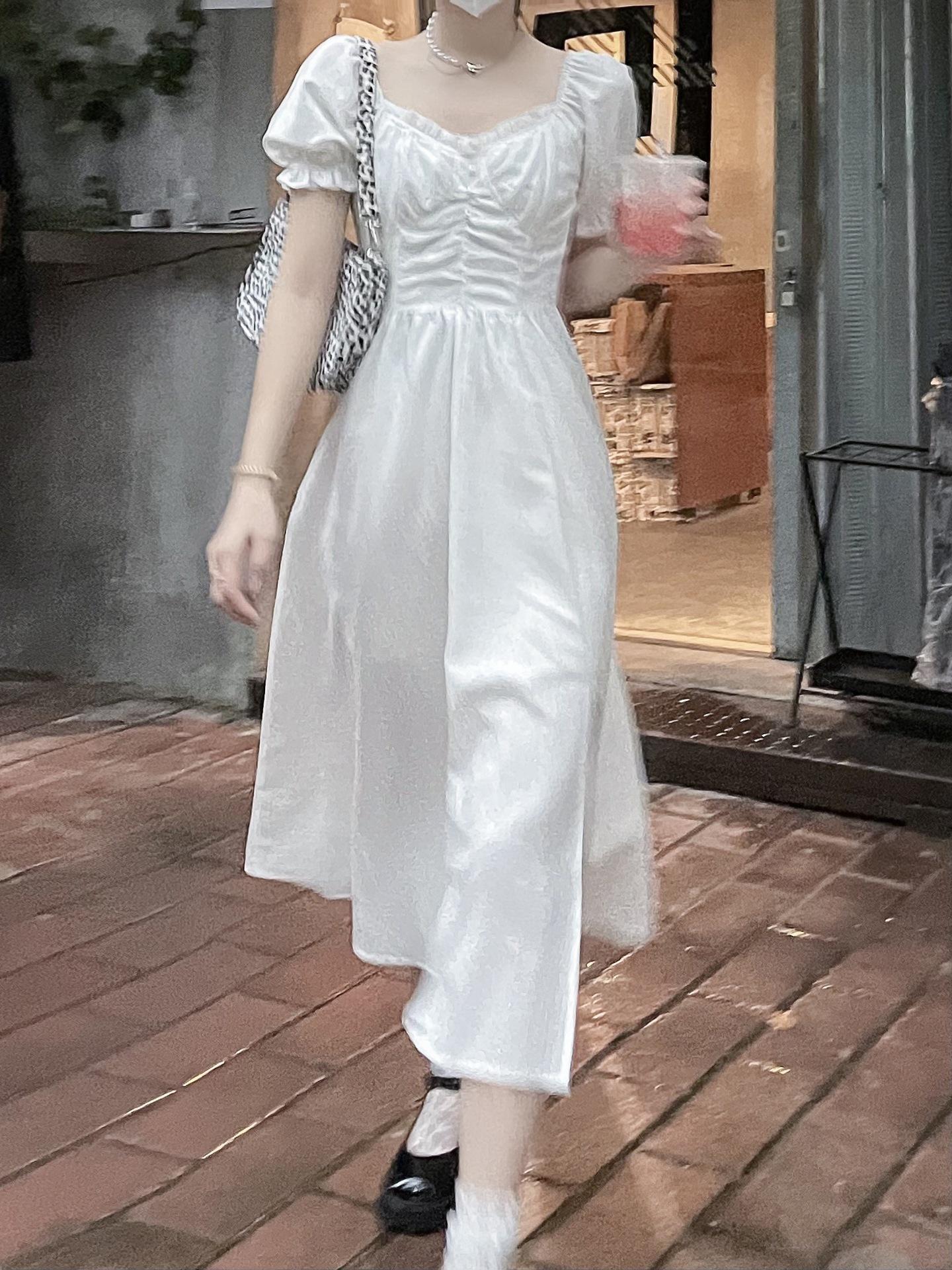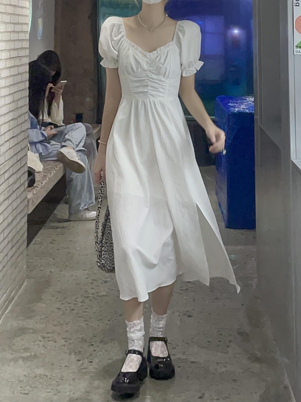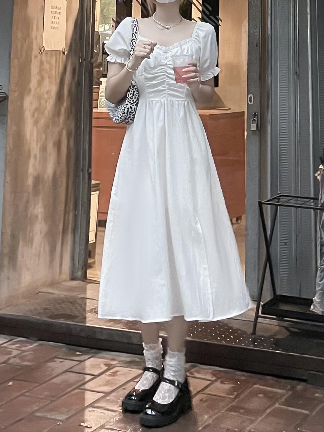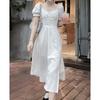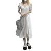 Vestido blanco puro estilo francés de verano, estilo occidental, largo, nuevo, con cuello cuadrado dividido, corte en A, manga corta, para mujer, venta al por mayor
