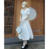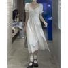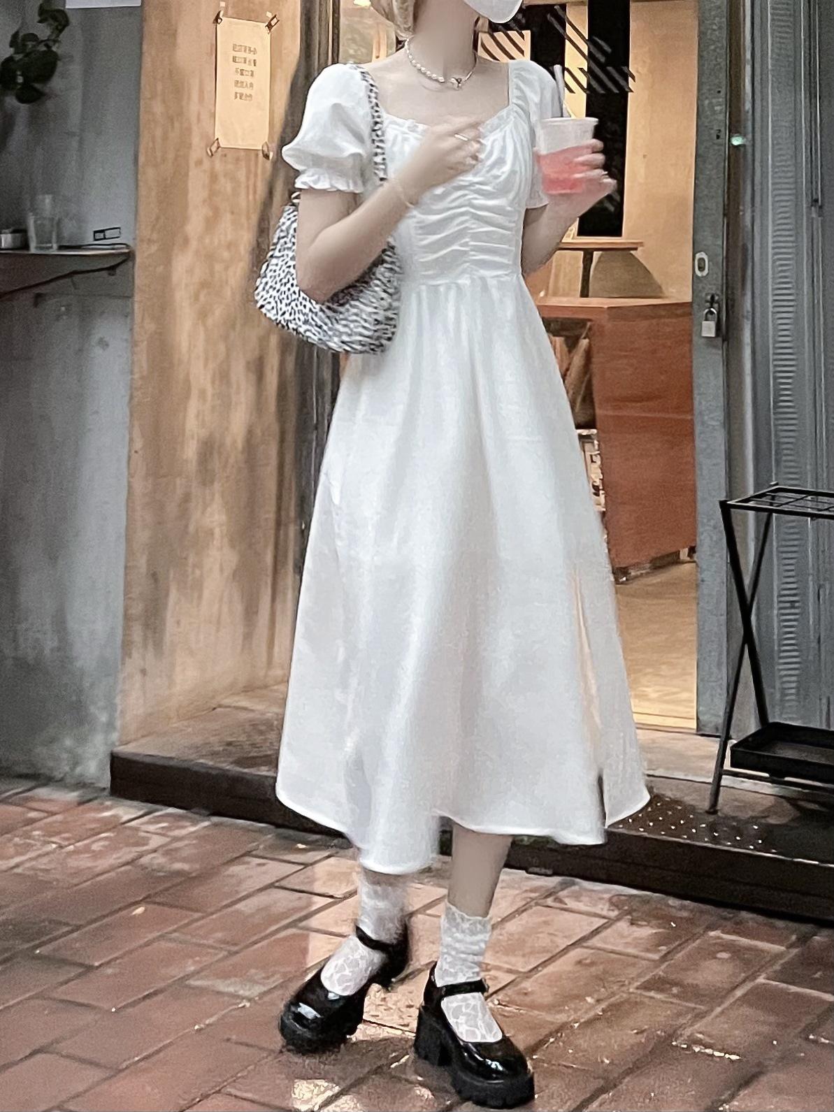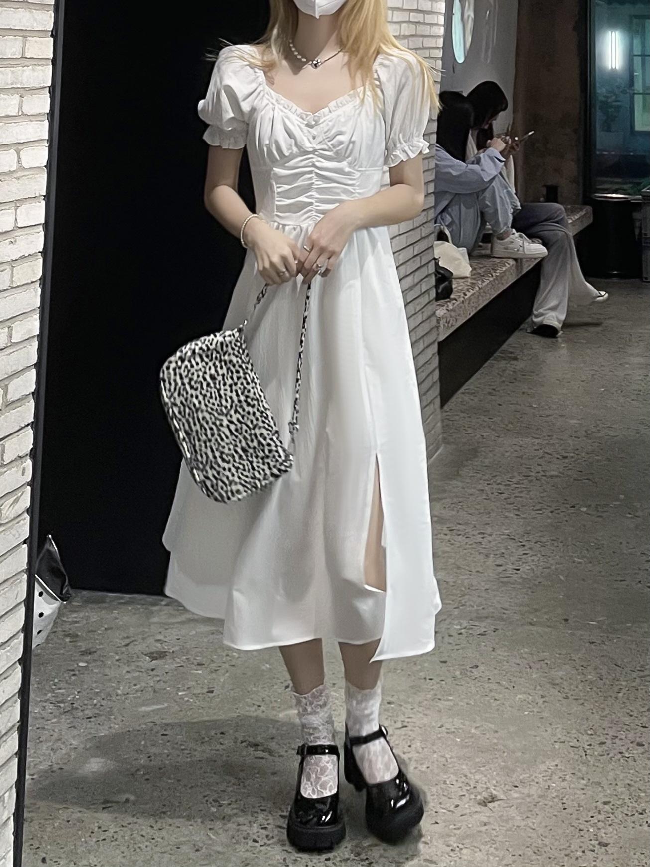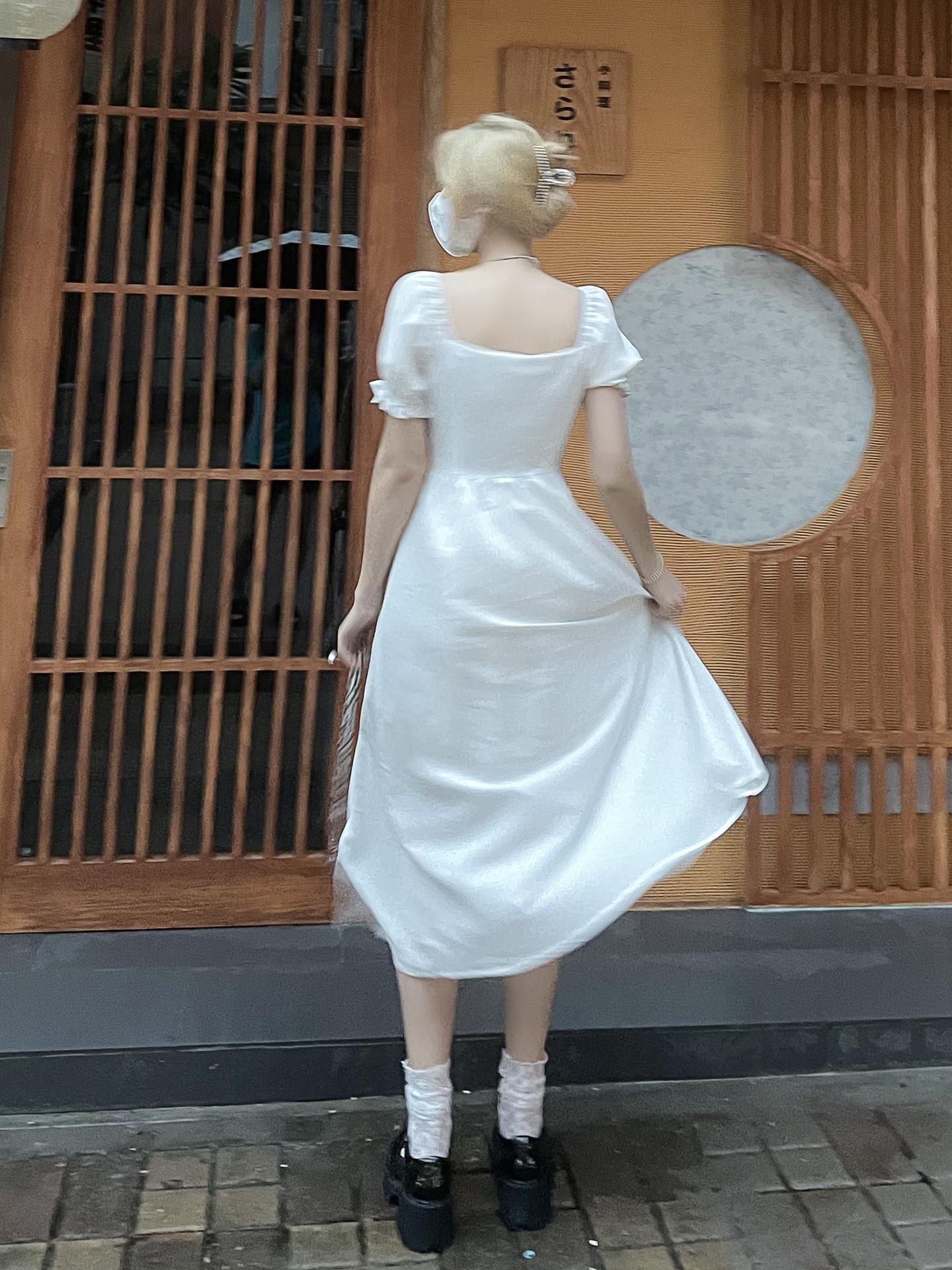 Vestido blanco puro estilo francés de verano, estilo occidental, largo, nuevo, con cuello cuadrado dividido, corte en A, manga corta, para mujer, venta al por mayor