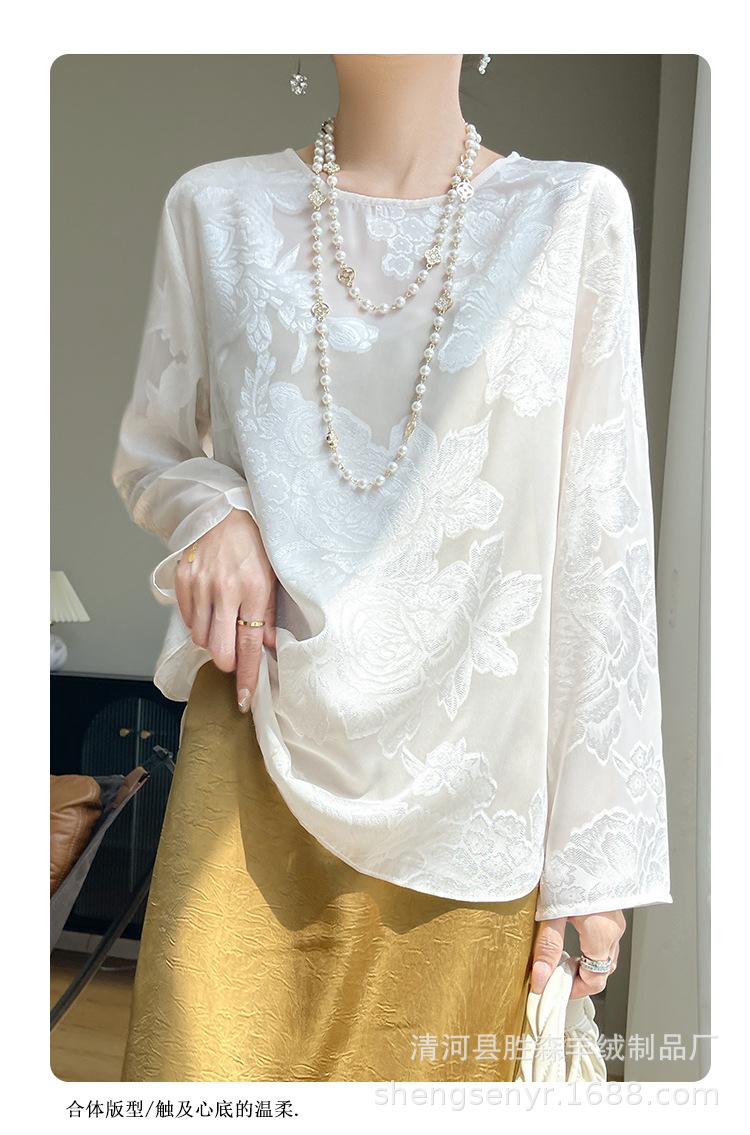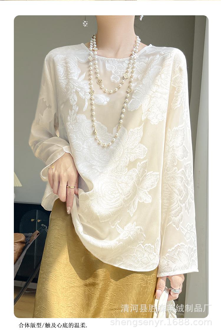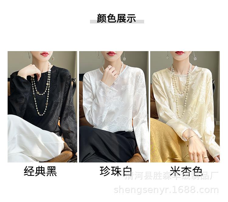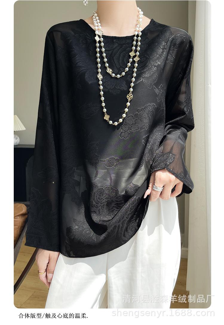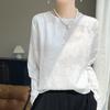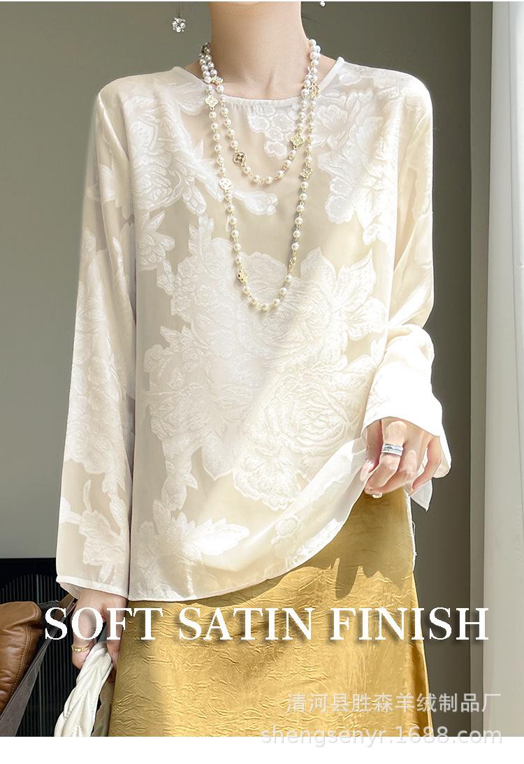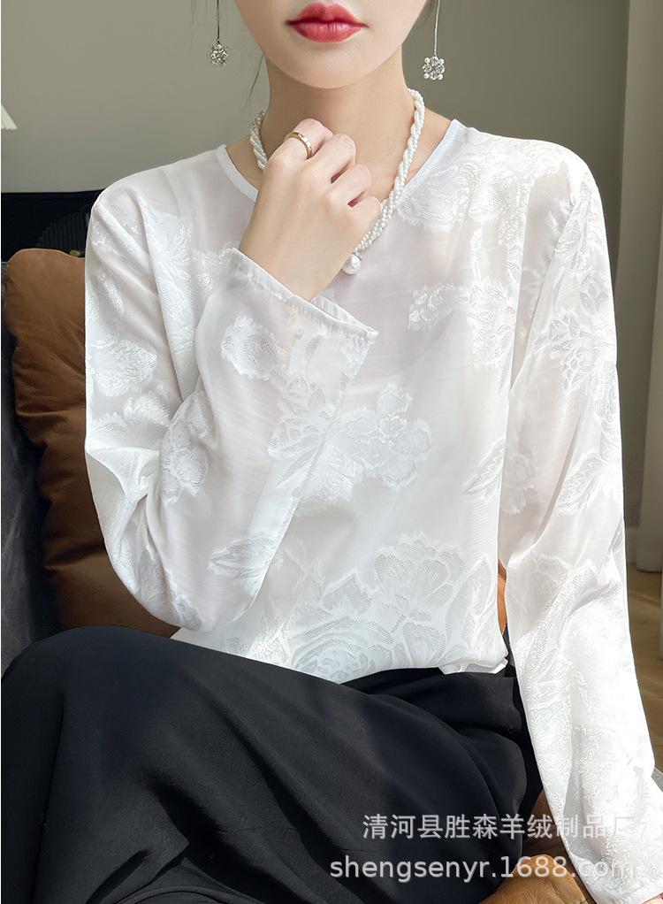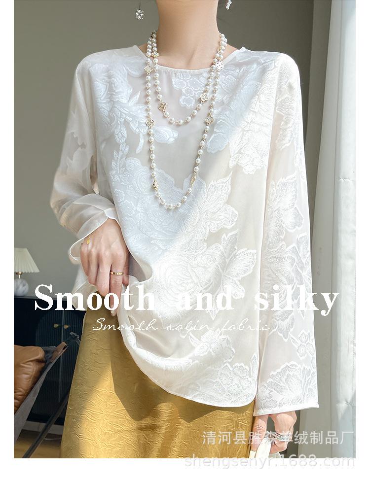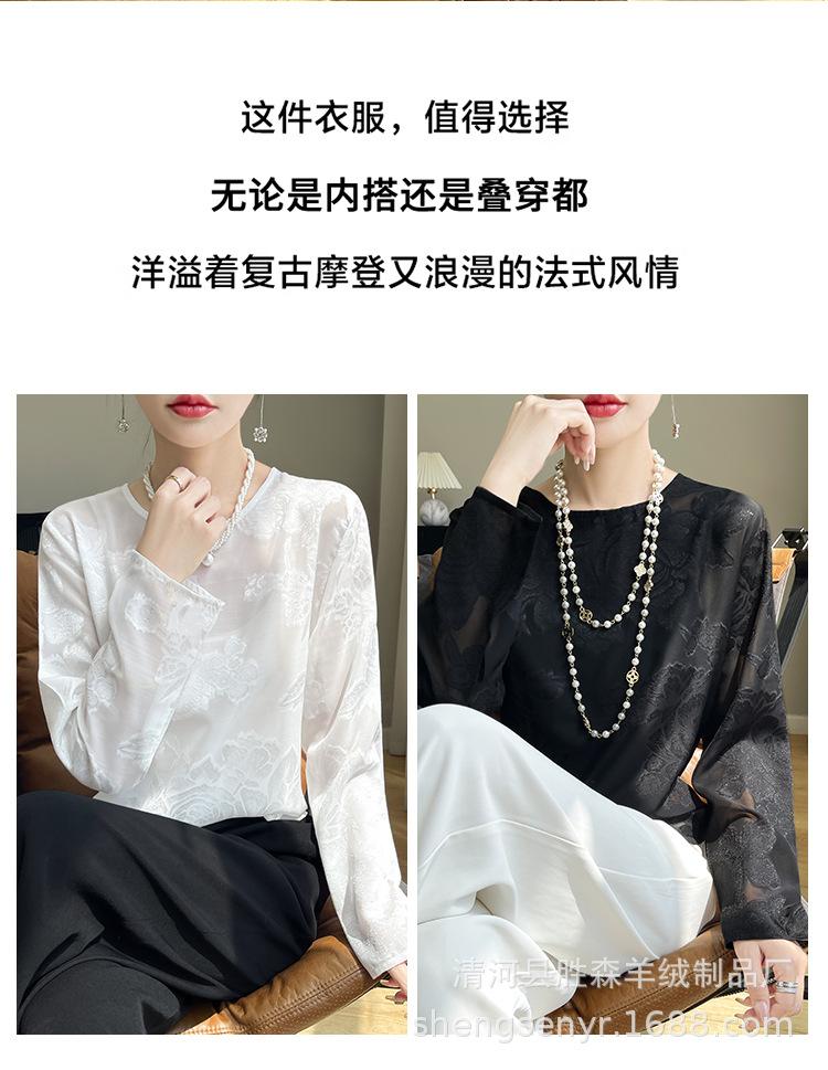 Transfronterizo 2025 Verano Nuevo Retro Estilo Chino Cuello Redondo Camisa Seda Hielo Elegante Jacquard Versátil Top de Mujer