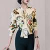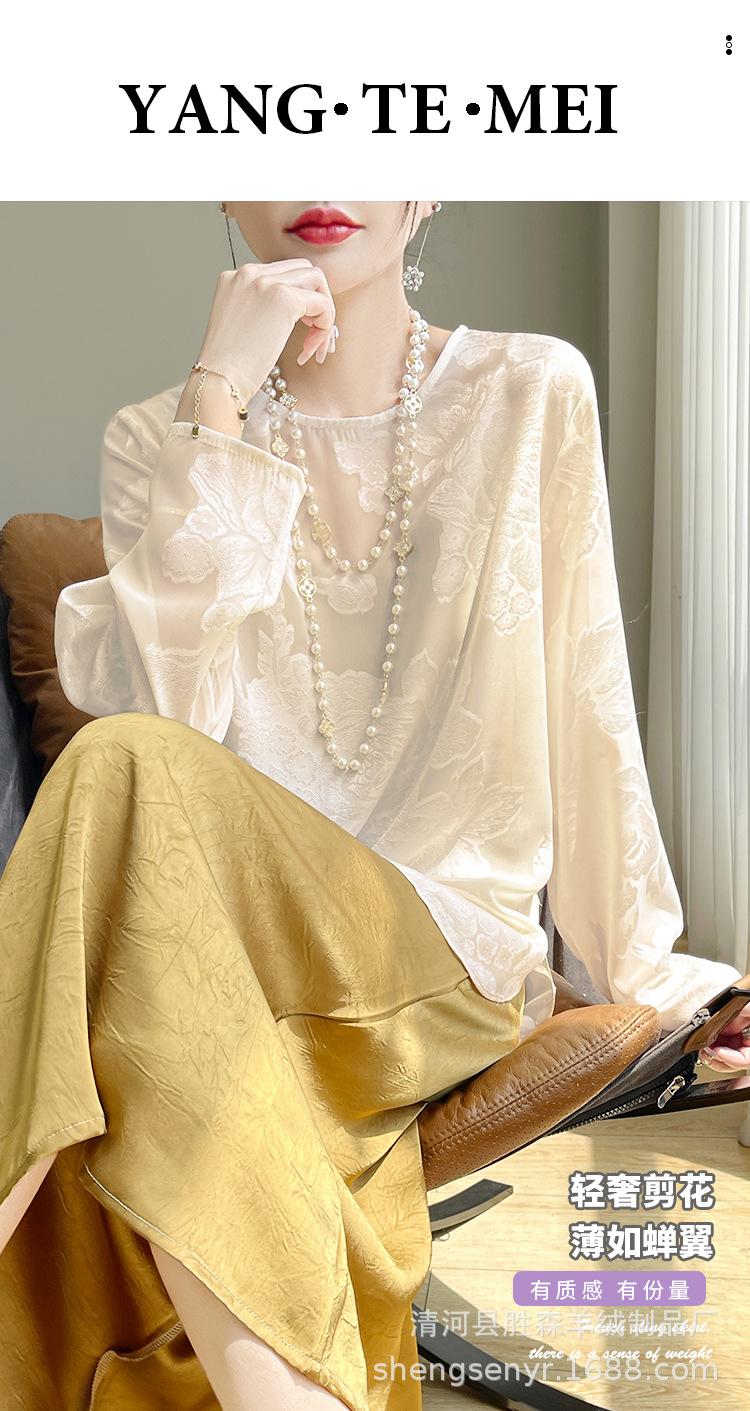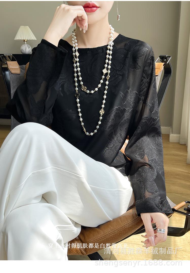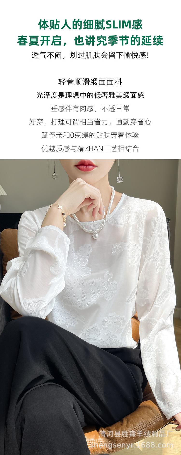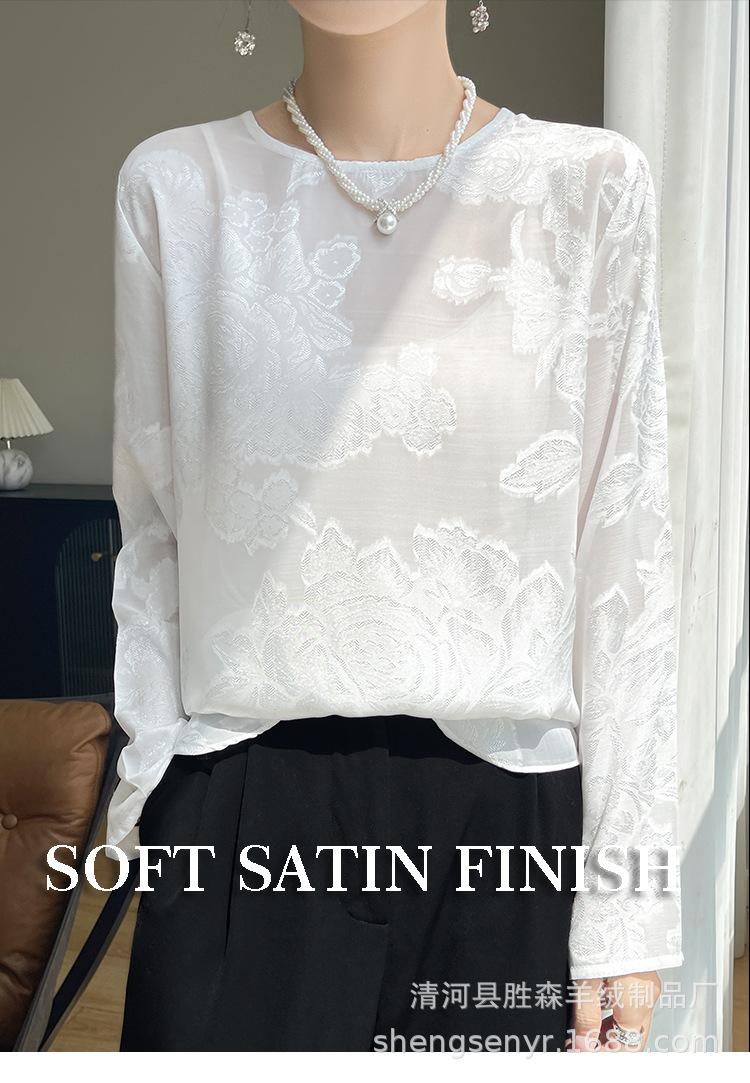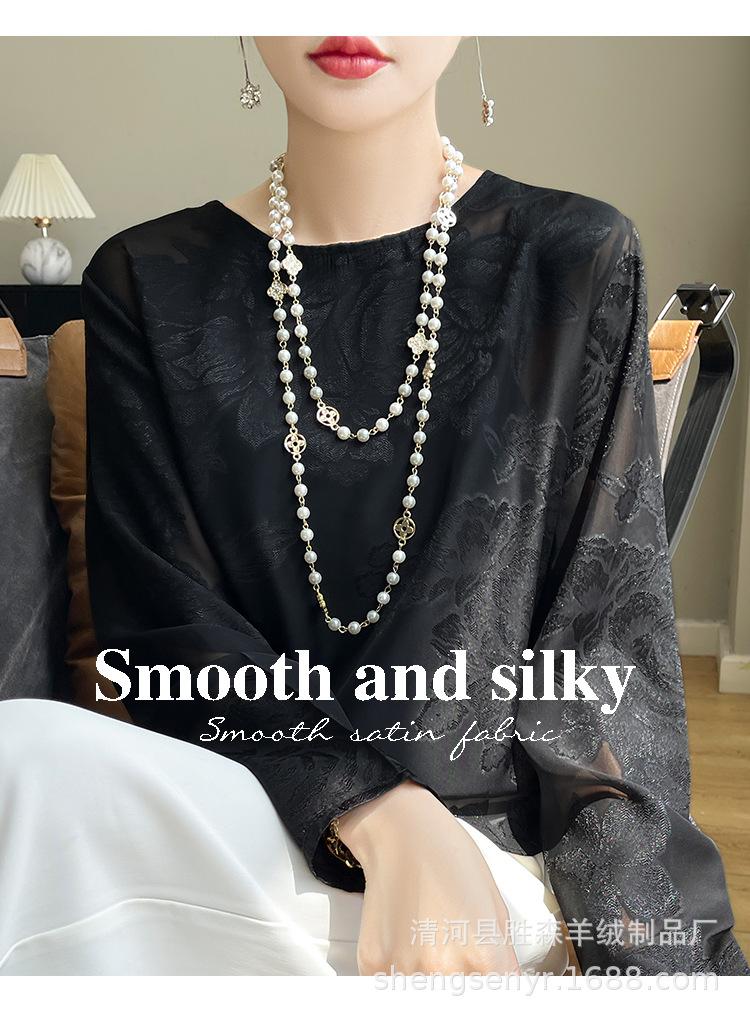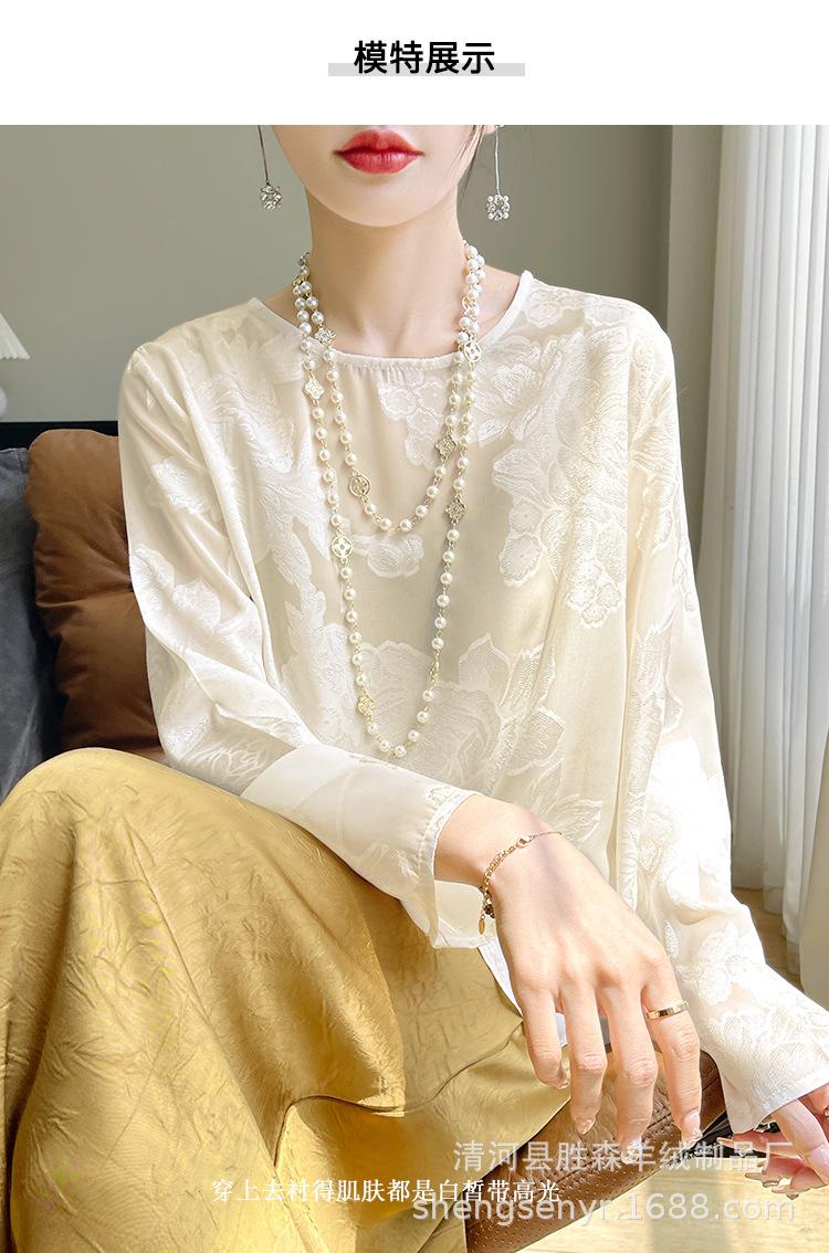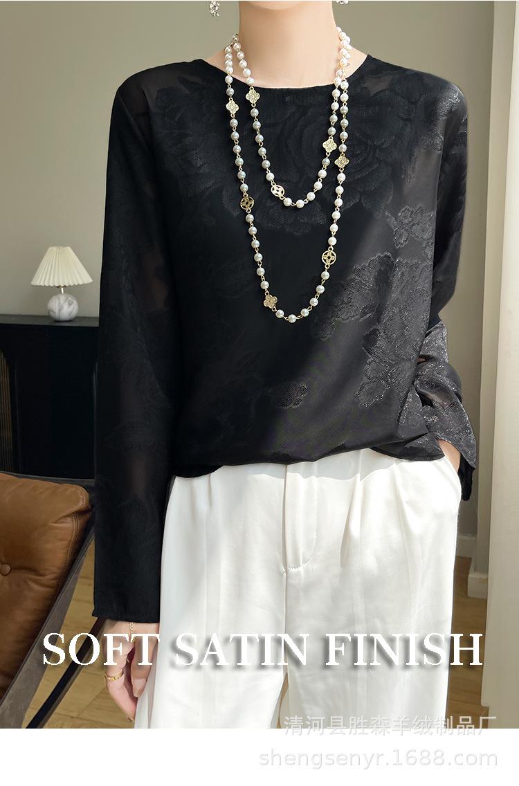 Transfronterizo 2025 Verano Nuevo Retro Estilo Chino Cuello Redondo Camisa Seda Hielo Elegante Jacquard Versátil Top de Mujer