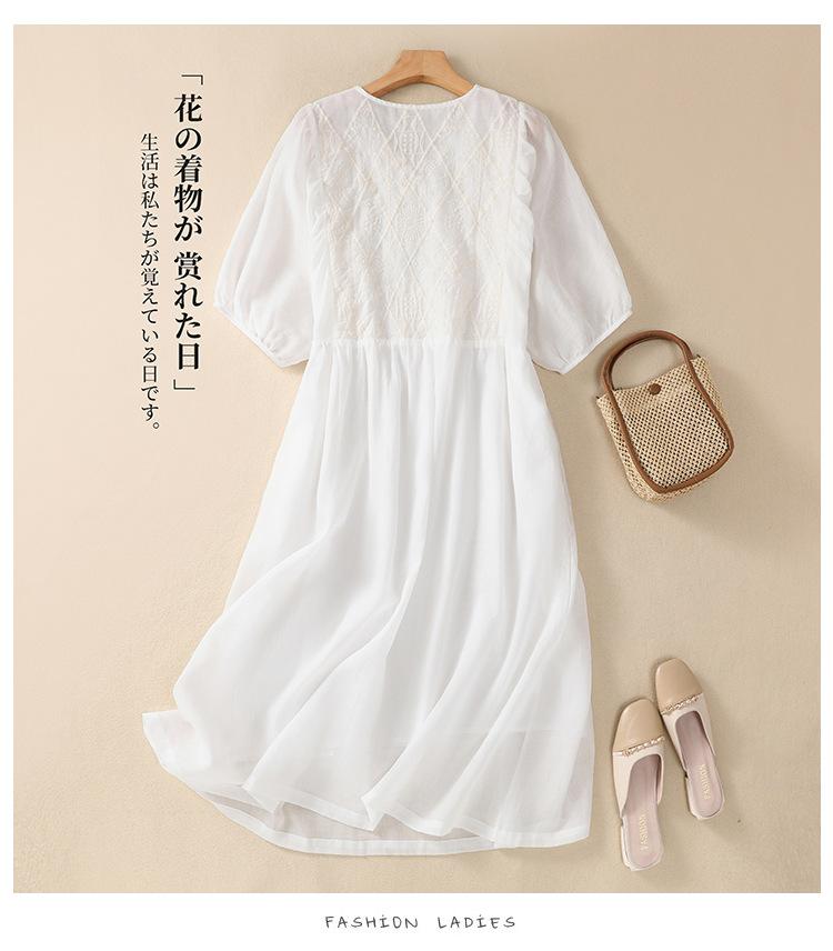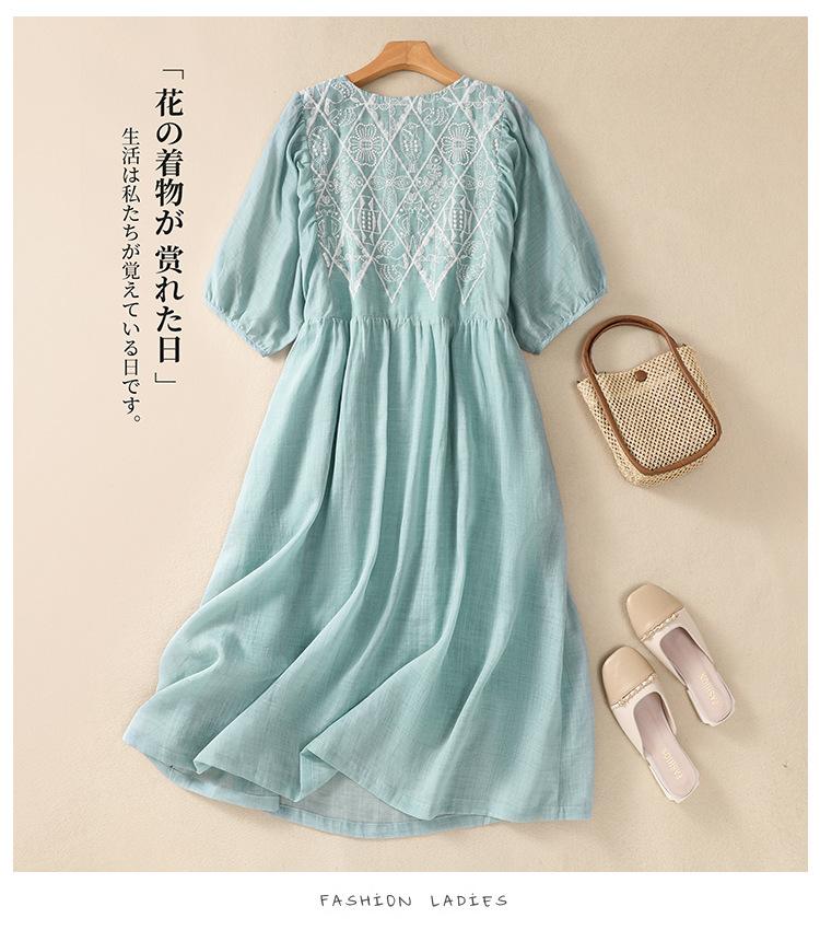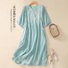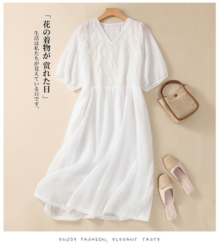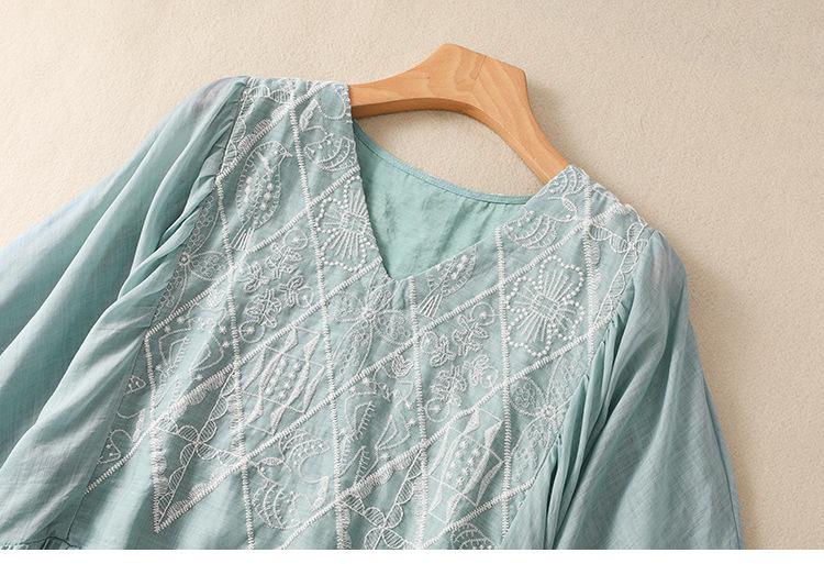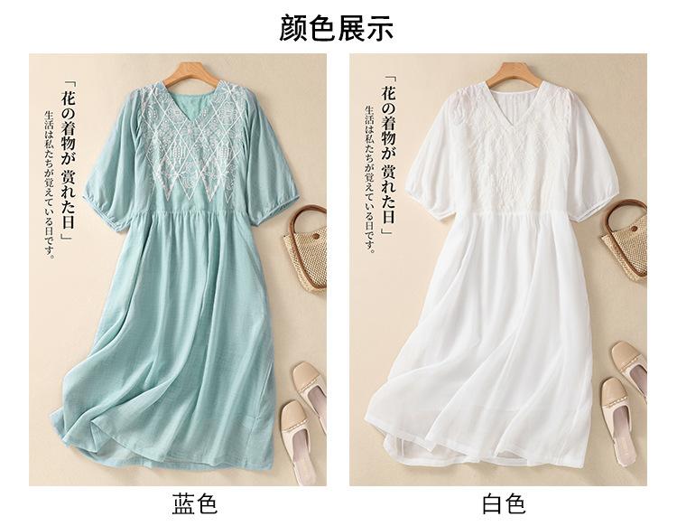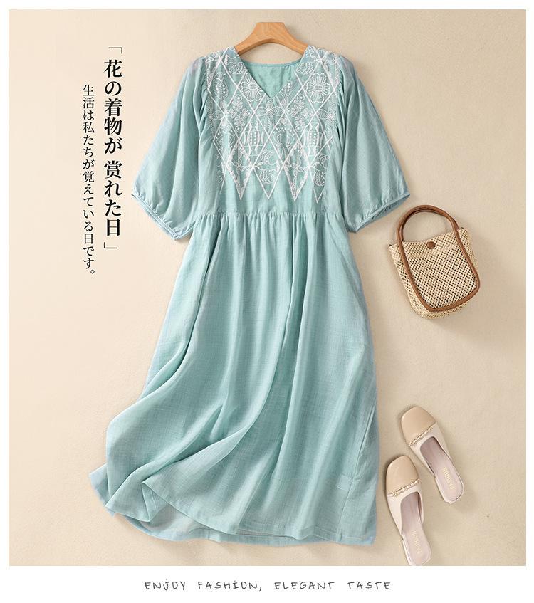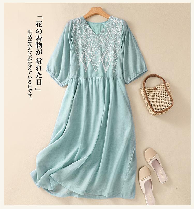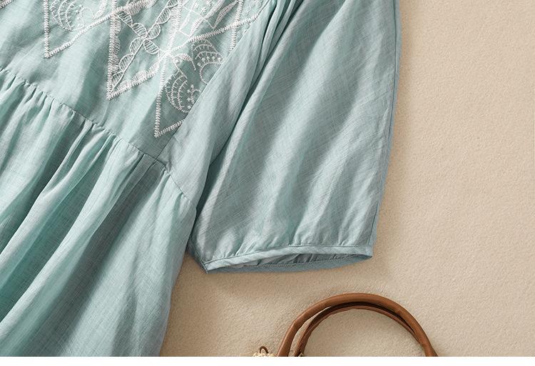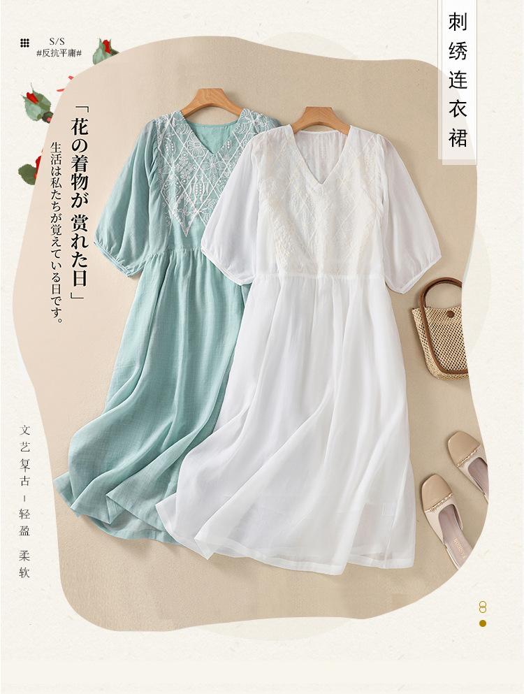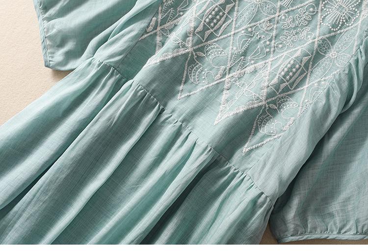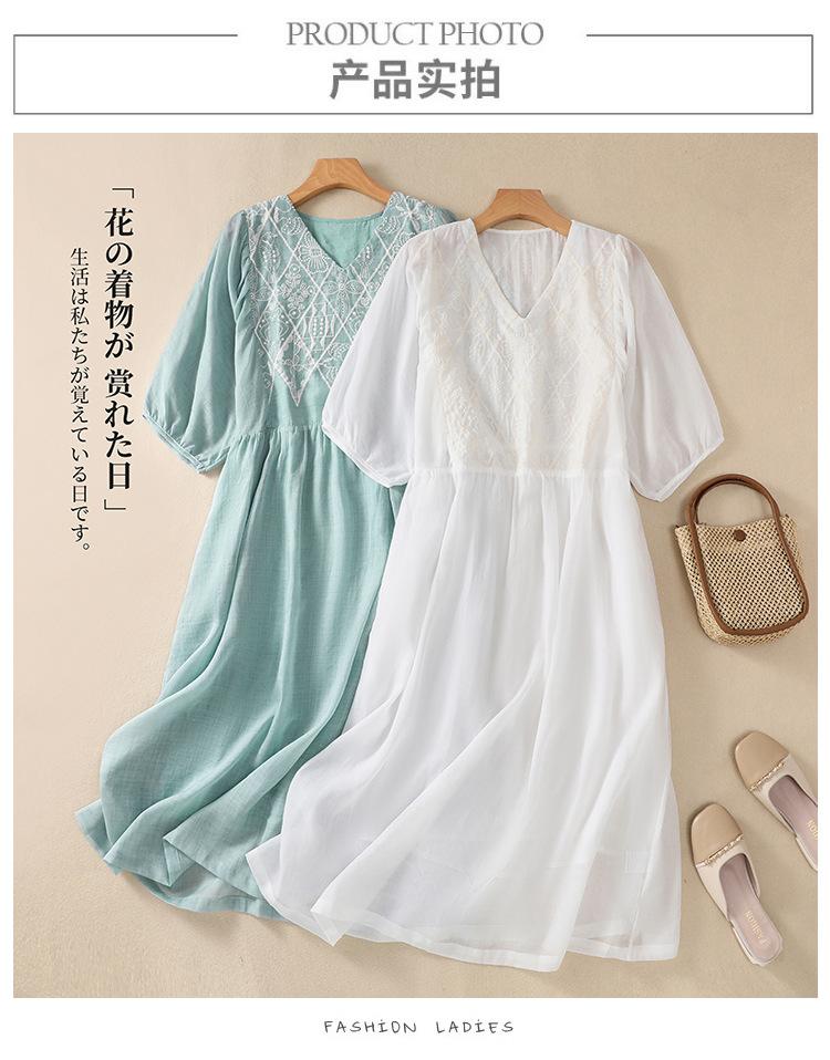 Vestido de verano 2024 con bordado artístico suelto y cuello en V de manga corta para mujer #6608