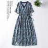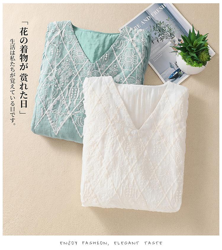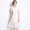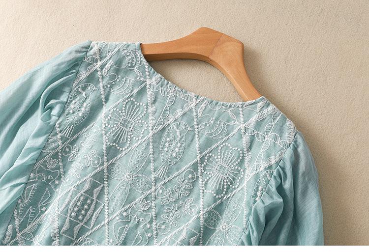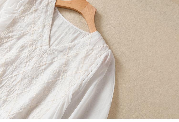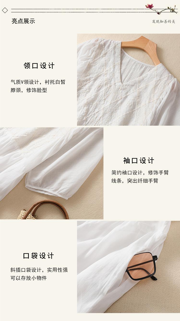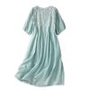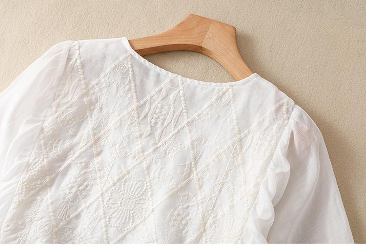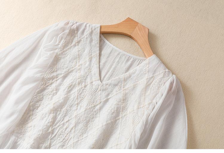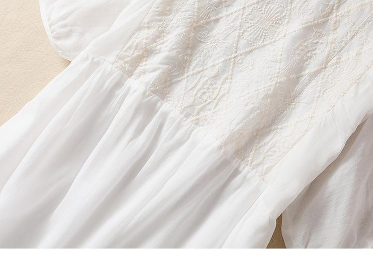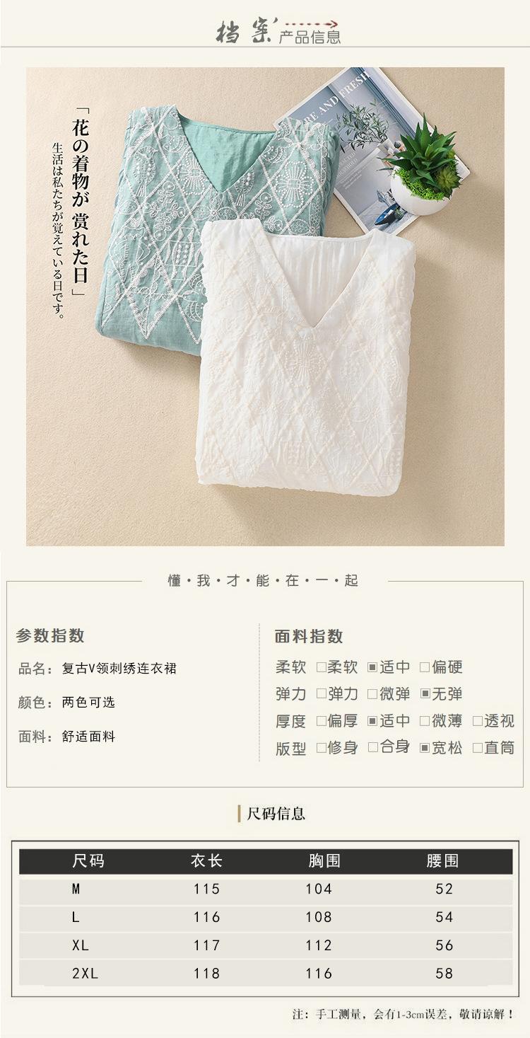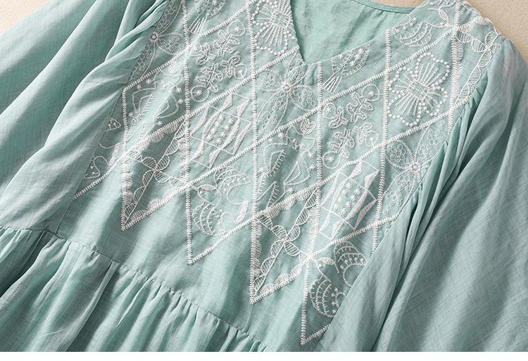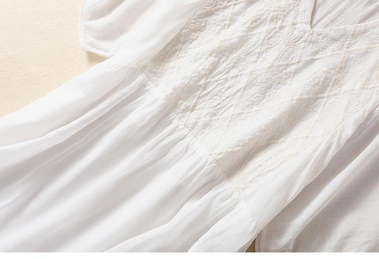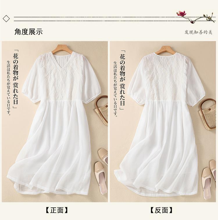 Vestido de verano 2024 con bordado artístico suelto y cuello en V de manga corta para mujer #6608