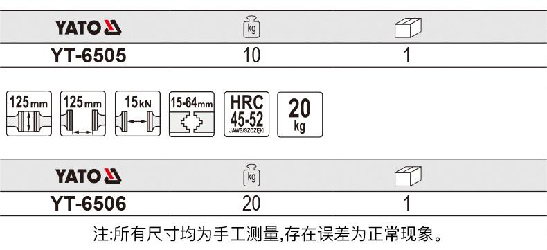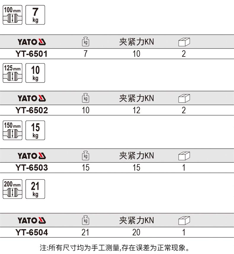 YT-6501 7KGx100mm, YT-6502 10KGx125mm, YT-6503 15KGx150mm, Yt-6505 multifunctional 10kgx100mm, Yt-6506 mult...