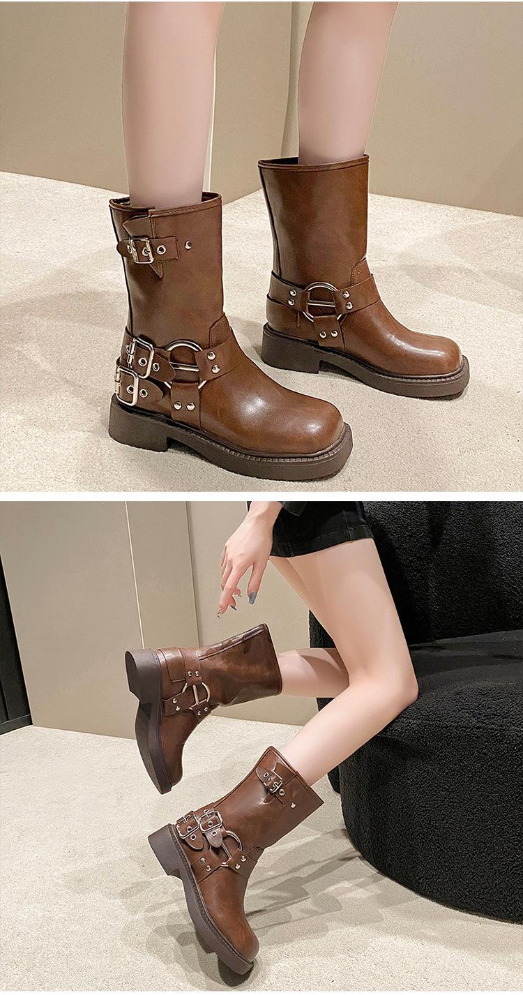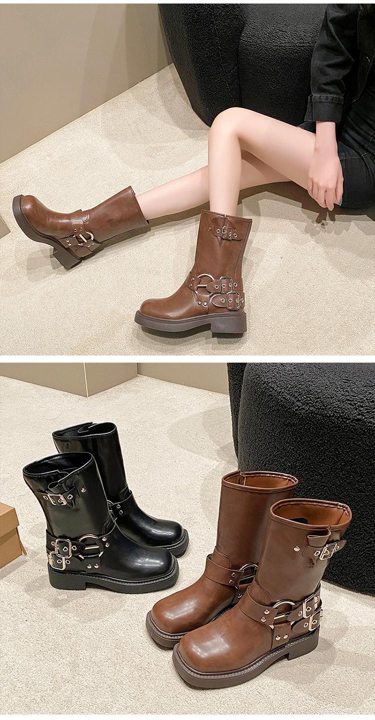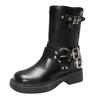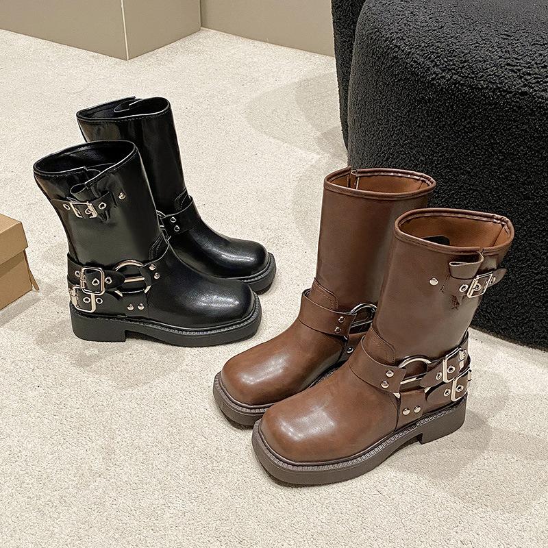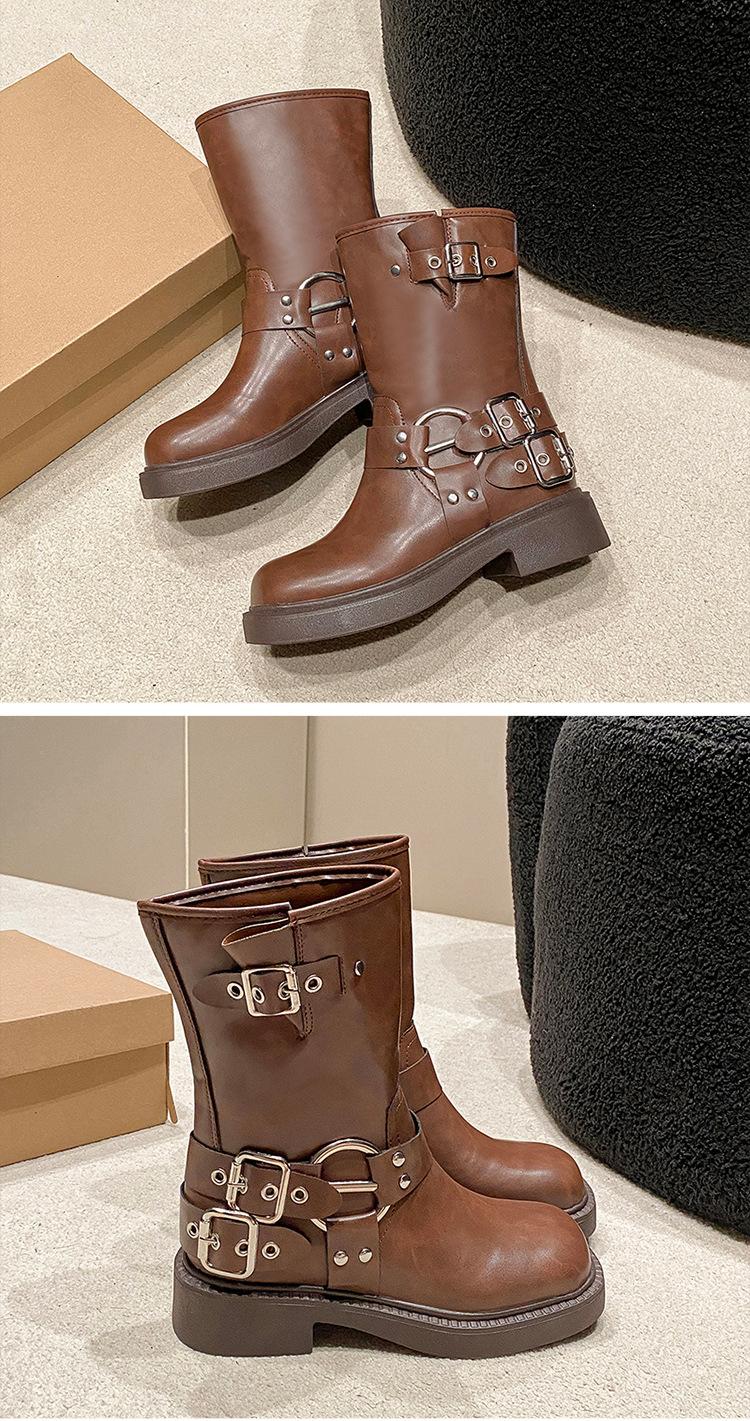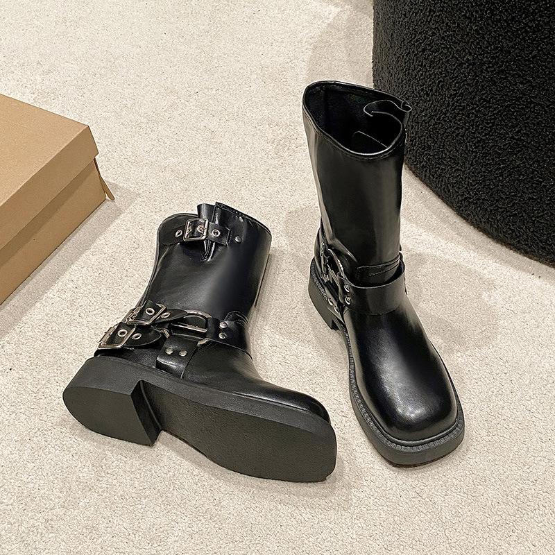 Tacón Grueso pero Botas Altas hasta la Rodilla Botas Altas de Caballero para Mujer 2024 Primavera y Otoño Nuevo Retro Punta Cuadrada Manga Botas Vaqueras Occidentales
