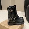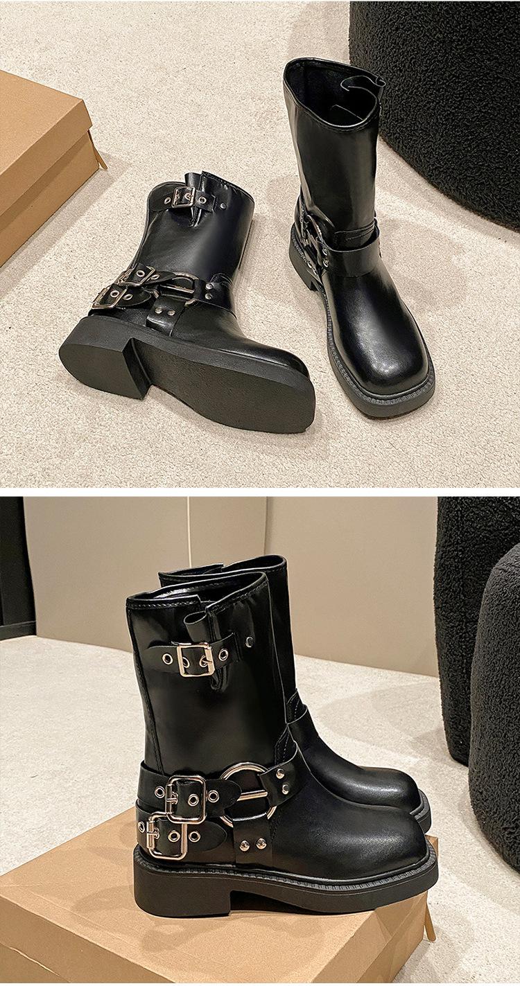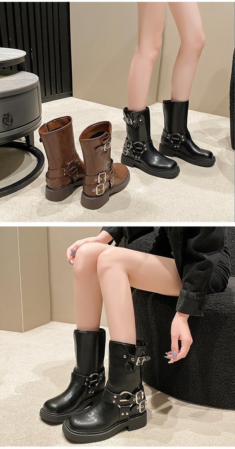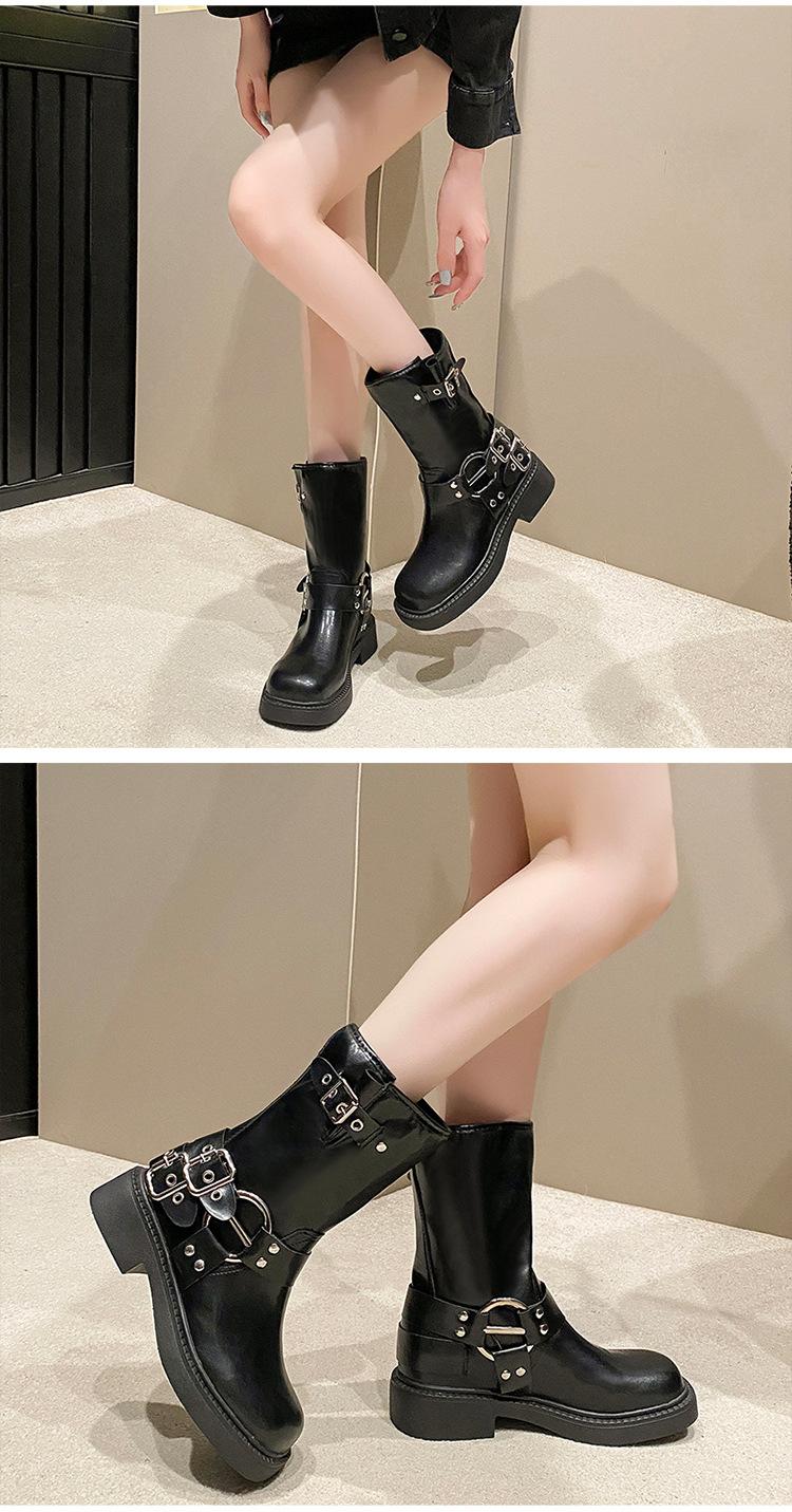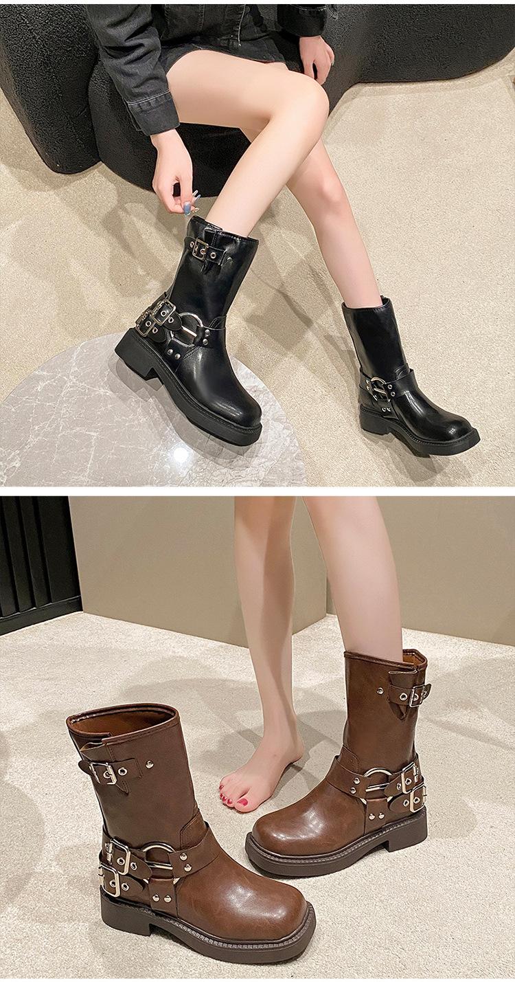 Tacón Grueso pero Botas Altas hasta la Rodilla Botas Altas de Caballero para Mujer 2024 Primavera y Otoño Nuevo Retro Punta Cuadrada Manga Botas Vaqueras Occidentales