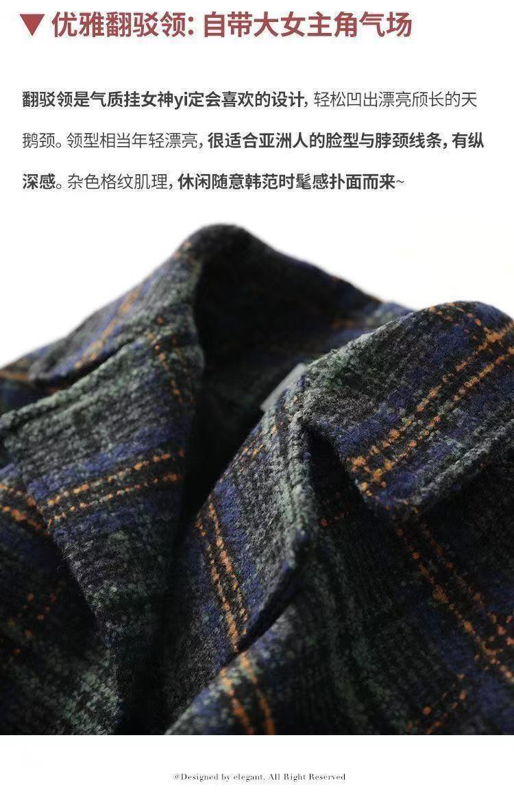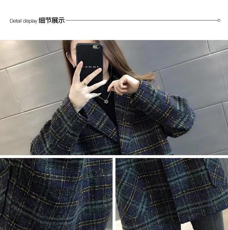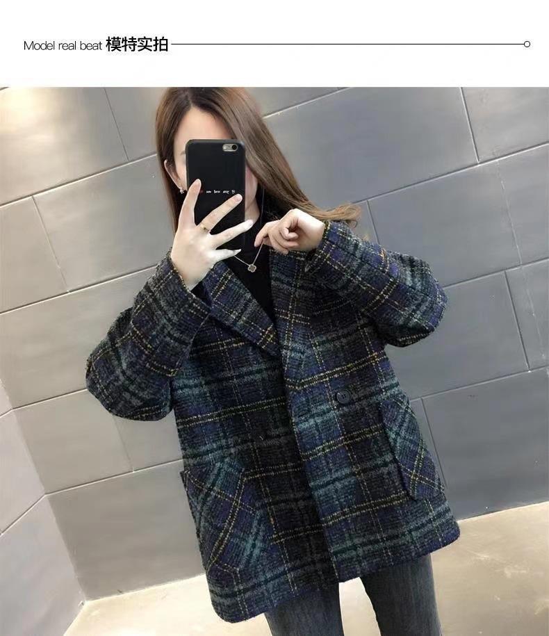 [570] Abrigo de lana de imitación fina de estilo francés para mujer, traje a cuadros de estilo coreano de primavera y otoño, top corto holgado