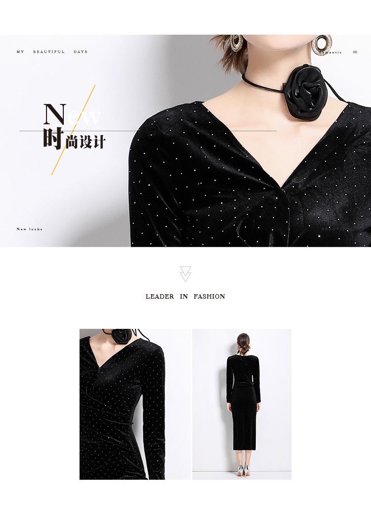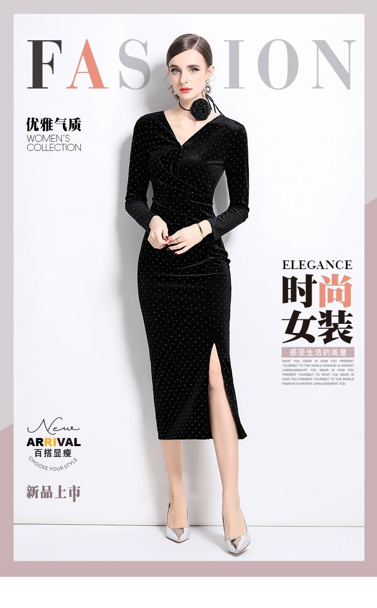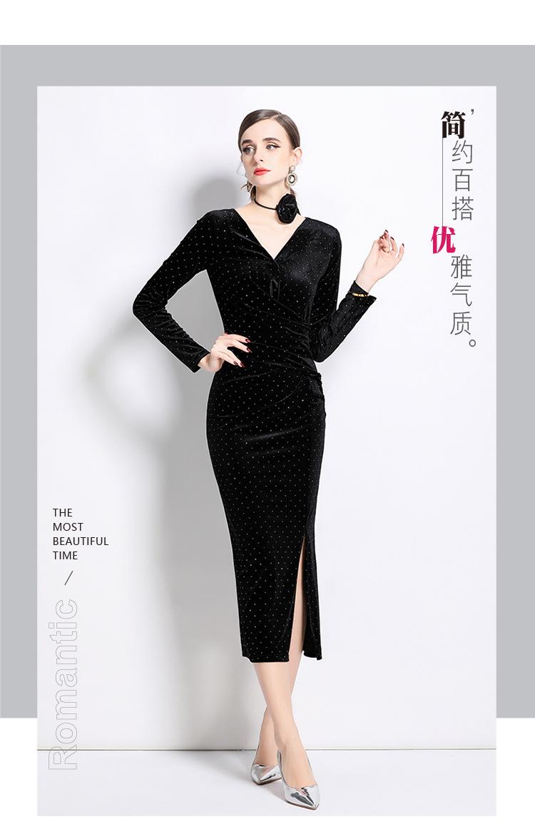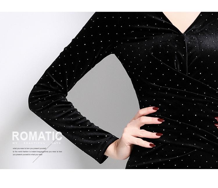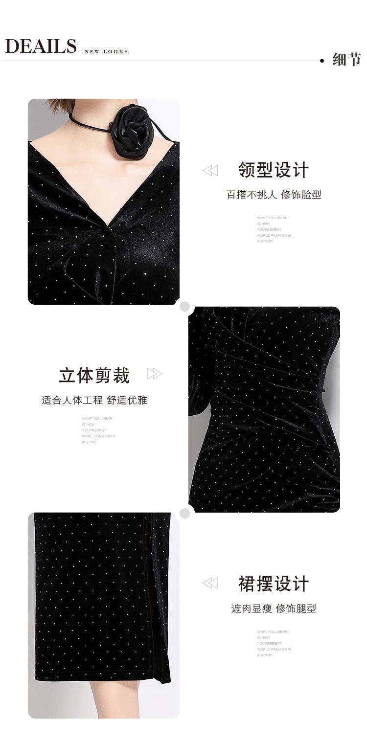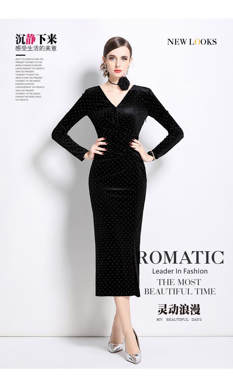 Vestido ajustado de terciopelo con escote en V francés y manga larga, estilo Hepburn, primavera y verano 2025