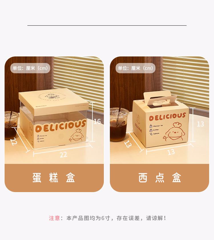 Cake box [6inch /single layer] 22*22*15cm, Cake box [6inch /double layer] 22*22*24cm, Cake box [6inch / three ...