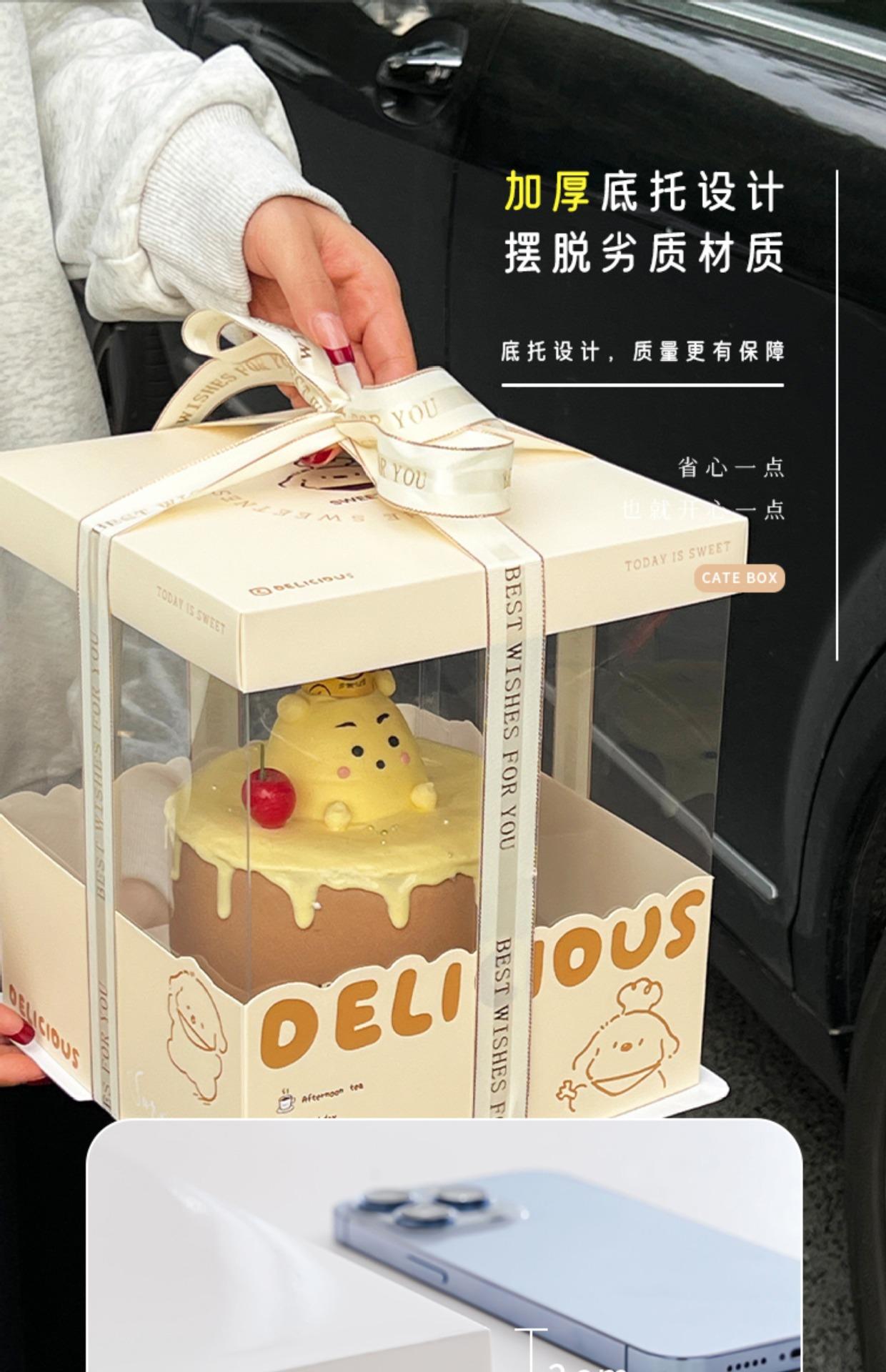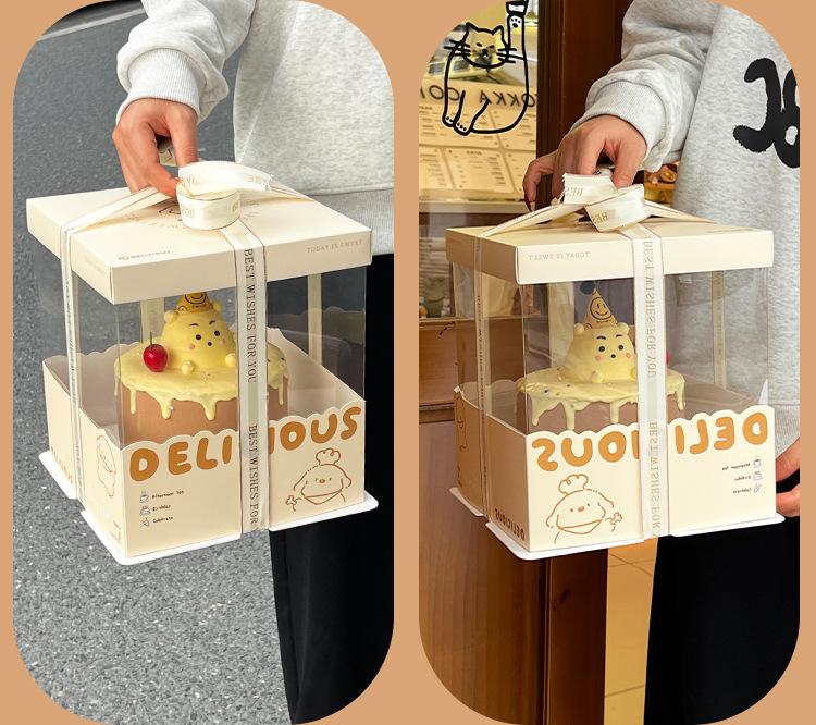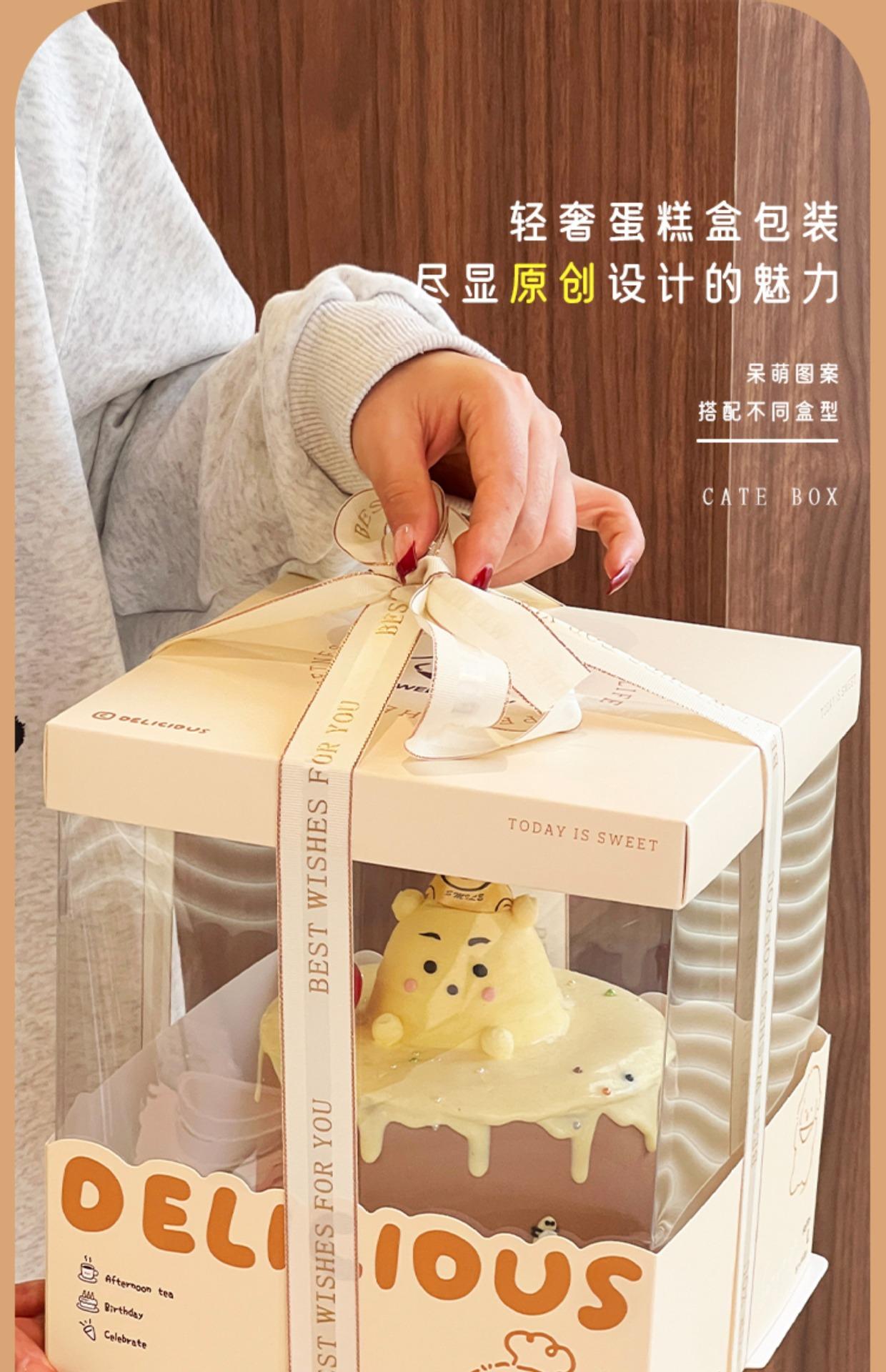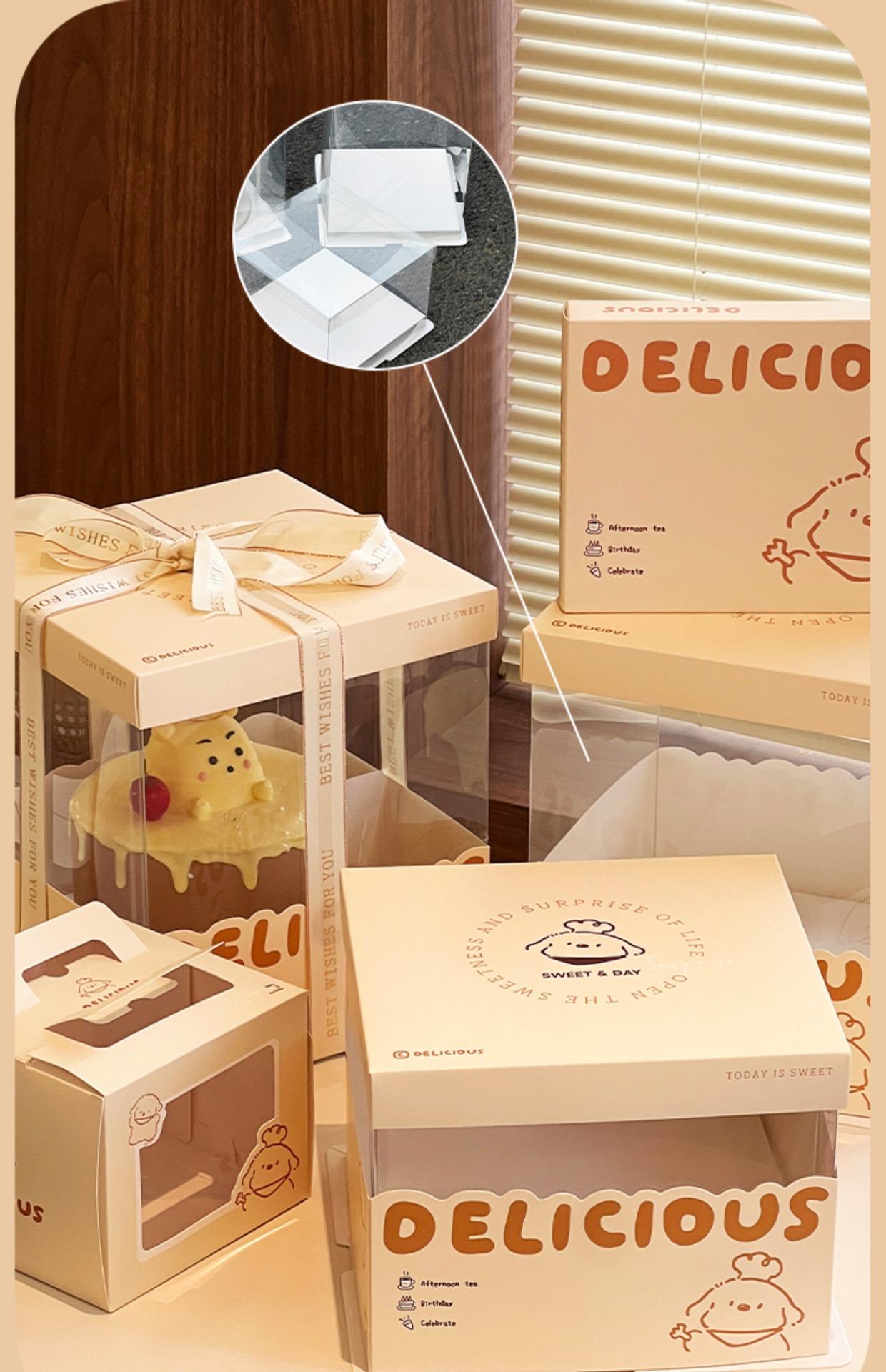 Caja de embalaje transparente para pastel de cumpleaños 4 4 pulgadas 6 6 pulgadas 8 8 pulgadas 10 pulgadas una capa doble capa alto lindo niños