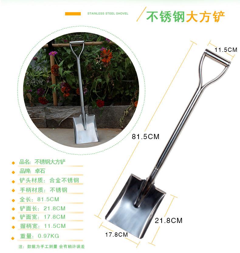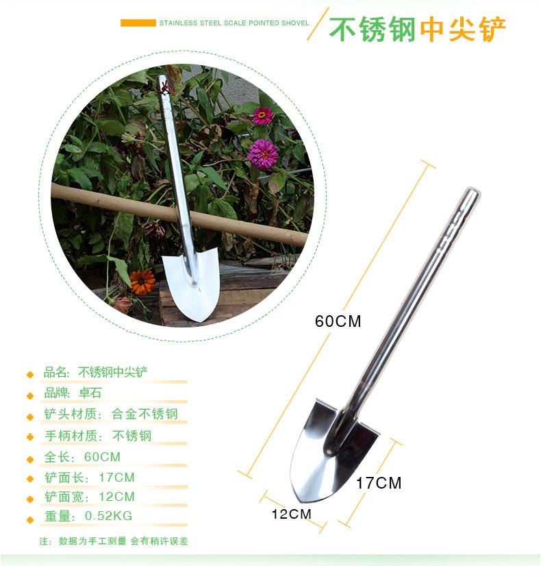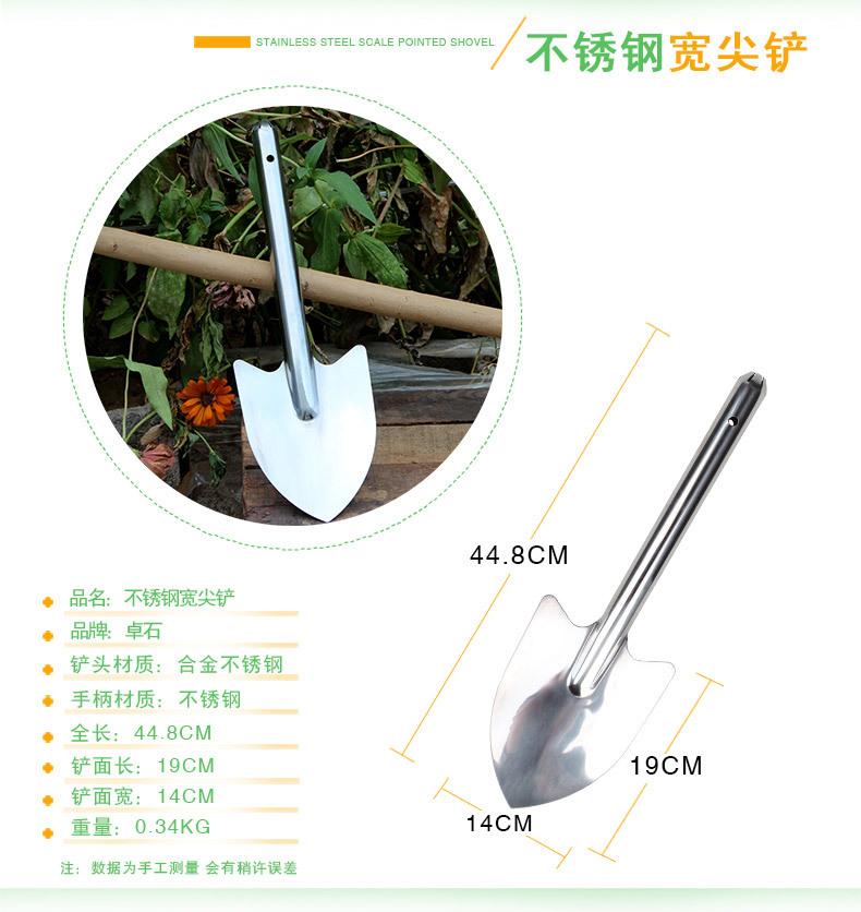 Pala de acero inoxidable Pala pequeña Afloja la tierra y atrapa el mar Herramientas agrícolas Jardinería Flor Excavación al aire libre Pala para vegetales