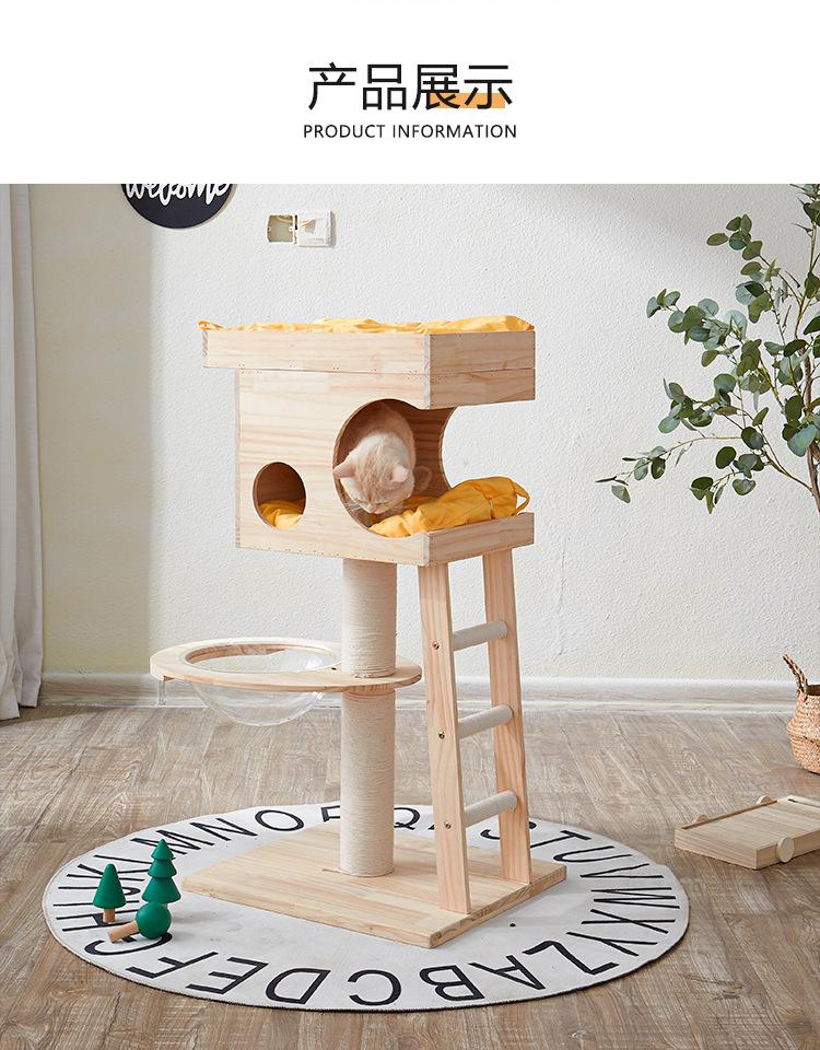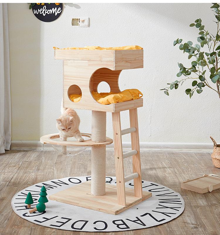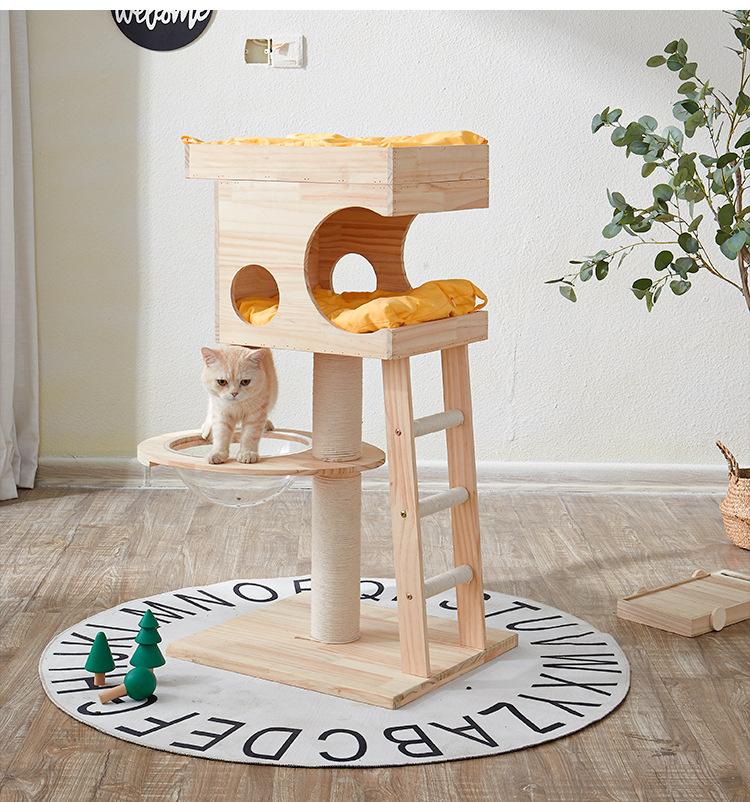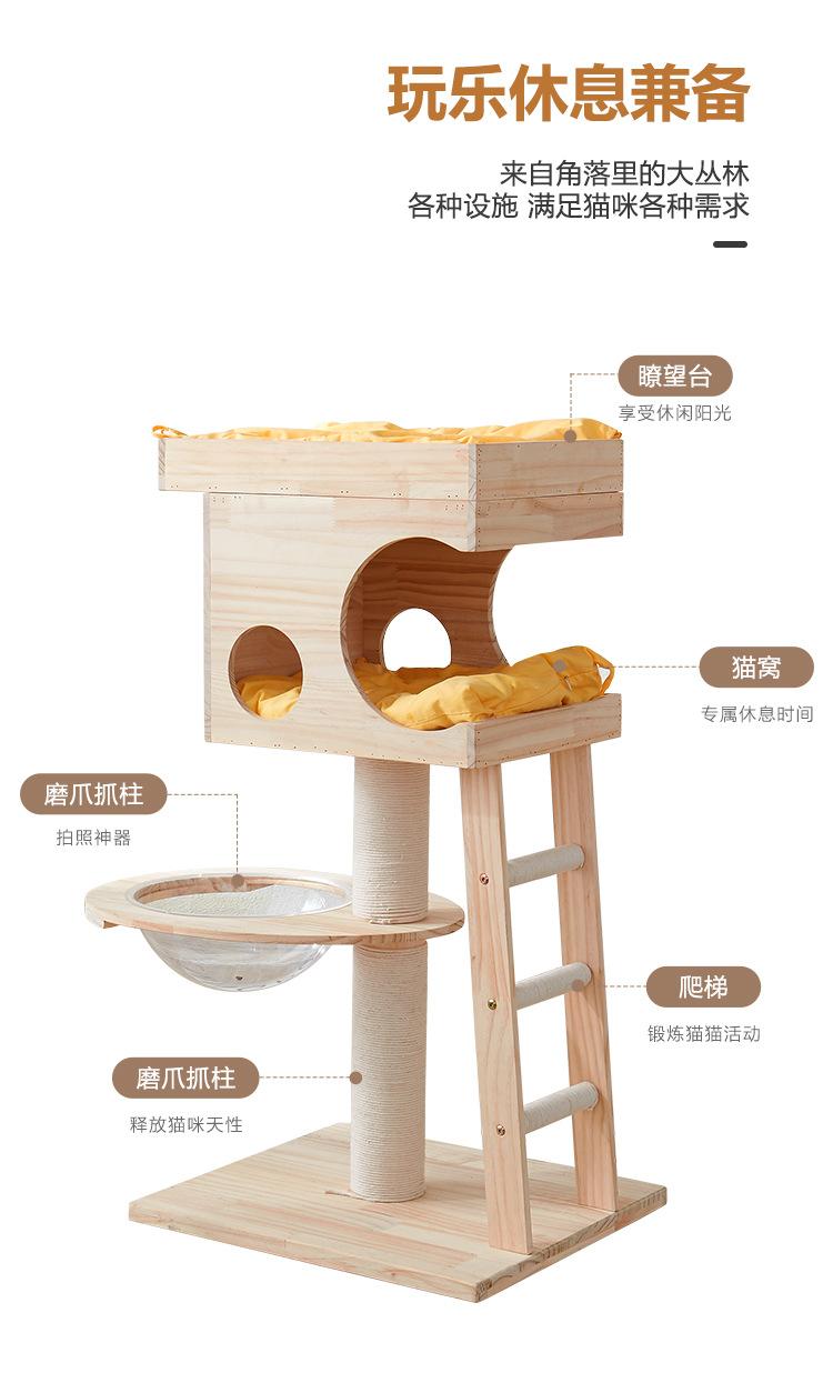 Marco de escalada para gatos, columna de escalada de lujo para gatos, nido de madera para gatos, tablero rascador para gatos para las cuatro estaciones, casa para gatos, árbol para gatos integrado