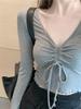 Estilo Europeo y Americano 2024 Primavera y Otoño Nueva Ropa de Mujer Deseo Puro Spice Girls Ajustado Ombligo Moda Urbana Cuello Redondo Manga Larga Camiseta Mujer