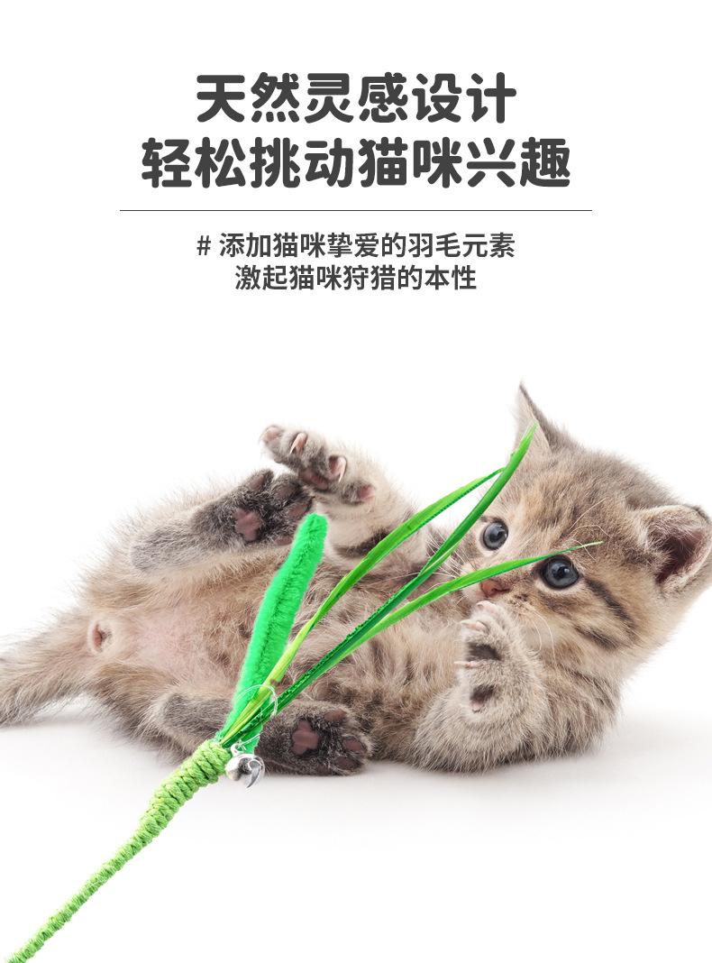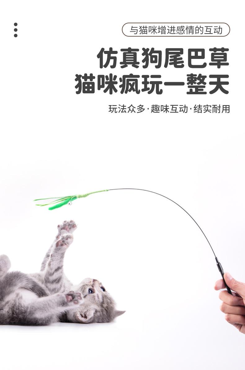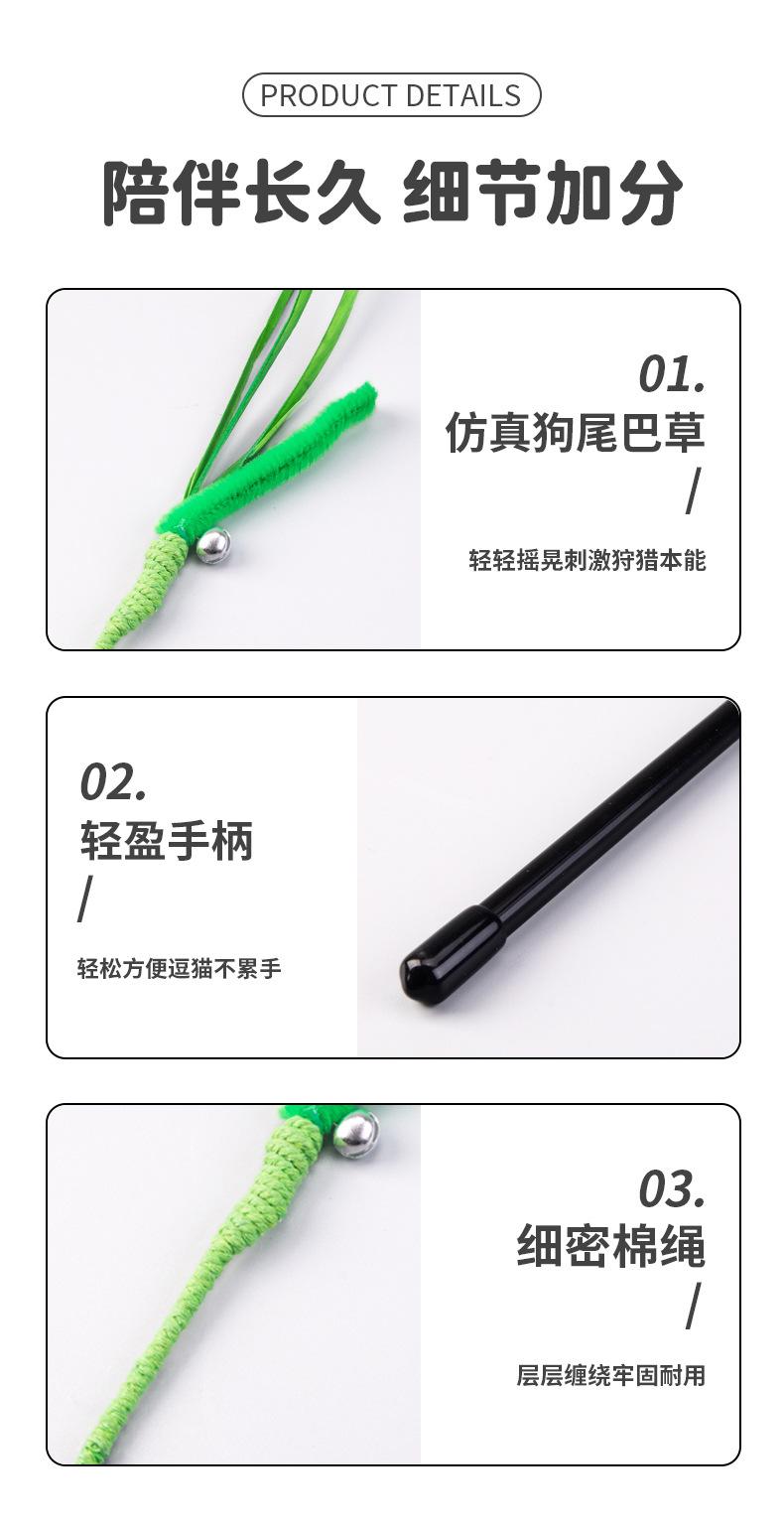 Juguete para gatos con cola de perro, hierba, juguete para gatos con varilla larga, resistente a mordeduras, juguete de mano para gatos con autodescarga, juguete para gatos con gatitos.