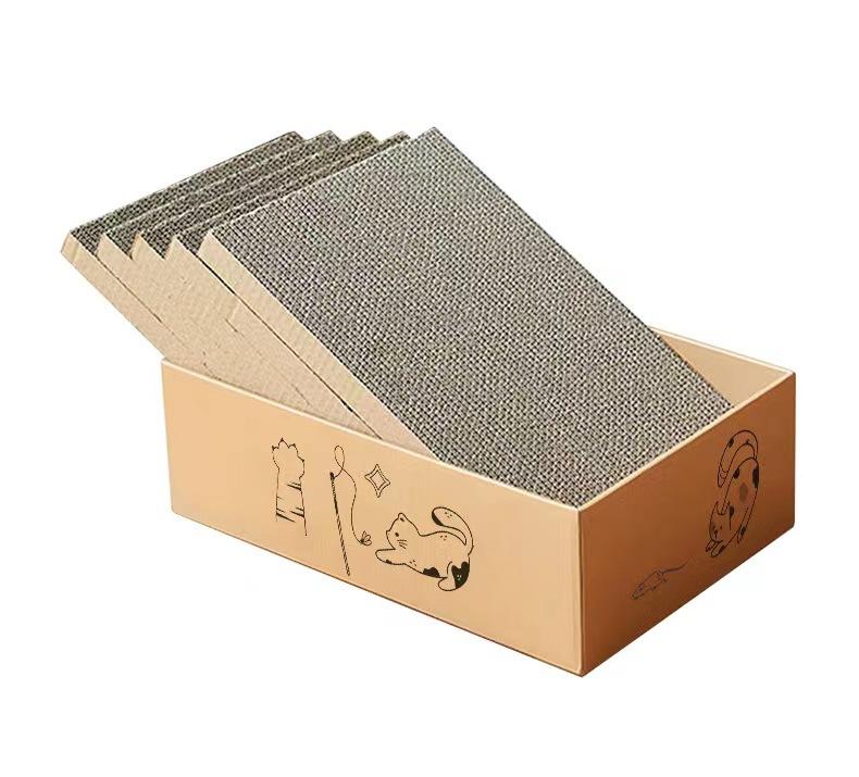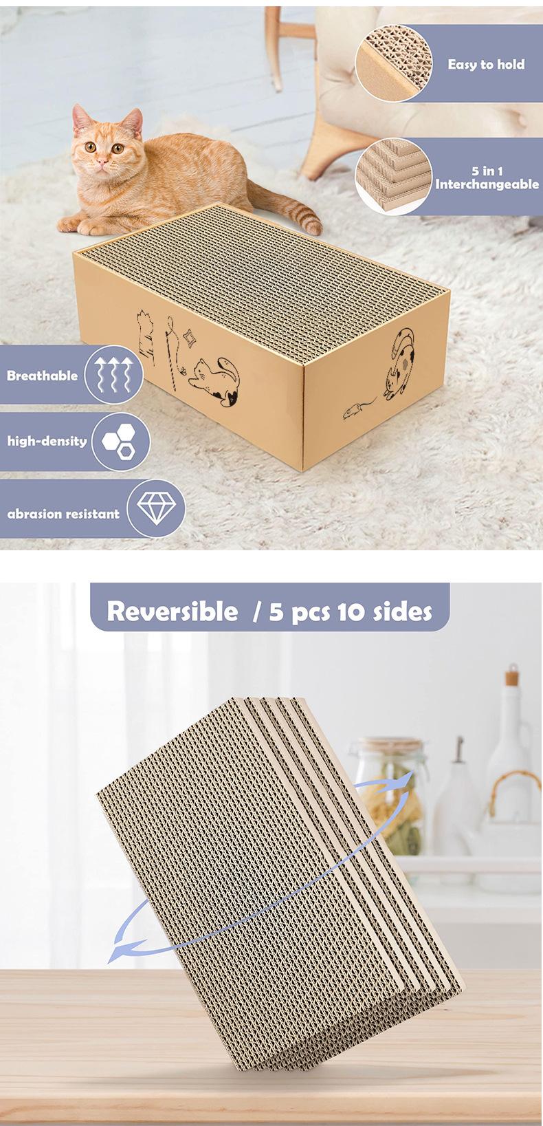 Caja de Cartón Transfronteriza de Venta Caliente, Caja Nido Rectangular para Gatos, Cartón Corrugado con Cinco Tableros para Rascar, Suministros para Mascotas