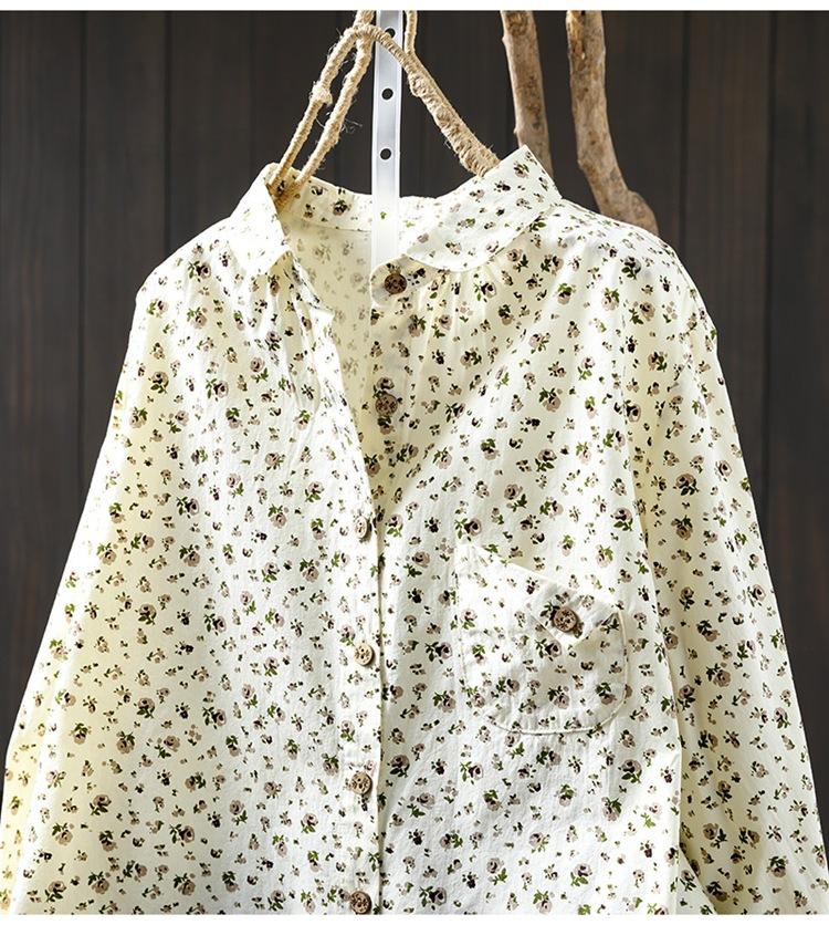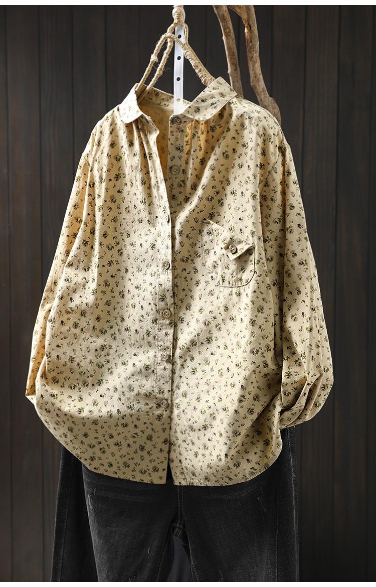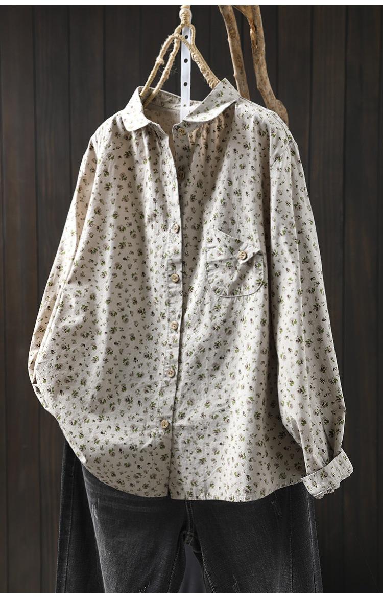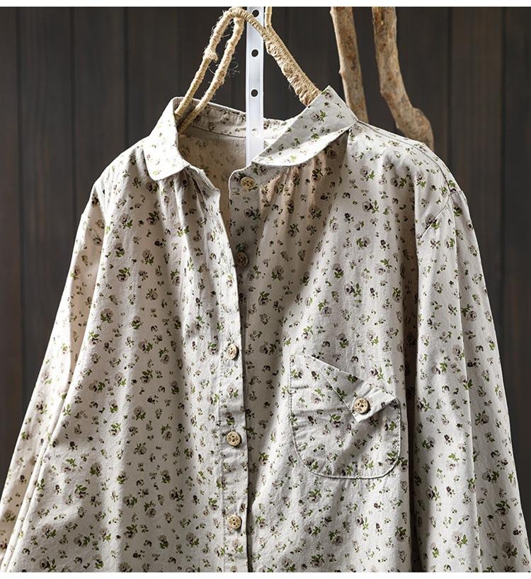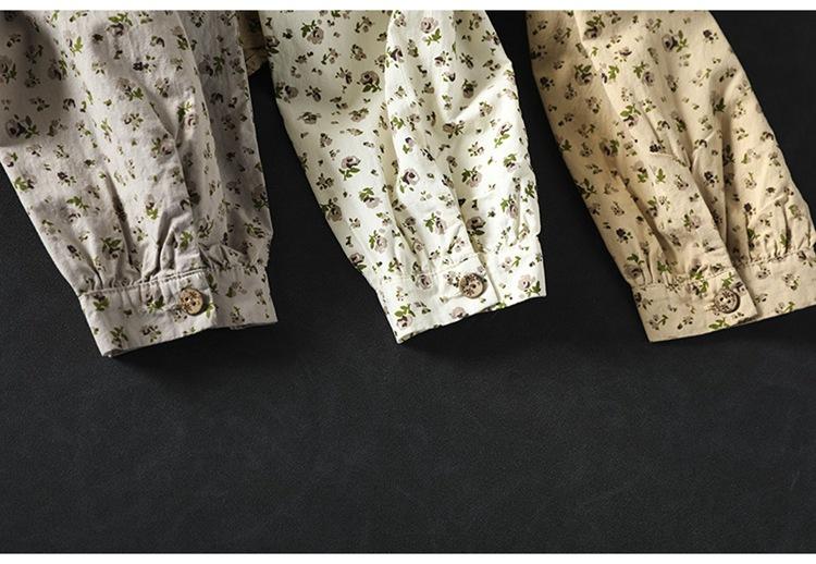 Primavera Nueva Llegada Estilo Literario Camisa Floral para Mujer Holgada Adelgazante Casual Reductor de Edad Camisa Base Apilada Top