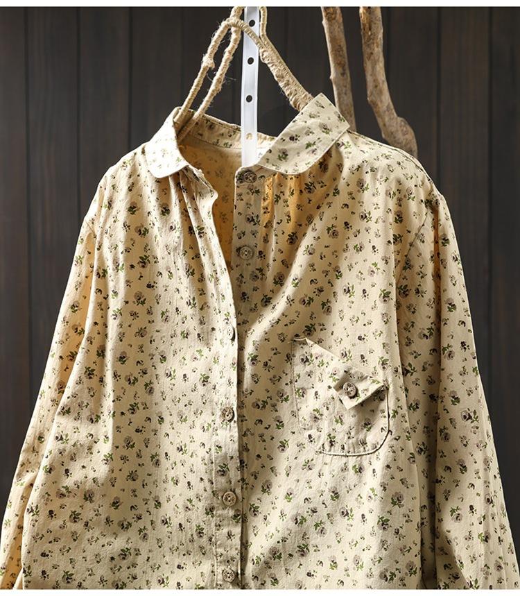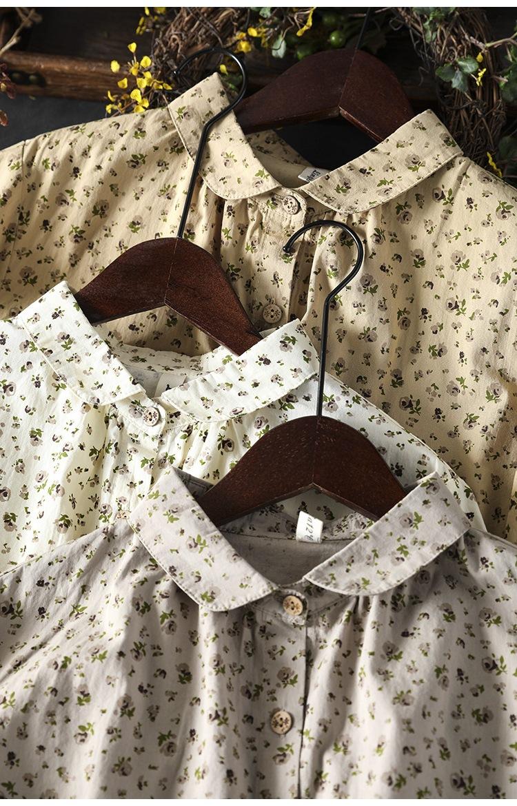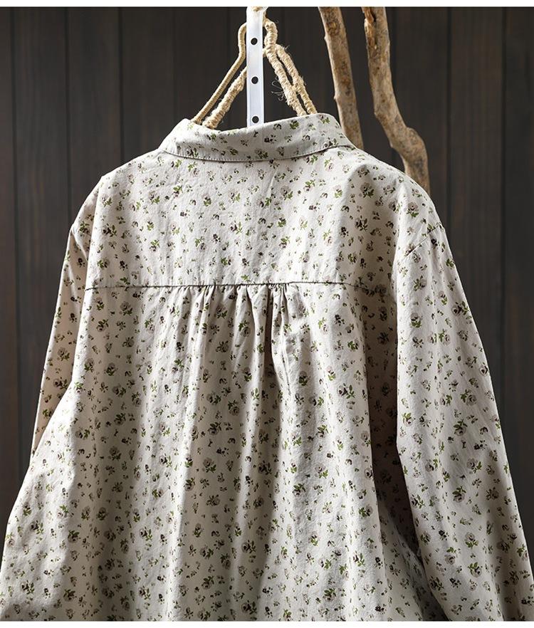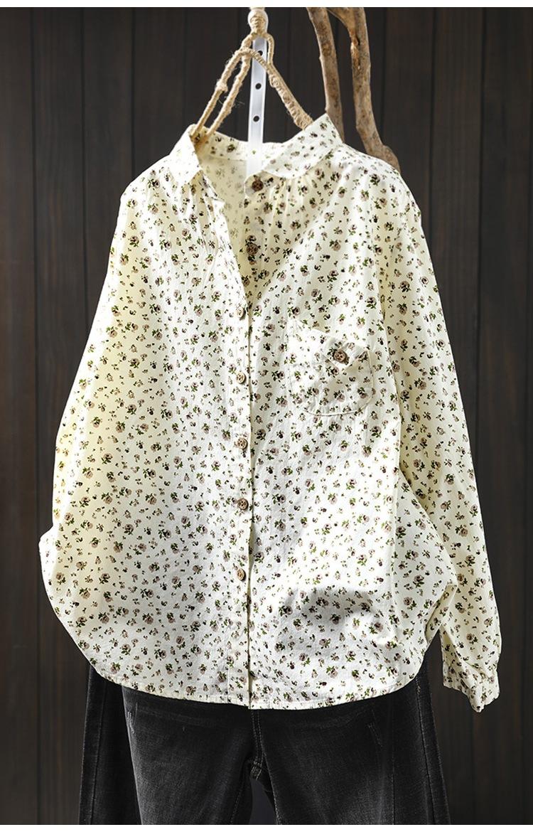 Primavera Nueva Llegada Estilo Literario Camisa Floral para Mujer Holgada Adelgazante Casual Reductor de Edad Camisa Base Apilada Top