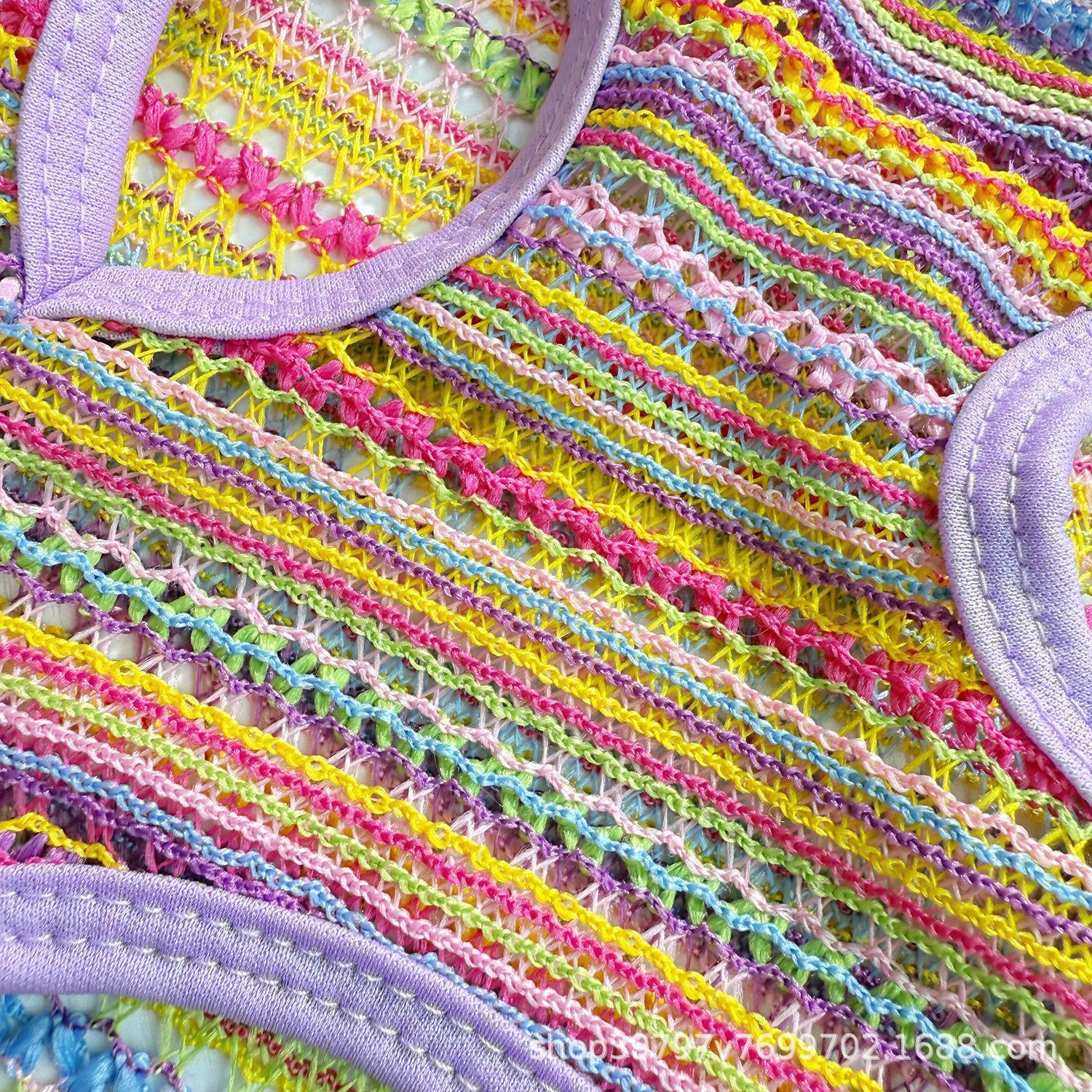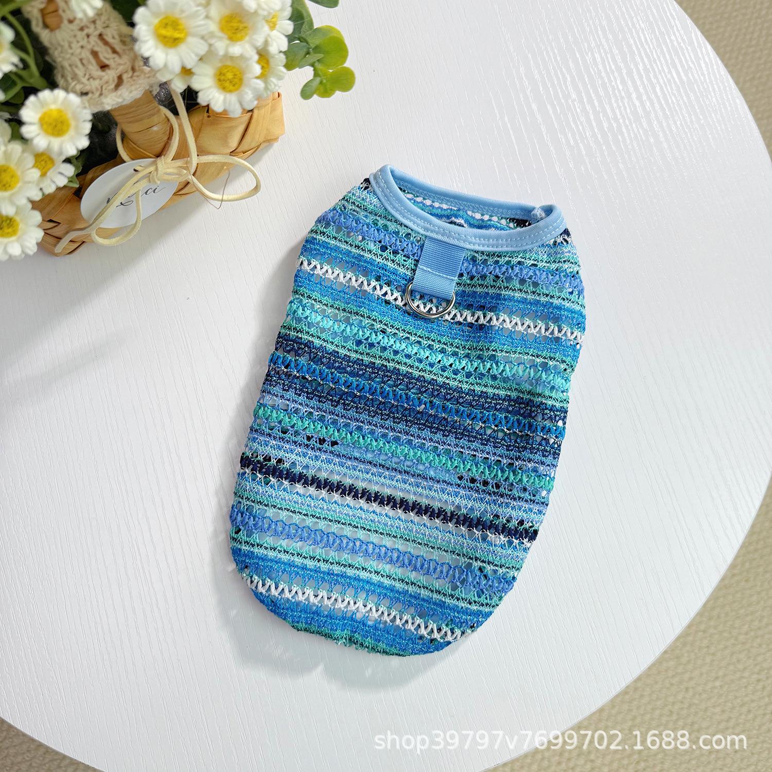 Chaleco multicolor arcoíris calado verano transpirable delgado ropa para perro mascota gato anti-pelo oso