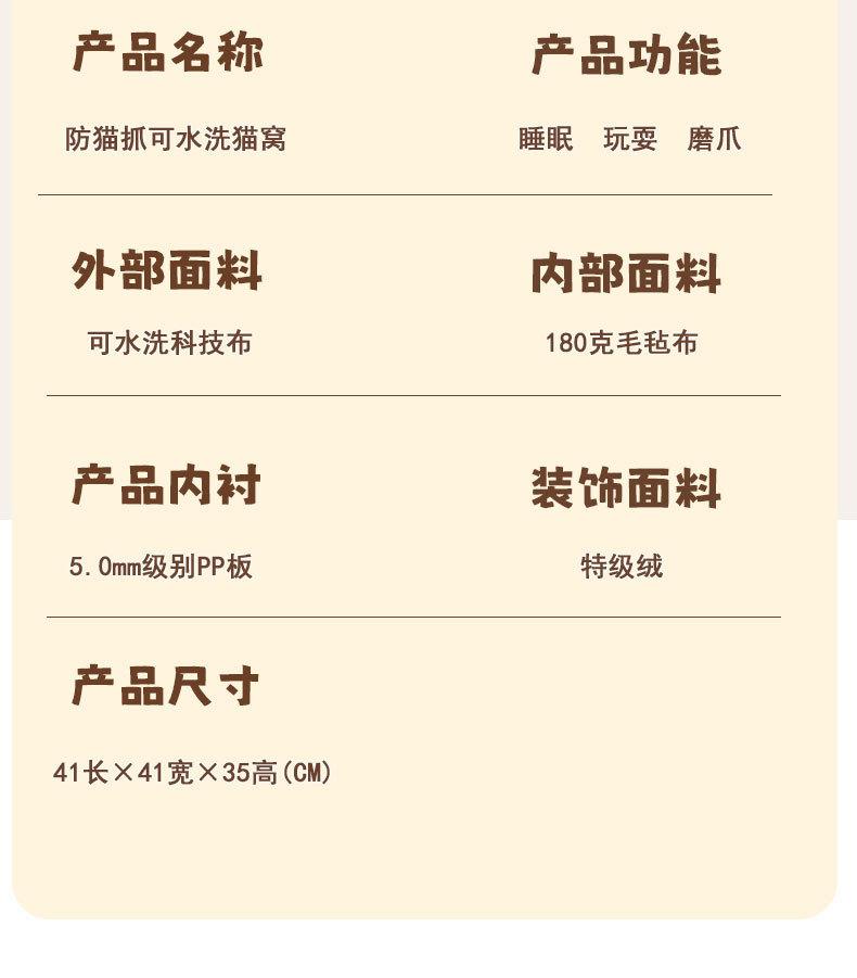 41 long x 41 wide x35 high [brown/washable cat scratch prevention]]