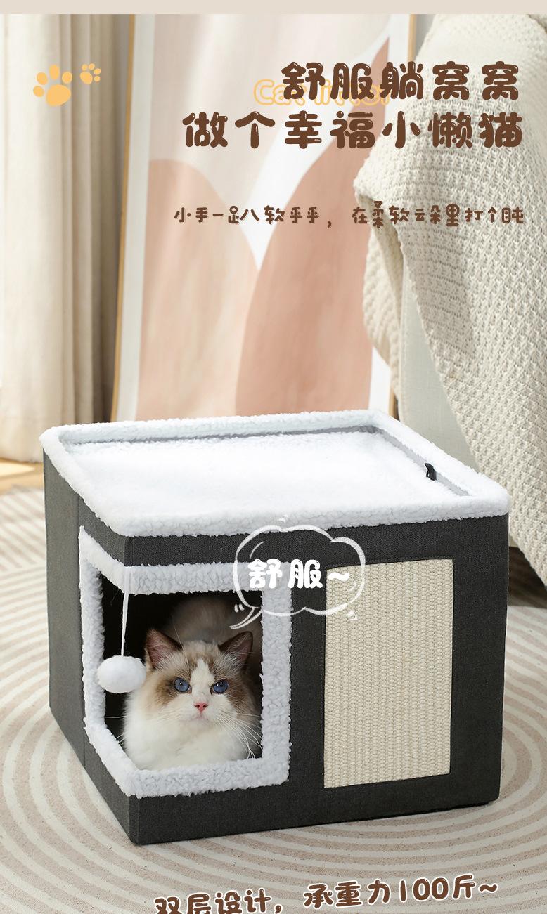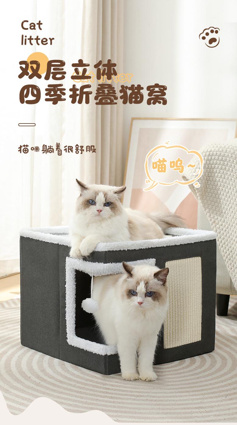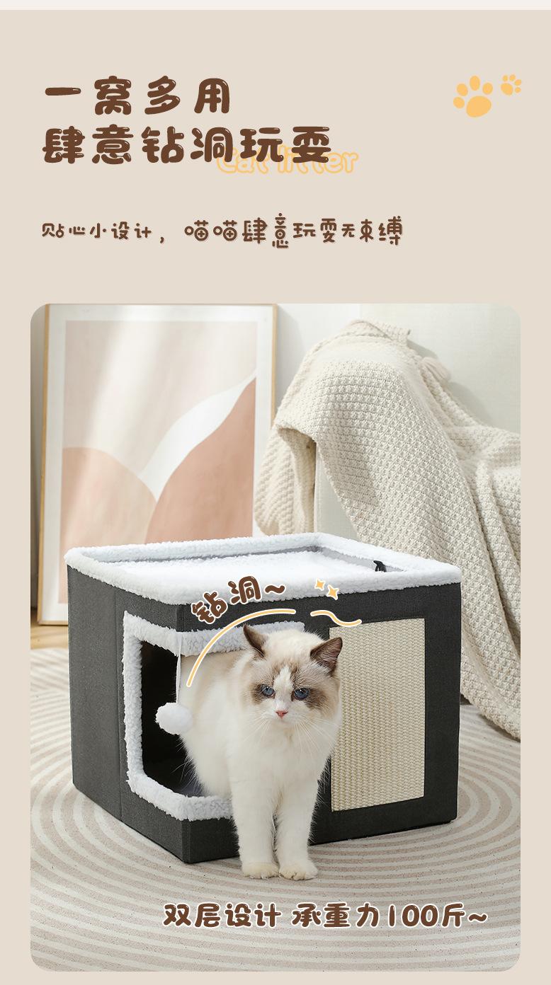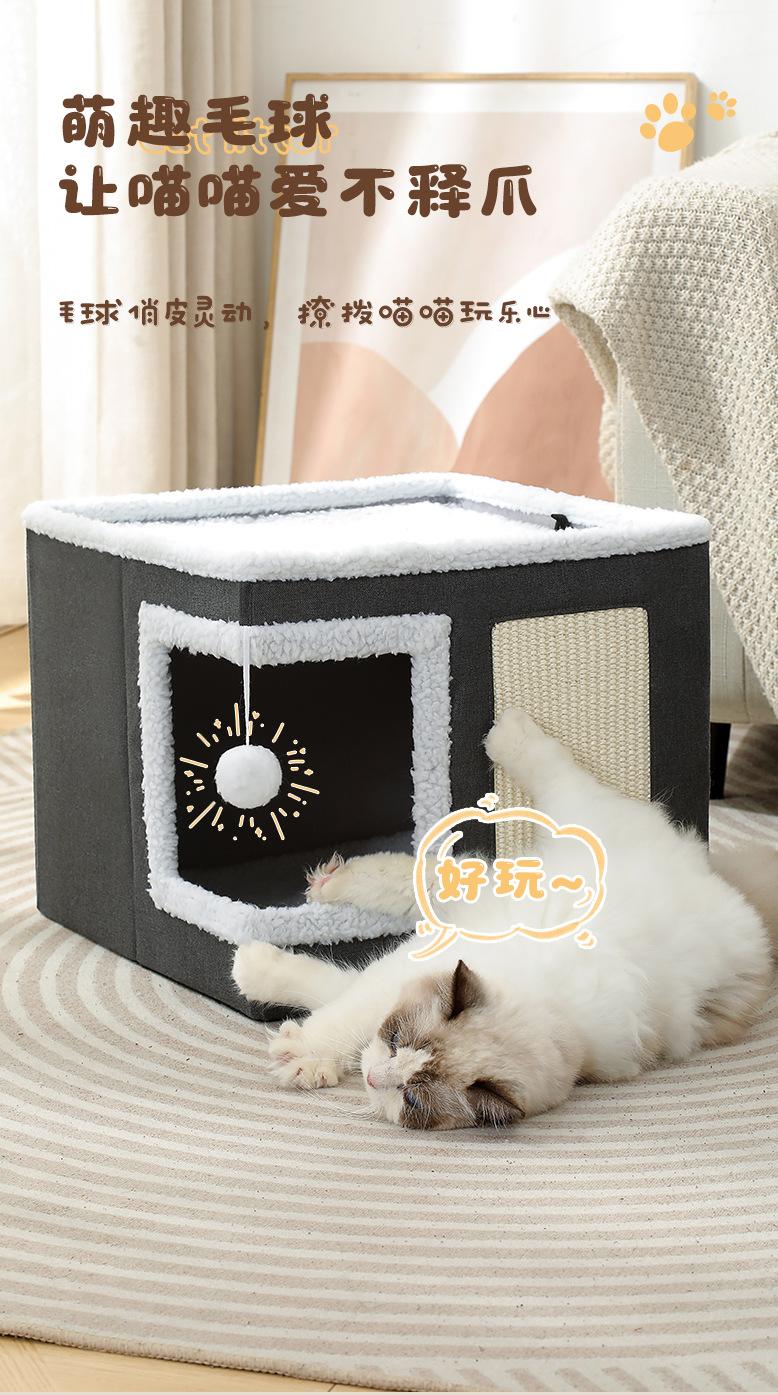 Nido Popular para Gato Mascota de Amazon Interior Plegable Cuadrado con Rascador Nido para Gato para Todas las Estaciones Fabricante Venta al por Mayor
