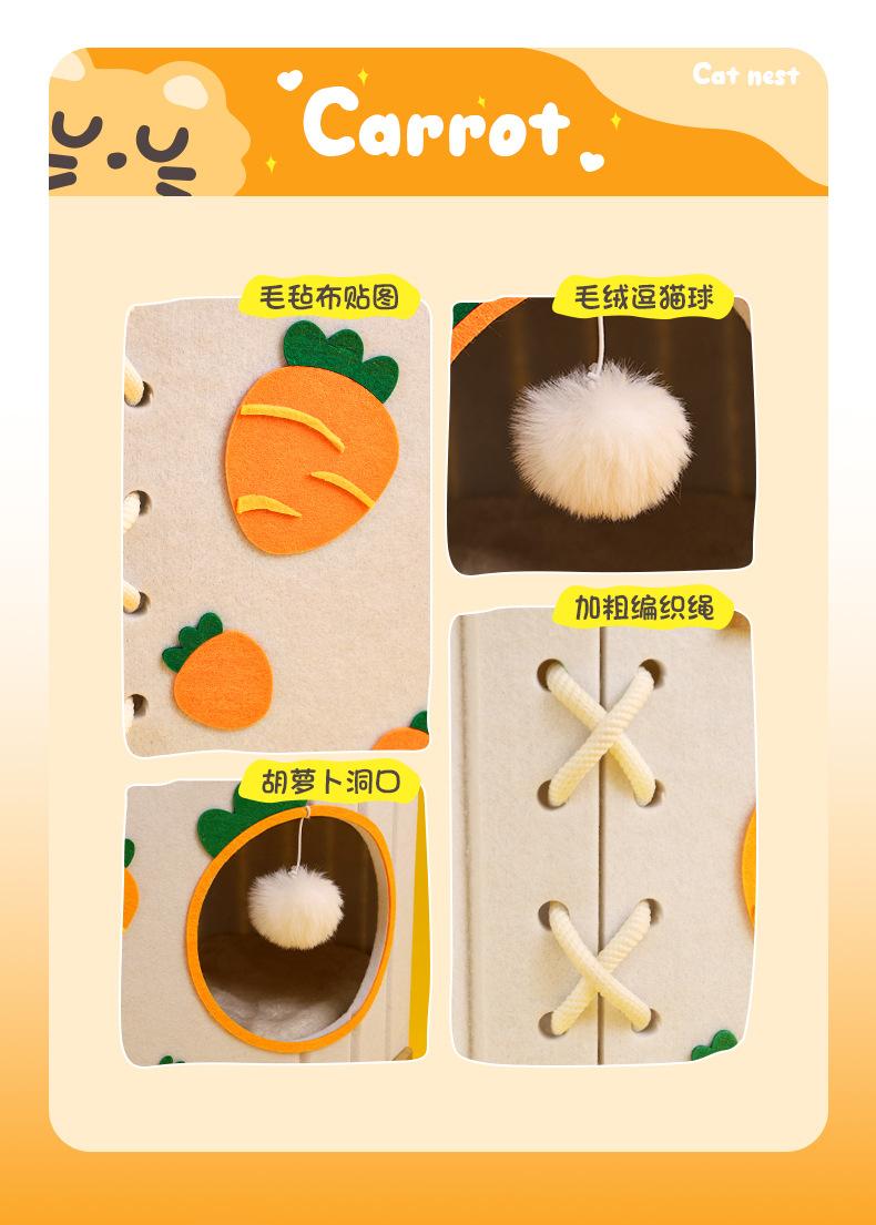 Miau Cama para Gato Hada Zanahoria Rascador para Gato Cama para Gato Integrada Espacio Grande Semicerrada Universal para Cuatro Estaciones Casa para Gato