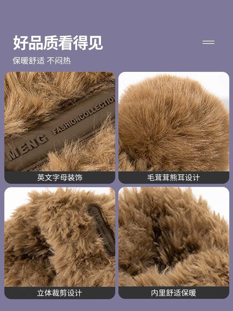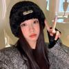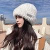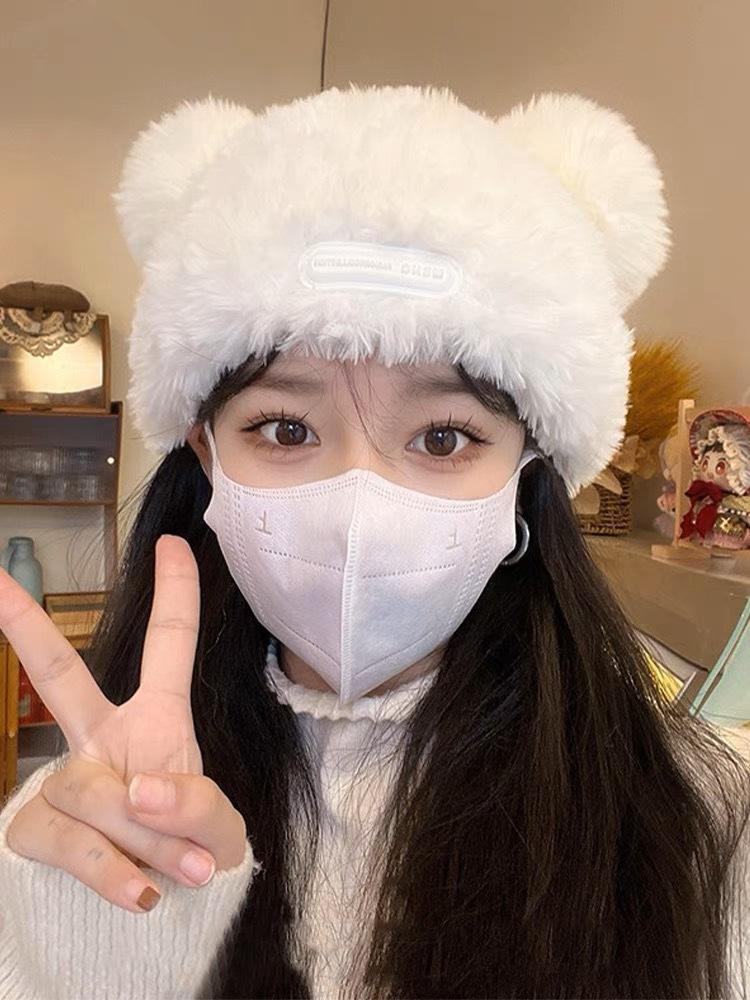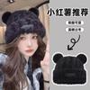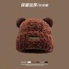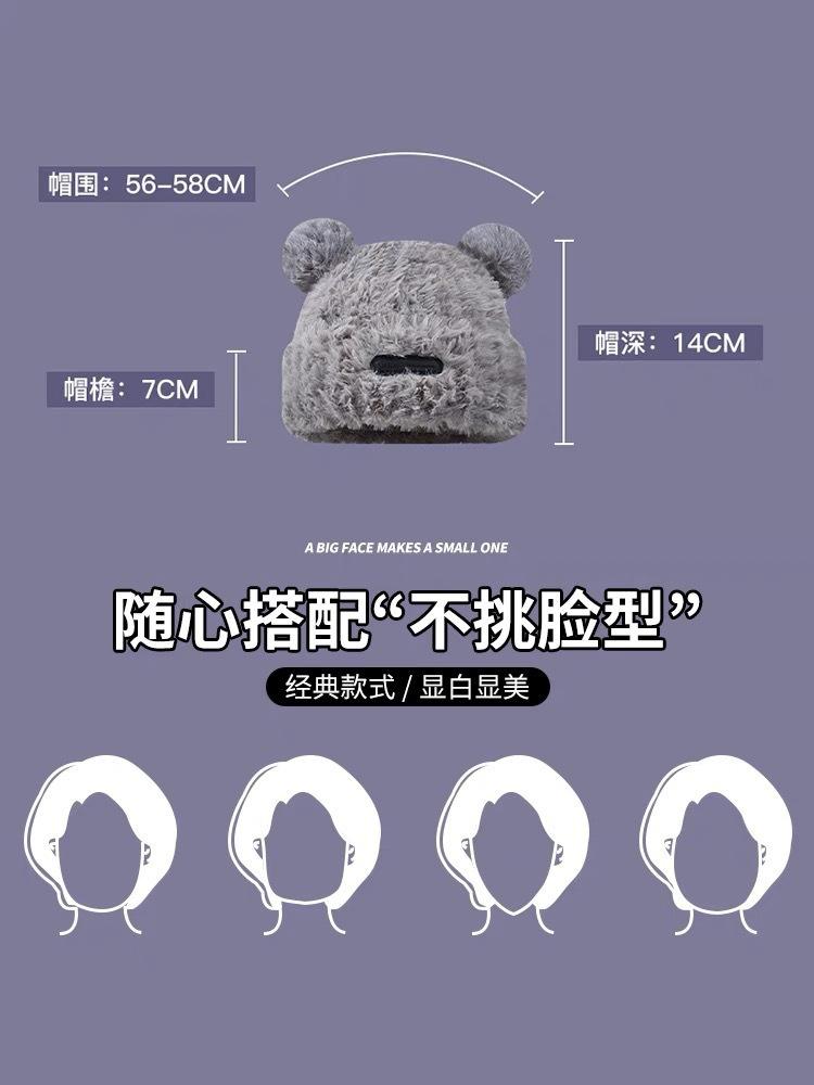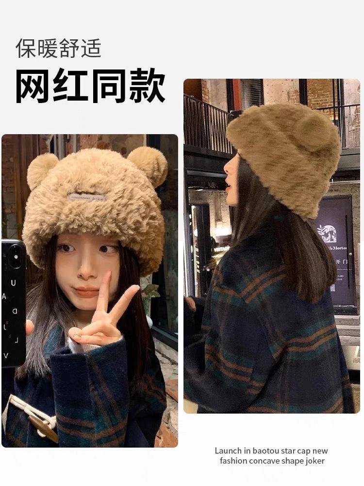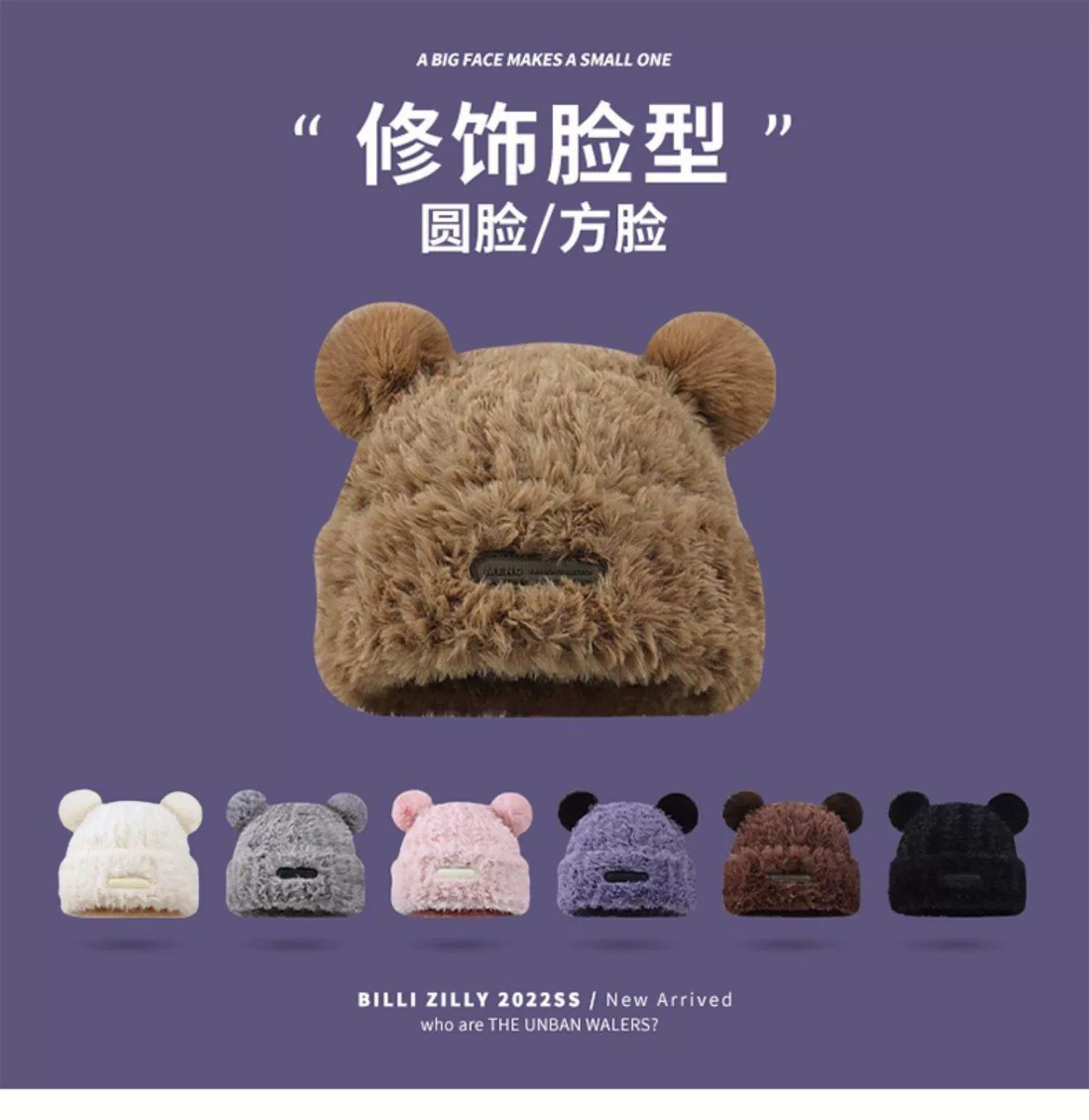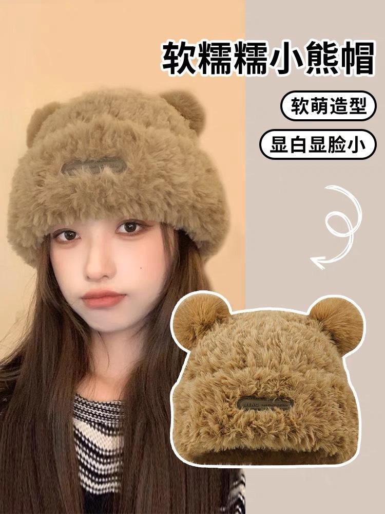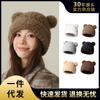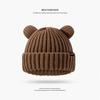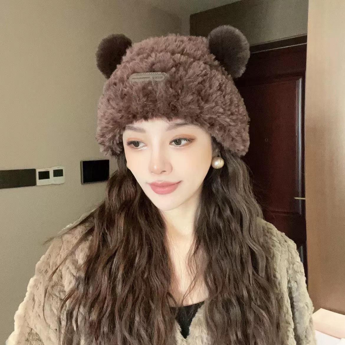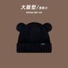 Gorro de punto con orejas de oso para mujer, otoño e invierno, suave, de felpa cerosa, con cabeza grande, cálido, de lana Baotou.