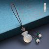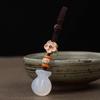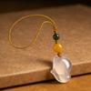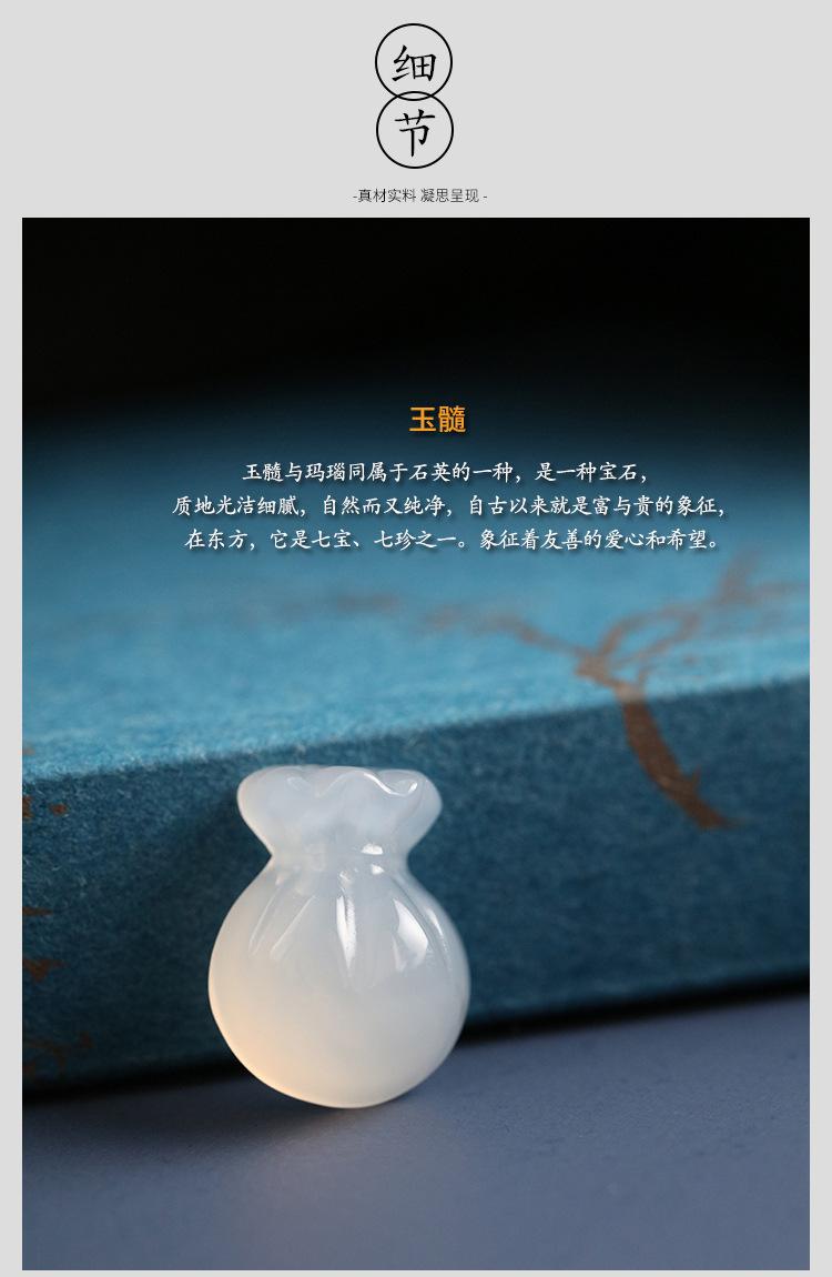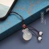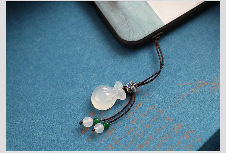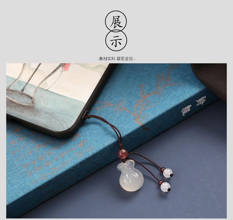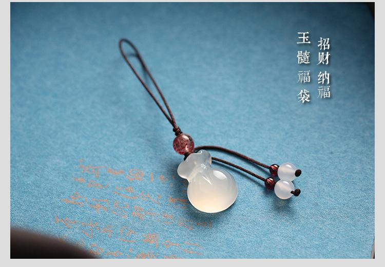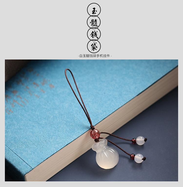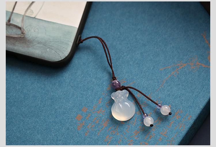 Colgante de cadena para teléfono móvil con forma de bolsa de la suerte de calcedonia blanca, colgante de ágata con forma de disco en U, adorno colgante para monedero de mujer, cordón creativo