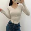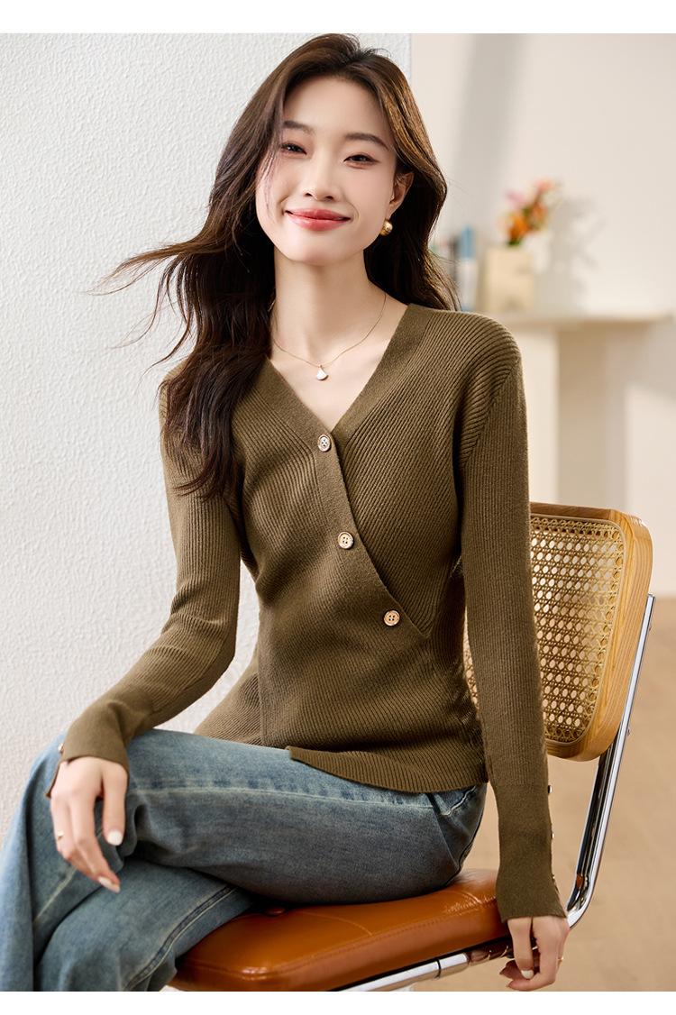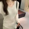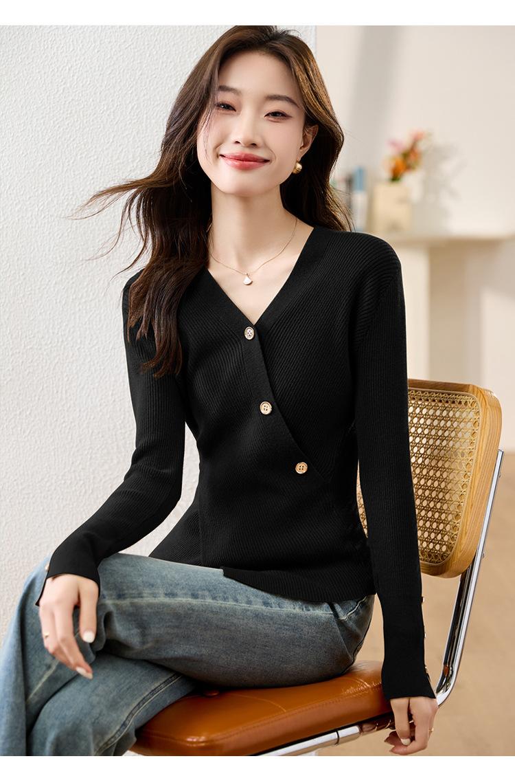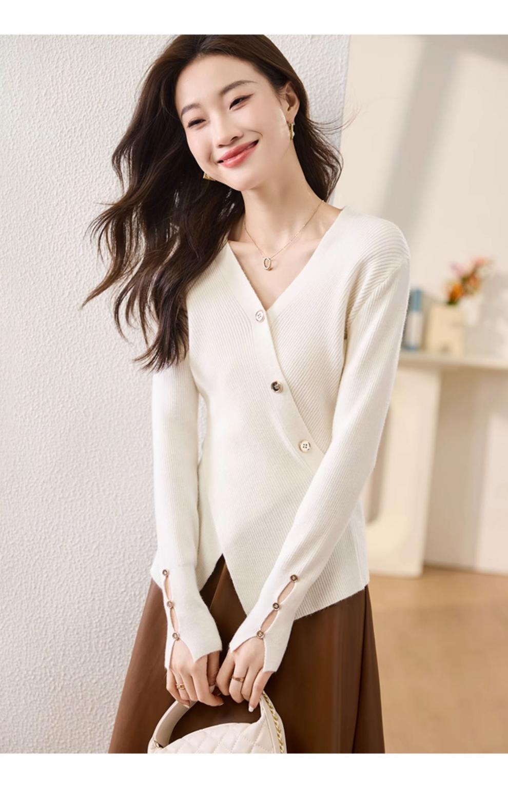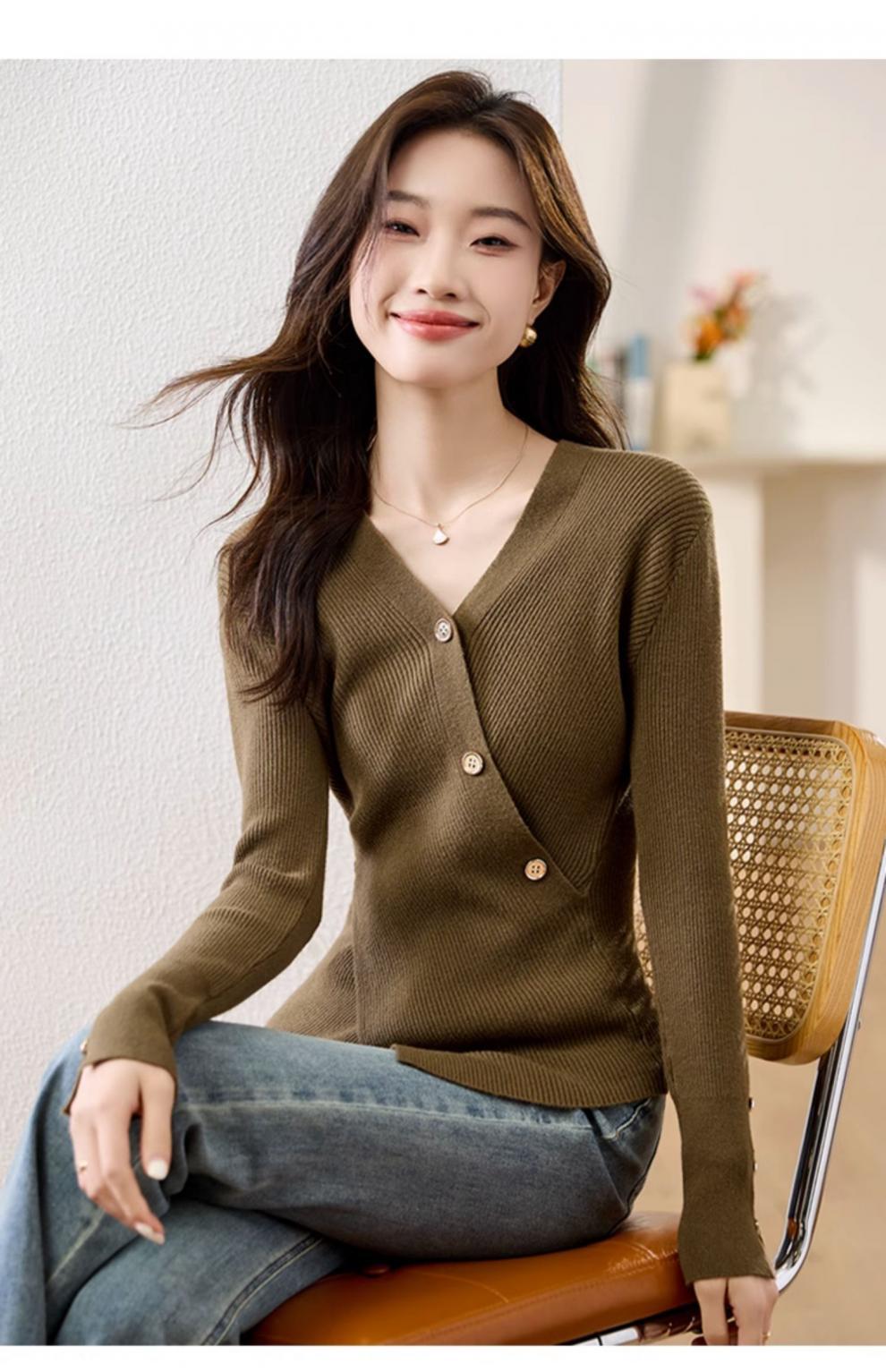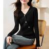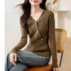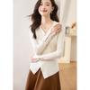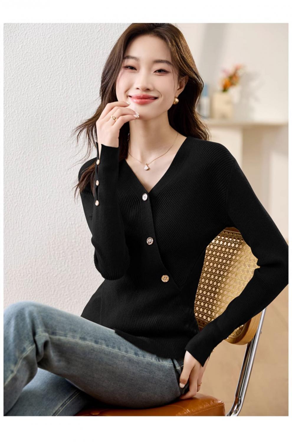 Primavera y otoño 2024: blusas asimétricas de manga larga con cuello en V para mujer, camisetas de punto con bajo y camisetas ajustadas.