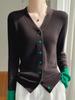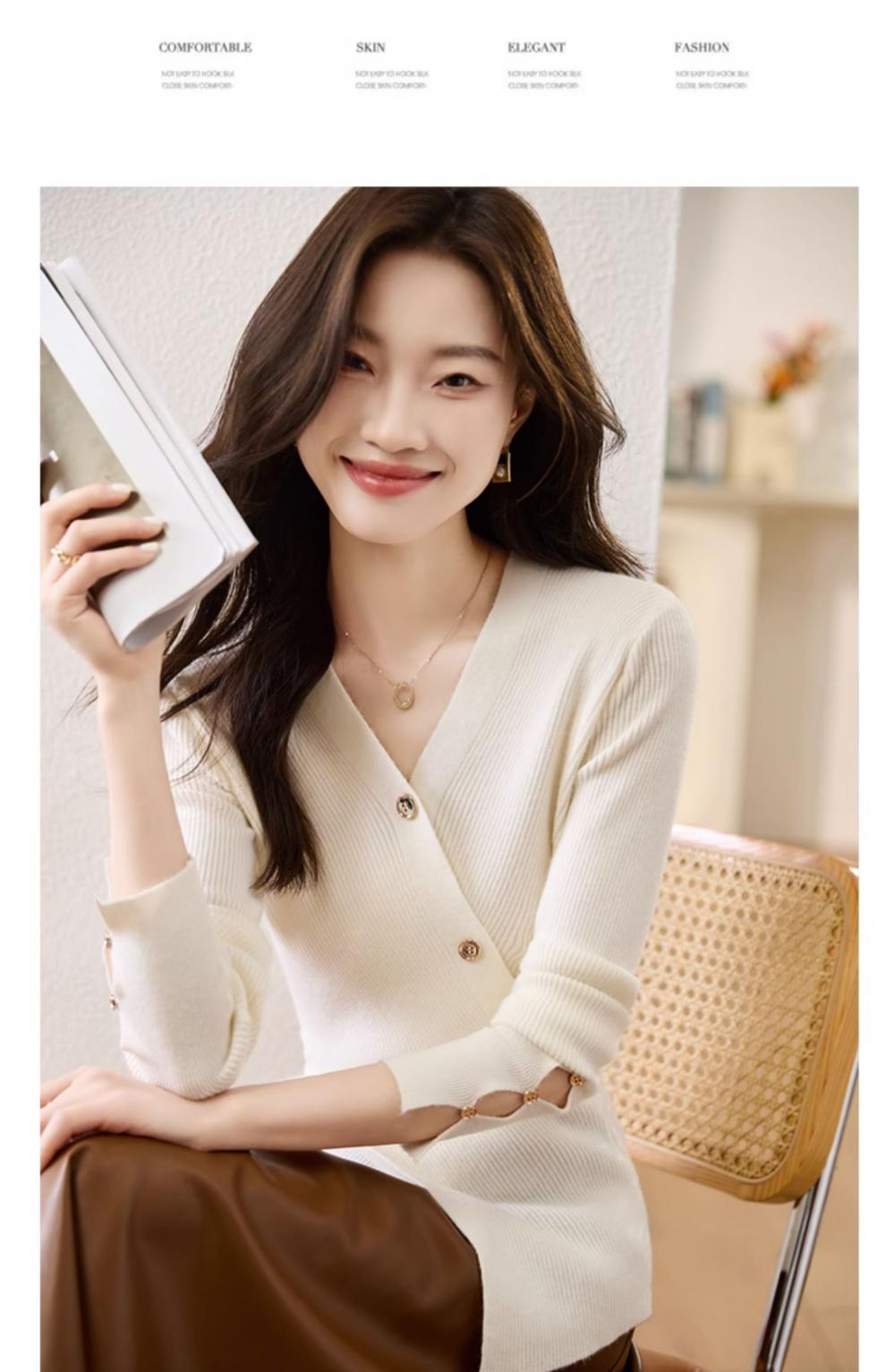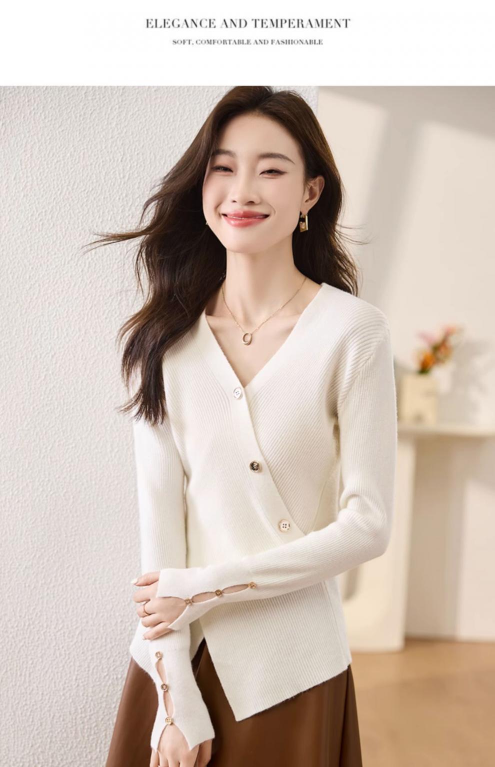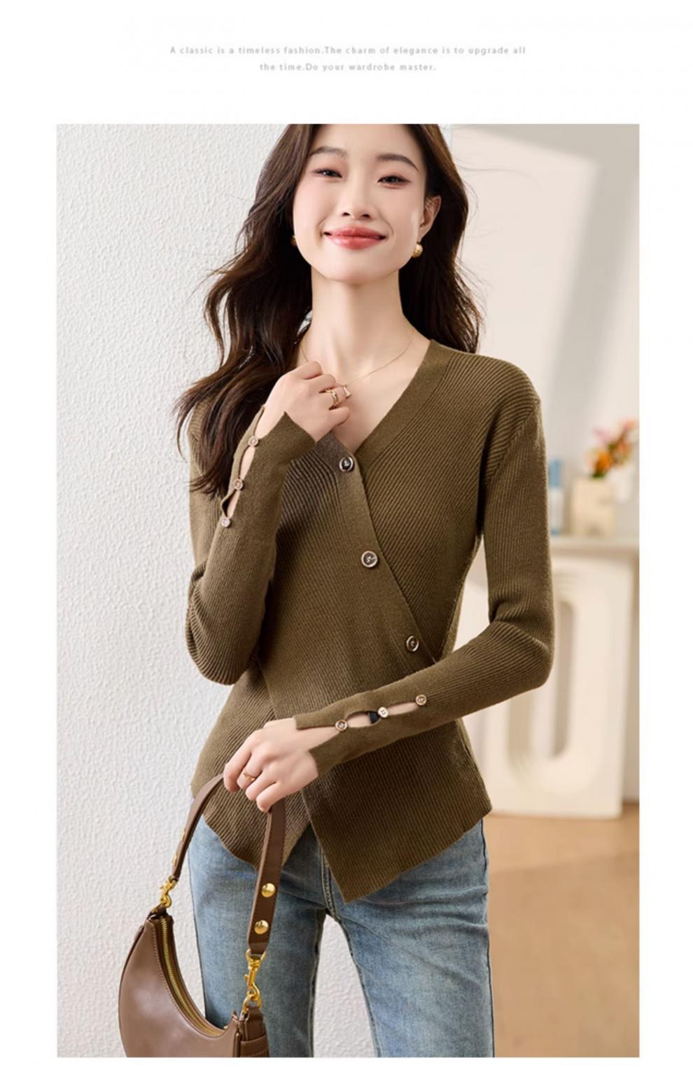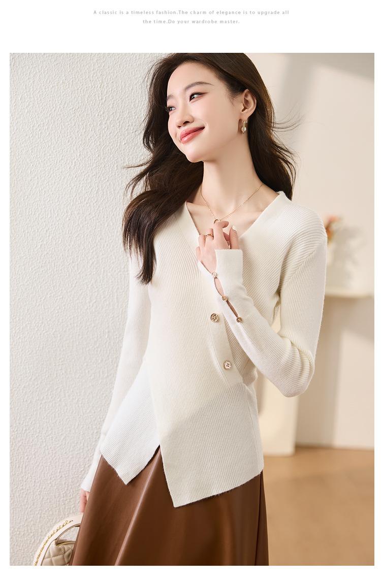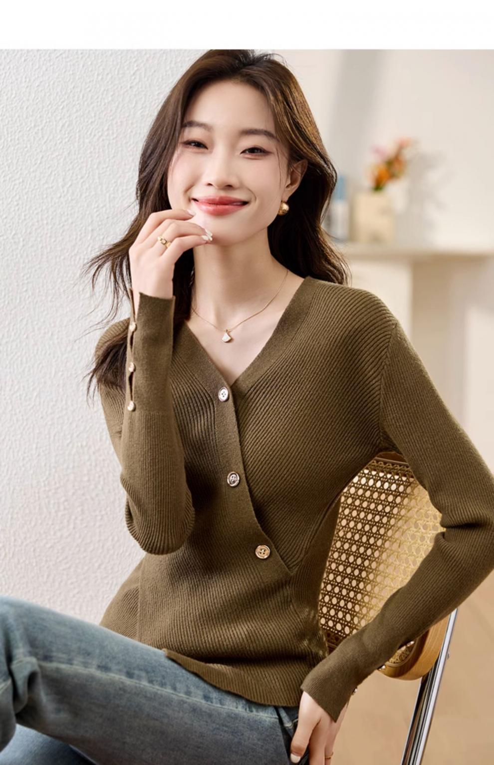 Primavera y otoño 2024: blusas asimétricas de manga larga con cuello en V para mujer, camisetas de punto con bajo y camisetas ajustadas.