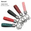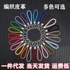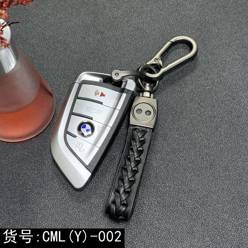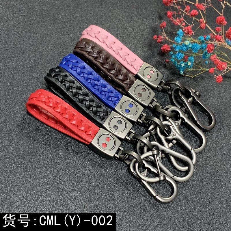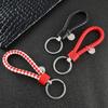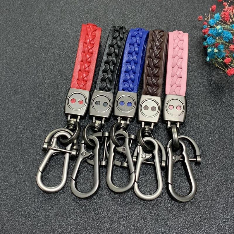 Llavero de coche de piel de cordero tejido a mano, de metal, con logotipo creativo, de aleación de zinc a juego, con colgante de cuerda de cuero.