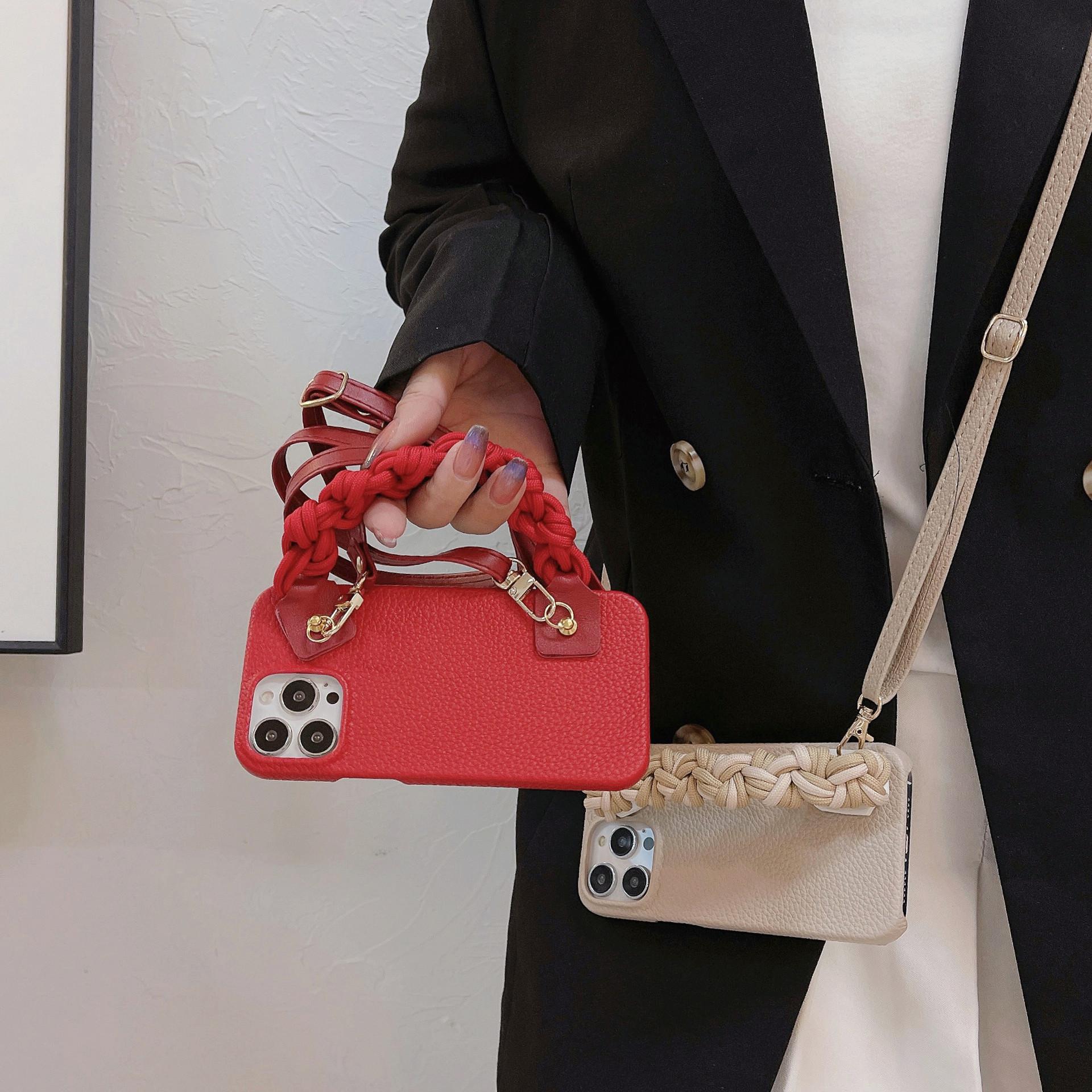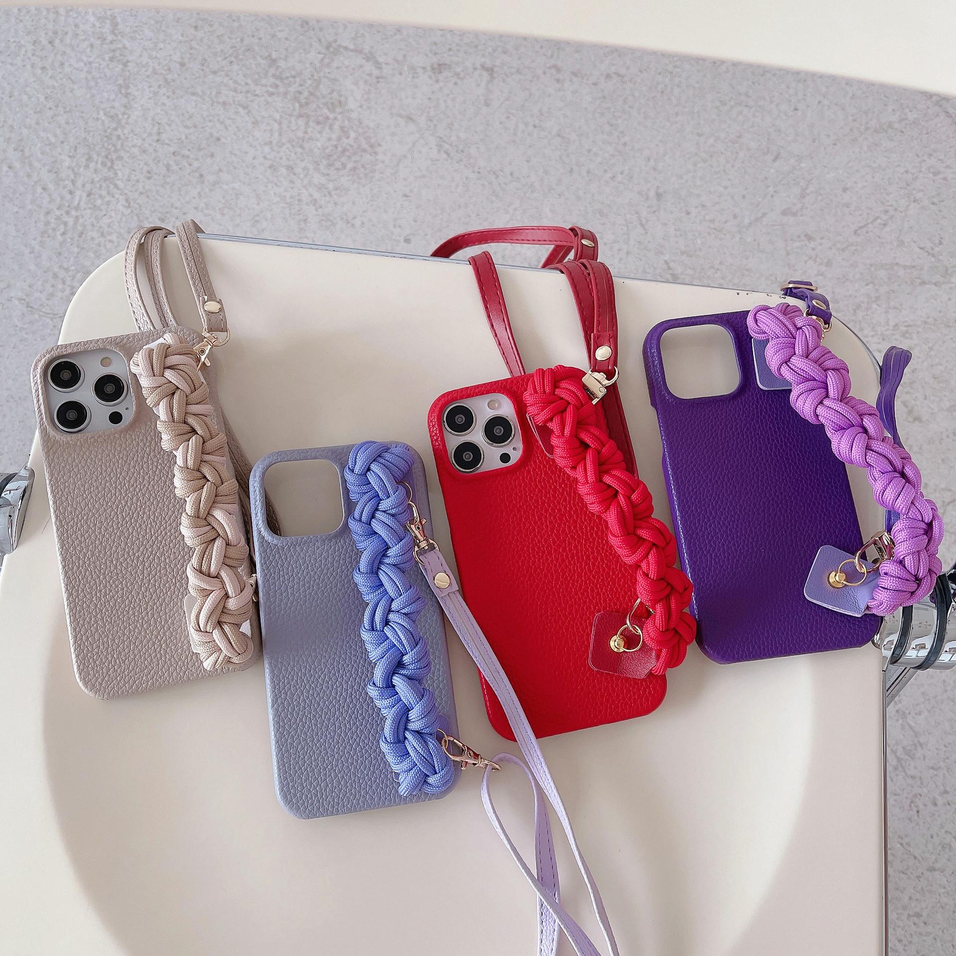 Correa de muñeca tejida cruzada portátil para funda de teléfono móvil iphone12 Apple 14 cordón de funda dura resistente a caídas 11pr