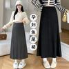 Pantalones de maternidad sin abdomen, falda grande de punto simple, falda de maternidad, estilo casual de otoño, vestido de longitud A con abdomen.