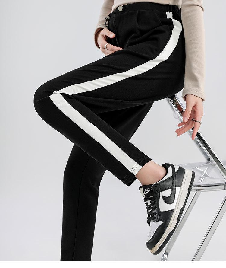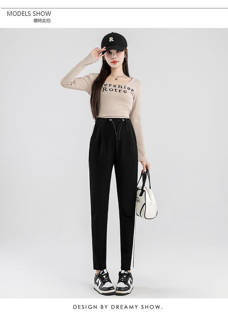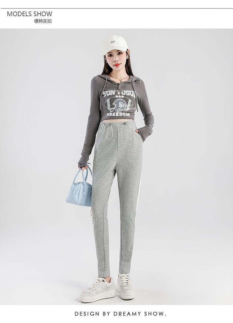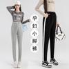 Pantalones de mujer embarazada, primavera y otoño 2024, pantalones de piel para embarazadas, ropa exterior deportiva informal holgada, pantalones de tubo de nueve puntos a juego para embarazadas.