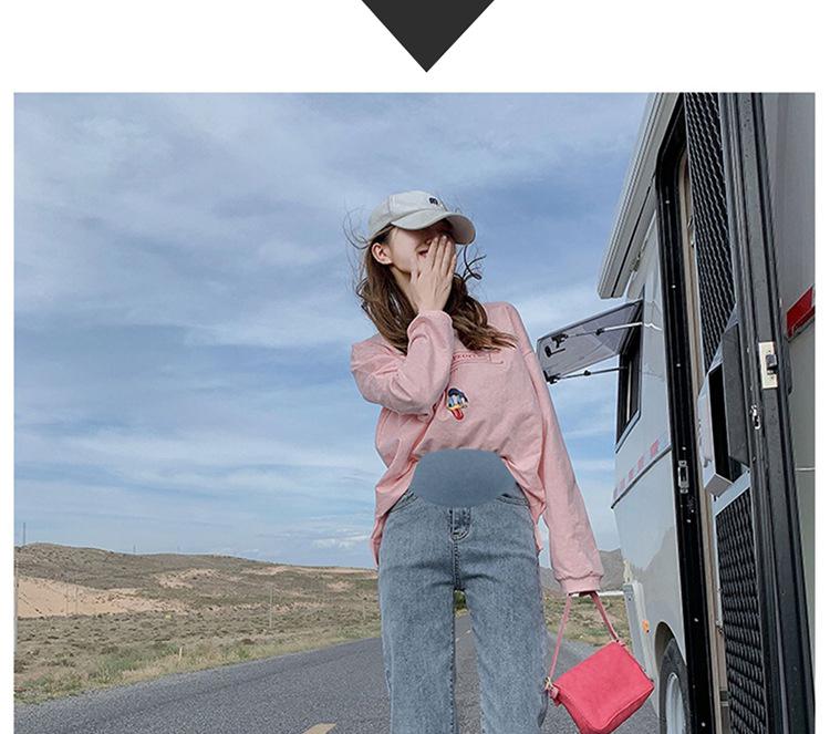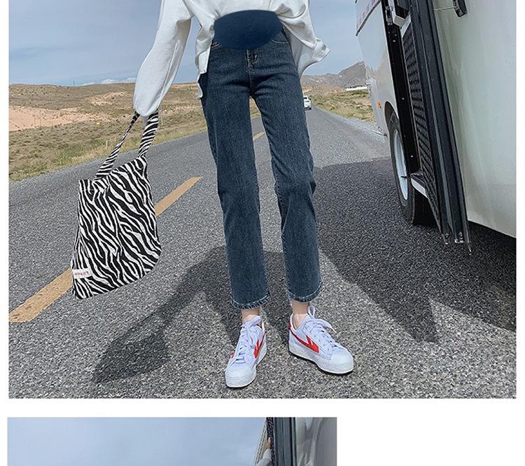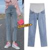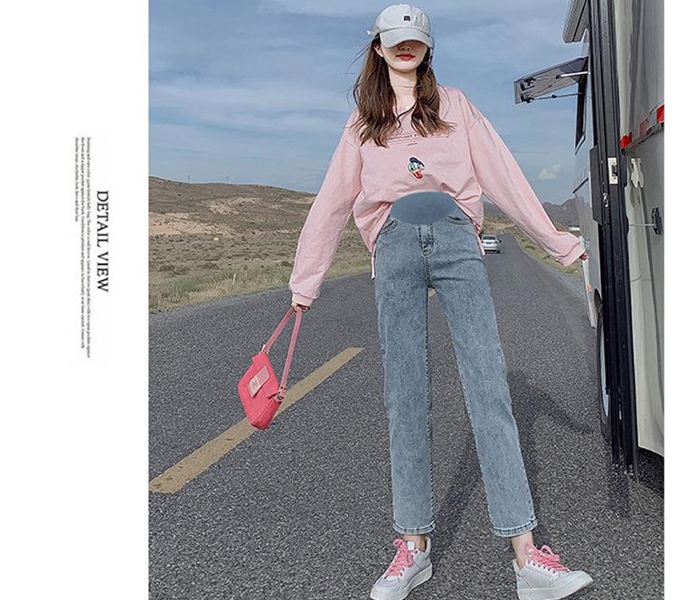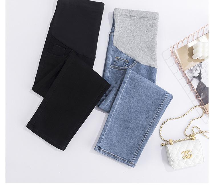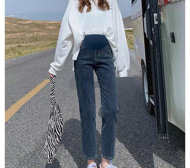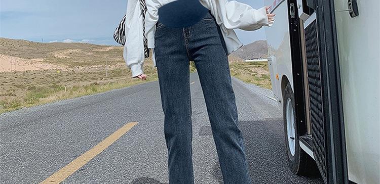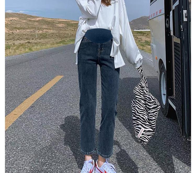 Pantalones vaqueros para embarazadas, primavera y otoño, nuevos pantalones rectos de alta elasticidad, pantalones abdominales para embarazadas, pantalones vaqueros holgados para uso exterior.